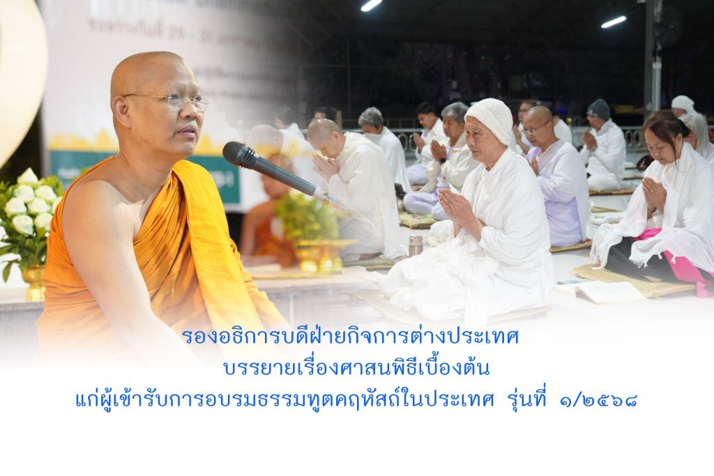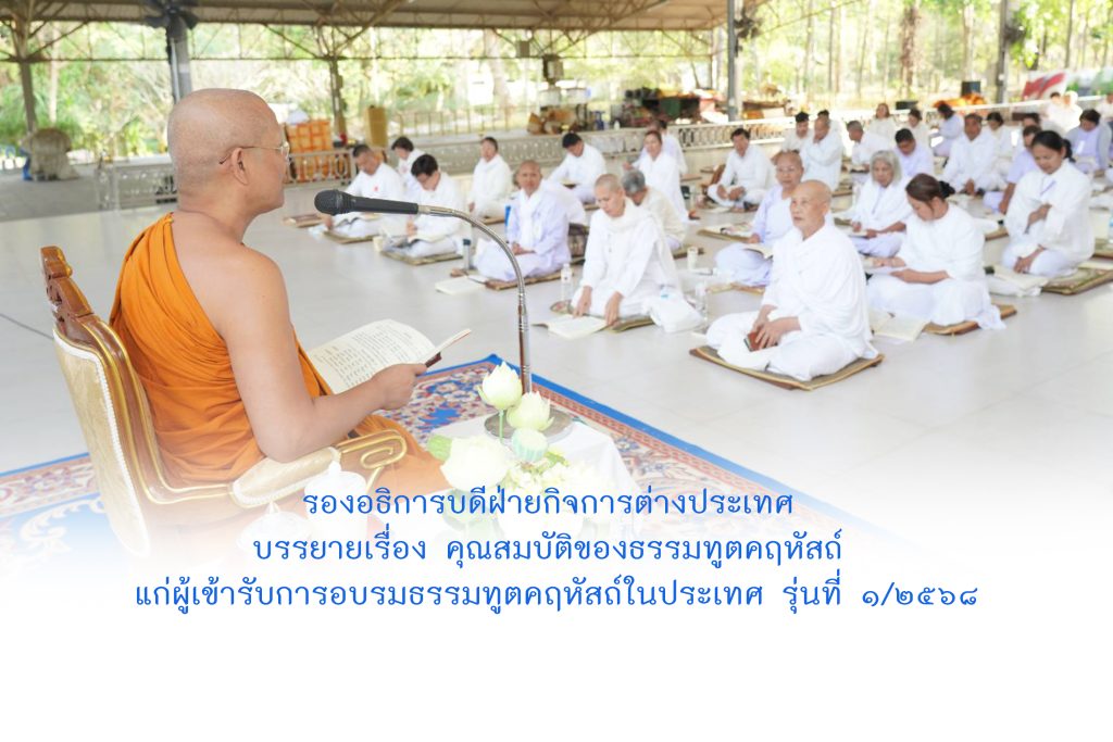 รองอธิการบดีฝ่ายกิจการต่างประเทศ บรรยายเรื่อง คุณสมบัติของธรรมทูตคฤหัสถ์ แก่ผู้เข้ารับการอบรมธรรมทูตคฤหัสถ์ในประเทศ รุ่นที่ ๑/๒๕๖๘