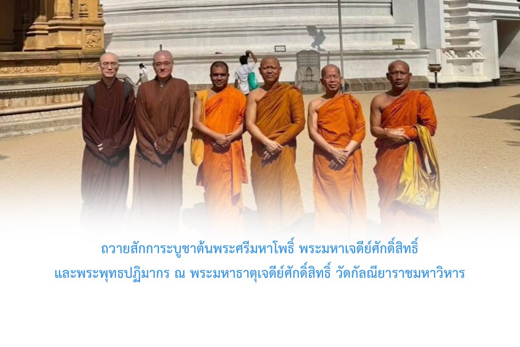รองอธิการบดีฝ่ายกิจการต่างประเทศ มจร นำคณะ ถวายสักการะบูชาต้นพระศรีมหาโพธิ์ พระมหาเจดีย์ศักดิ์สิทธิ์ และ พระพุทธปฏิมากร ณ พระมหาธาตุเจดีย์ศักดิ์สิทธิ์ วัดกัลณียาราชมหาวิหาร Kelaniya Raja Maha Vihara เมืองโคลัมโบ สาธารณรัฐสังคมนิยมประชาธิปไตยศรีลังกา