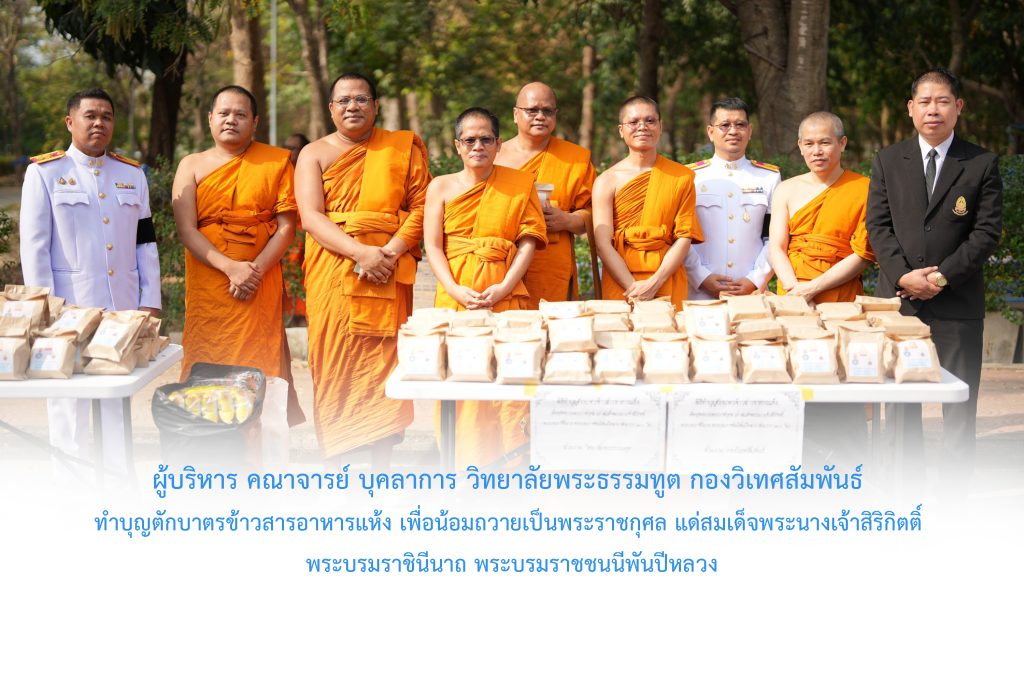 ผู้บริหาร คณาจารย์ บุคลาการ วิทยาลัยพระธรรมทูต กองวิเทศสัมพันธ์ ทำบุญตักบาตรข้าวสารอาหารแห้ง เพื่อน้อมถวายเป็นพระราชกุศล แด่สมเด็จพระนางเจ้าสิริกิตติ์ พระบรมราชินีนาถ พระบรมราชชนนีพันปีหลวง