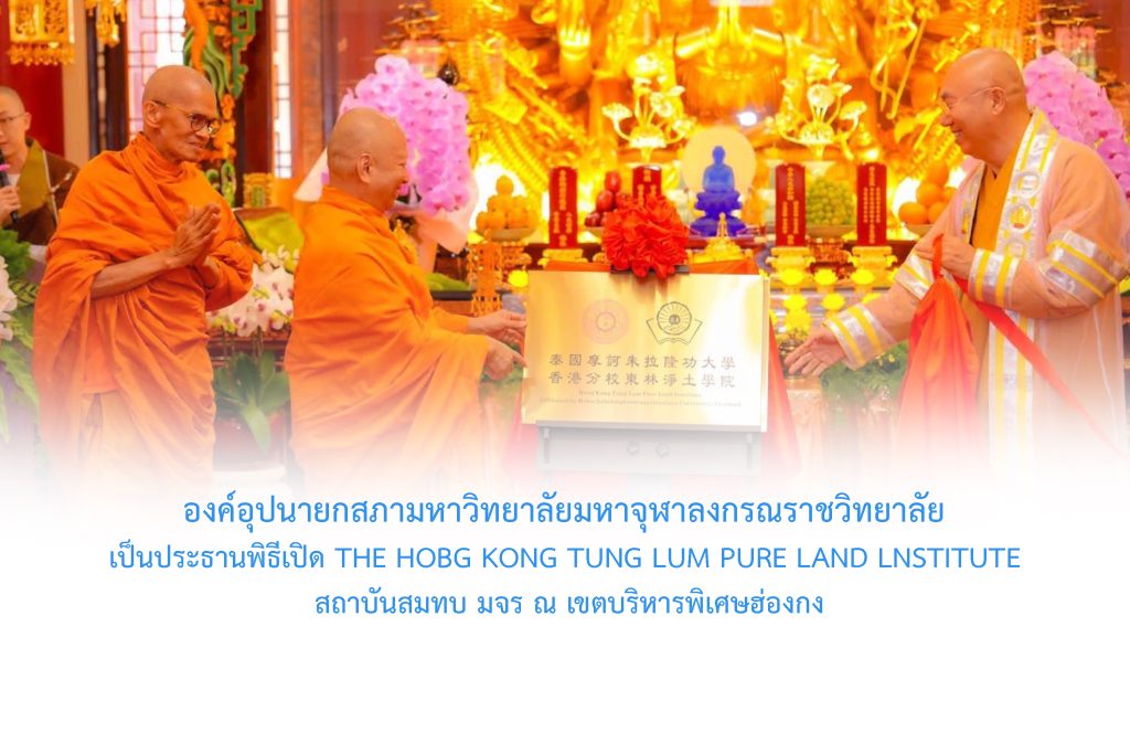 องค์อุปนายกสภามหาวิทยาลัยมหาจุฬาลงกรณราชวิทยาลัย เป็นประธานพิธีเปิด The Hobg Kong Tung Lum Pure Land lnstitute สถาบันสมทบ มจร ณ เขตบริหารพิเศษฮ่องกง