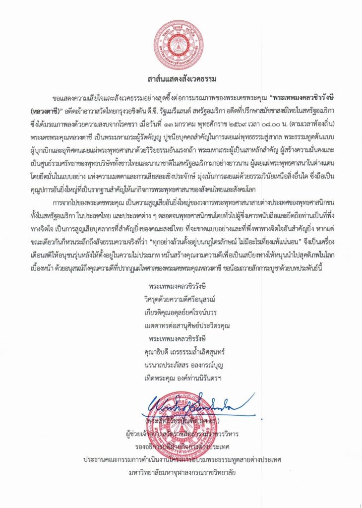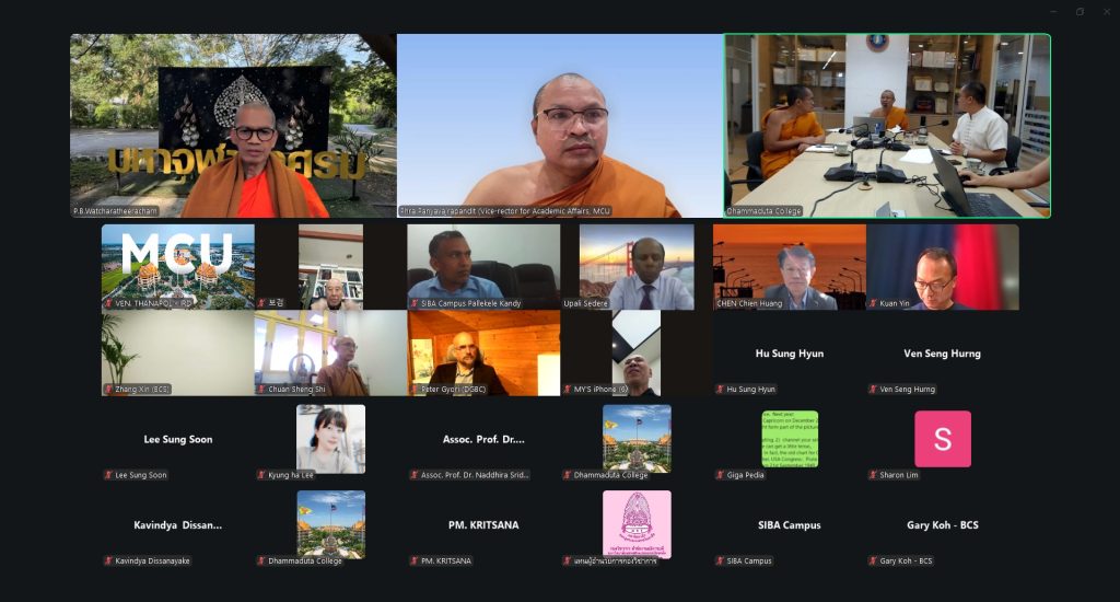 วันพุธที่ ๑๔ มกราคม พ.ศ.๒๕๖๙ เวลา ๑๓.๐๐ น. พระพรหมวัชรธีราจารย์ อธิการบดี มหาวิทยาลัยมหาจุฬาลงกรณราชวิทยาลัย อธิการบดี มจร เป็นประธานการประชุมออนไลน์คณะกรรมการสถาบันสมทบ มจร ครั้งที่ ๑/๒๕๖๙ โอกาสนี้ พระพรหมวัชรธีราจารย์ อธิการบดี เป็นประธานพิจารณาวาระเรื่อง หลักสูตรปริญญาโท Master of Arts in Buddhist Studies แห่ง The Hong Kong Tung Lum Pure Land lnstitute และหลักสูตรปริญญาเอก Buddhist Studies แห่ง Sri Lankan Buddhist Academy, Kandy -Sri Lanka สถาบันสมทบ ของมหาวิทยาลัยมหาจุฬาลงกรณราชวิทยาลัย เสนอเพื่อพิจารณา รองศาสตราจารย์ ดร.บุญมี พรรษา ผู้ช่วยอธิการบดีฝ่ายกิจการต่างประเทศ ปฏิบัติหน้าที่เป็นเลขานุการคณะกรรมการสถาบันสมทบ …