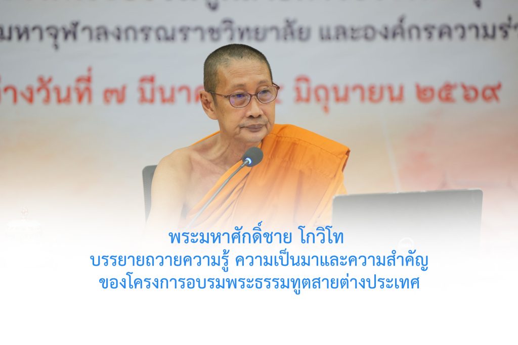 วันเสาร์ที่ ๑๔ มีนาคม พ.ศ. ๒๕๖๙ เวลา ๑๘.๓๐ น. พระมหาศักดิ์ชาย โกวิโท  ผู้อำนวยการสำนักงานวิชาการ วิทยาลัยพระธรรมทูต บรรยายถวายความรู้แก่พระสงฆ์ผู้เข้ารับการอบรมโครงการอบรมพระธรรมทูตสายต่างประเทศ รุ่นที่ ๓๒ ในหัวข้อ ความเป็นมาและความสำคัญของโครงการอบรมพระธรรมทูตสายต่างประเทศ ณ ห้องเธียร์เตอร์ โซนบี อาคารสมเด็จพระพุฒาจารย์ (เกี่ยว อุปเสณมหาเถร) มหาวิทยาลัยมหาจุฬาลงกรณราชวิทยาลัย จ.พระนครศรีอยุธยา ผู้บริหาร คณาจารย์ เจ้าหน้าที่ วิทยาลัยพระธรรมทูต ศูนย์อาเซียนศึกษา และกองวิเทศสัมพันธ์ ร่วมรับฟังการบรรยาย ในนามโครงการอบรมพระธรรมทูตสายต่างประเทศ รุ่นที่ ๓๒ ขอกราบขอบคุณพระมหาศักดิ์ชาย โกวิโท ผู้อำนวยการสำนักงานวิชาการ วิทยาลัยพระธรรมทูต มจร ที่เมตตาบรรยายถวายความรู้ในครั้งนี้ ฯ