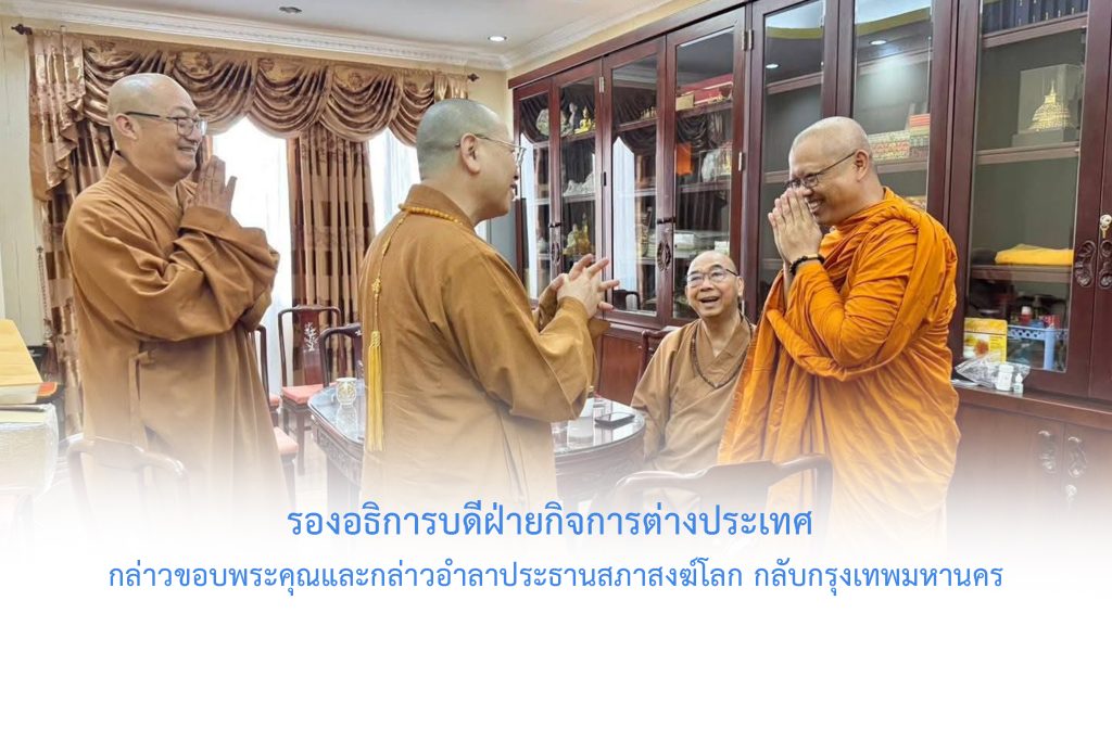 วันอังคารที่ ๒๓ ธันวาคม พ.ศ.๒๕๖๘ เวลา ๑๓.๐๐ น. พระสิทธิวัชรบัณฑิต รองอธิการบดีฝ่ายกิจการต่างประเทศ และ ผู้บริหาร คณาจารย์ เจ้าหน้าที่วิทยาลัยพระธรรมทูตและกองวิเทศสัมพันธ์ ถวายการปฏิสันถาร พระธรรมาจารย์ Chân Pháp Anh เจิน ฟับ อัน พระธรรมาจารย์อาวุโสประจำสถานปฏิบัติธรรมหมู่บ้านพลัม จ.นครราชสีมา พร้อมด้วยคณะสงฆ์และผู้บริหารหมู่บ้านพลัม (Thai Plum Village lnternational Meditation Practice Center) ณ ห้องประชุมบัณฑิตศึกษา วิทยาลัยพระธรรมทูต มจร พระนครศรีอยุธยา คณะสงฆ์หมู่บ้านพลัม ได้ลงนามบันทึกความร่วมมือกับมหาวิทยาลัยมหาจุฬาลงกรณราชวิทยาลัย เพื่อดำเนินการด้านการศึกษา กิจกรรมด้านพระพุทธศาสนาและการเผยแผ่พระพุทธศาสนาร่วมกัน ตั้งแต่ ๒๖ มีนาคม ๒๕๕๔ และในแต่ละปี คณะสงฆ์หมู่บ้านพลัม จะรายงานกิจกรรมด้านการศึกษา กิจกรรมด้านพระพุทธศาสนาและการเผยแผ่พระพุทธศาสนาให้มหาวิทยาลัยรับทราบ การนี้ คณะสงฆ์หมู่บ้านพลัม ได้ถวายรายงานกิจกรรมด้านพระพุทธศาสนา ด้านการศึกษาและด้านการเผยแผ่พระพุทธศาสนาให้มหาวิทยาลัยรับทราบ ซึ่งกองวิเทศสัมพันธ์จักได้รายงานให้มหาวิทยาลัยทราบเป็นลำดับต่อไป โอกาสนี้ รองอธิการบดีฝ่ายกิจการต่างประเทศ …
