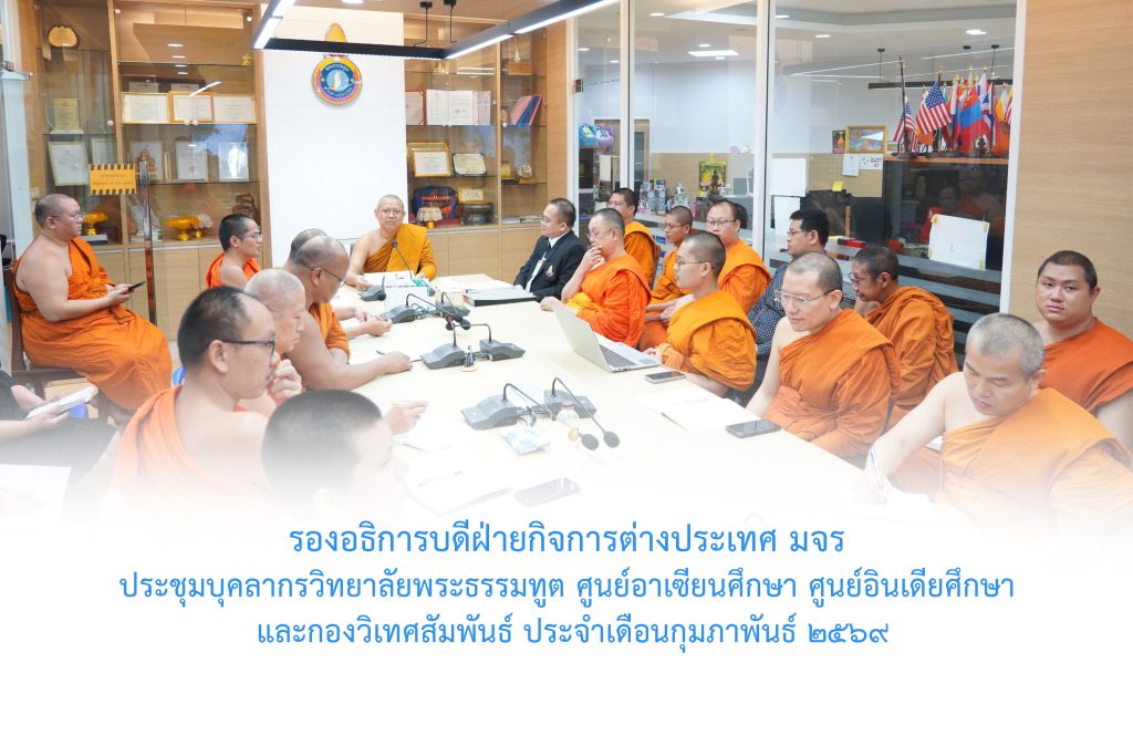 รองอธิการบดีฝ่ายกิจการต่างประเทศ มจร ประชุมบุคลากรวิทยาลัยพระธรรมทูต ศูนย์อาเซียนศึกษา ศูนย์อินเดียศึกษา และกองวิเทศสัมพันธ์ ประจำเดือนกุมภาพันธ์ ๒๕๖๙