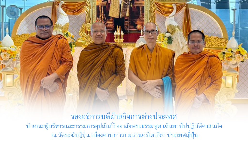 วันศุกร์ที่ ๒๔ ตุลาคม พ.ศ.๒๕๖๘ เวลา ๐๙.๔๕ น. พระสิทธิวัชรบัณฑิต รองอธิการบดีฝ่ายกิจการต่างประเทศ มจร เป็นประธานนำคณะผู้บริหารและกรรมการอุปถัมภ์วิทยาลัยพระธรรมทูต เดินทางไปปฏิบัติศาสนกิจระหว่างวันที่ ๒๔-๒๘ ตุลาคม ๒๕๖๘ ณ วัดระฆังญี่ปุ่น เมืองคานากาวา มหานครโตเกียว ประเทศญี่ปุ่น รองอธิการบดีฝ่ายกิจการต่างประเทศ มีกำหนดการการปฏิบัติศาสนกิจ ดังนี้ (๑) เป็นประธานฝ่ายสงฆ์พิธีถวายผ้าพระกฐิน แด่พระสงฆ์ผู้จำพรรษากาลถ้วนไตรมาส ณ วัดระฆังญี่ปุ่น วันที่ ๒๖ ตุลาคม ๒๕๖๘ (๒) เป็นประธานประชุมเตรียมดำเนินงานโครงการอบรมธรรมทูตคฤหัสถ์ภาคพื้นเอเชีย ครั้งที่ ๒/๒๕๖๙ ณ วัดระฆังญี่ปุ่น วันที่ ๒๗ ตุลาคม (๓) แสดงธรรมเทศนาแก่ชุมชนชาวพุทธอินเดีย ณ มหานครโตเกียว วันที่ ๒๕ ตุลาคม ๒๕๖๘ (๔) มอบใบตราตั้งและพัดฐานานุกรม พระใบฎีกา ใน พระสิทธิวัชรบัณฑิต แด่ …