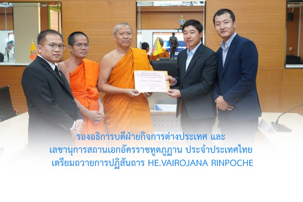 รองอธิการบดีฝ่ายกิจการต่างประเทศ และ เลขานุการสถานเอกอัครราชทูตภูฏาน ประจำประเทศไทย เตรียมถวายการปฏิสันถาร HE.Vairojana Rinpoche