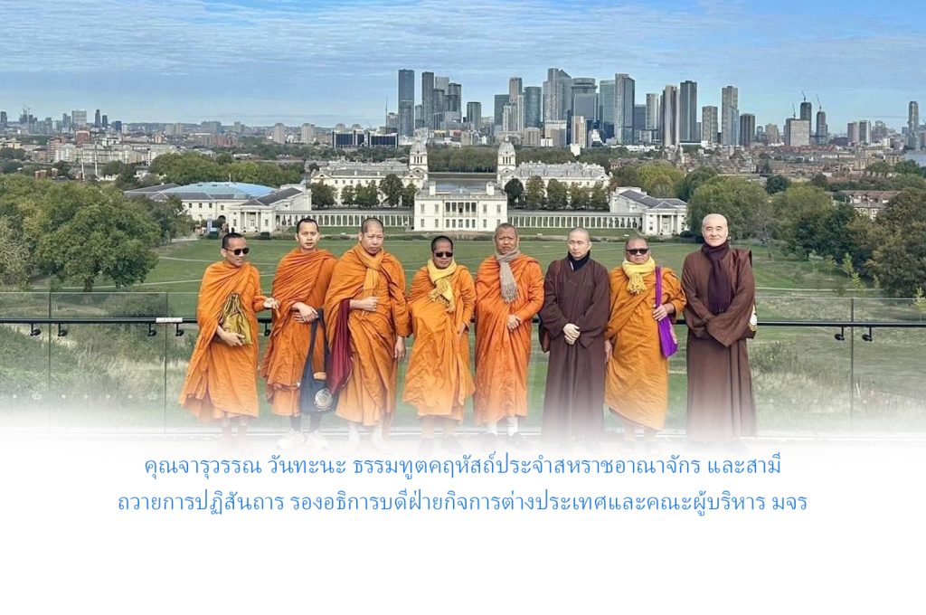 วันอังคารที่ ๒๓ กันยายน พ.ศ.๒๕๖๘ เวลา ๐๙.๓๐ น.พระสิทธิวัชรบัณฑิต รองอธิการบดีฝ่ายกิจการต่างประเทศ นำคณะผู้บริหาร มจร พร้อมด้วยผู้บริหารวัดจงไถซาน เข้าเยี่ยมชมณ มหาวิทยาลัยมหาวิทยาลัยกรีนิช (University of Greenwich) สหราชอาณาจักร มหาวิทยาลัยเกรนิช โดยมี ณ มหาวิทยาลัยมหาวิทยาลัยกรีนิช (University of Greenwich) สหราชอาณาจักร พระสิทธิวัชรบัณฑิต รองอธิการบดีฝ่ายกิจการต่างประเทศ มจร ประธานคณะกรรมการดำเนินงานโครงการอบรมธรรมทูตคฤหัสถ์ภาคพื้นยุโรป ครั้งที่ ๖ ณ วัดพุทธปทีป มหานครลอนดอน สหราชอาณาจักร เป็นประธานนำคณะผู้บริหารและคณะกรรมการอุปถัมภ์วิทยาลัยพระธรรมทูต เดินทางไปปฏิบัติศาสนกิจดำเนินงานโครงการอบรมธรรมทูตคฤหัสถ์ภาคพื้นยุโรป ครั้งที่ ๖ วิทยาลัยพระธรรมทูต มหาวิทยาลัยมหาจุฬาลงกรณราชวิทยาลัย ร่วมกับ องค์กรพระธรรมทูตไทยในสหราชอาณาจักรและไอร์แลนด์ และวัดพุทธปทีป มหานครลอนดอน ดำเนินงานโครงการอบรมธรรมทูตคฤหัสถ์ภาคพื้นยุโรป ครั้งที่ ๖ ภายใต้ความเห็นชอบของมหาเถรสมาคม ณ วัดพุทธปทีป มหานครลอนดอน สหราชอาณาจักร ระหว่างวันที่ ๑๙-๒๑ …