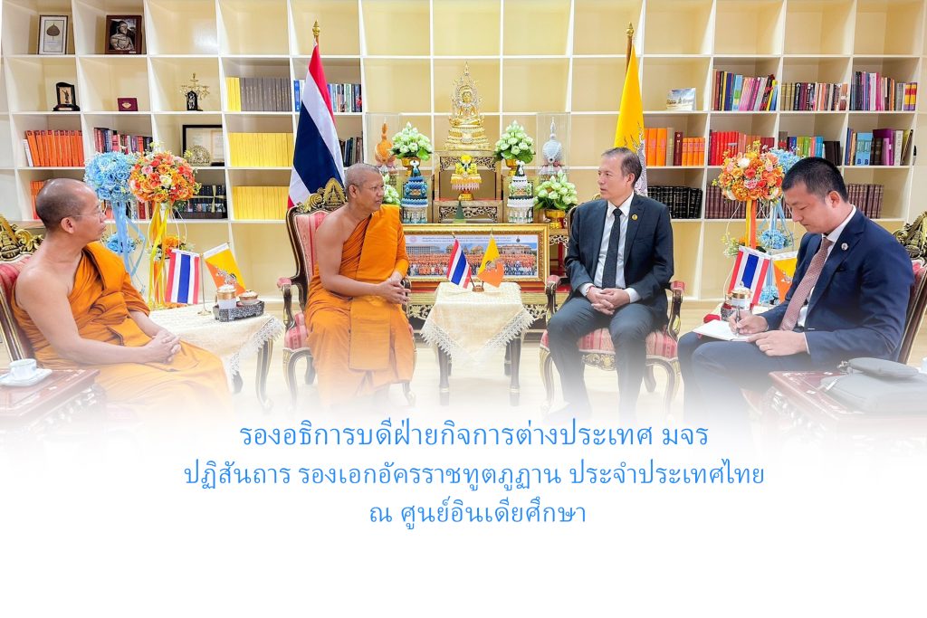 วันเสาร์ที่ ๑๕ พฤศจิกายน พ.ศ.๒๕๖๘ เวลา ๑๓.๐๐ น. พระสิทธิวัชรบัณฑิต รองอธิการบดีฝ่ายกิจการต่างประเทศ รักษาการผู้อำนวยการศูนย์อินเดียศึกษา ในนาม พระพรหมวัชรธีราจารย์ อธิการบดี ปฏิสันถาร H.E. Mr.Karma Tshosar, Deputy Chief of Mission, Royal Bhutanese Embassy to Bangkok และ Mr.Sonam Paden,The Second Secretary of Royal Bhutanese Embassy to Bangkok -Thailand รองเอกอัครราชทูตและเลขานุการ เอกอัครราชทูตภูฏาน ประจำประเทศไทย ณ สำนักงานศูนย์อินเดียศึกษา มจร พระนครศรีอยุธยา H.E.Mr.Karma Tshosar, Deputy Chief of Mission, Royal Bhutanese Embassy to …