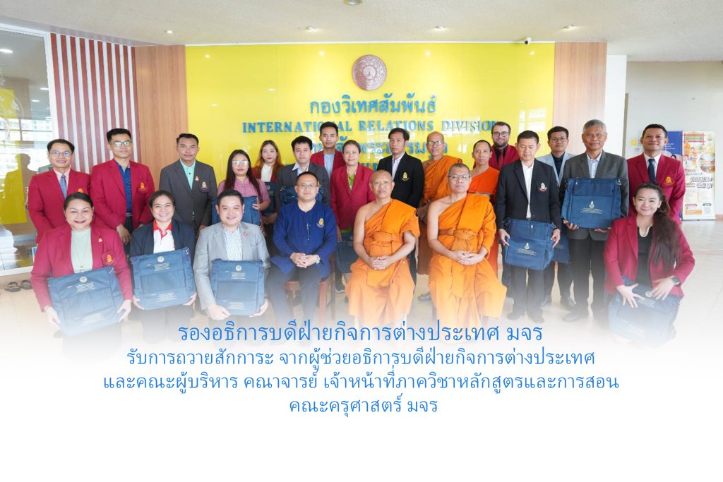 วันพุธที่ ๑ ตุลาคม พ.ศ.๒๕๖๘ เวลา ๑๒.๔๕ น. พระสิทธิวัชรบัณฑิต รองอธิการบดีฝ่ายกิจการต่างประเทศ รับการถวายสักการะจาก ผศ.ดร.บุญมี พรรษา รองอธิการบดีฝ่ายกิจการต่างประเทศ และคณะผู้บริหาร คณาจารย์ เจ้าหน้าที่ภาควิชาหลักสูตรและการสอน คณะครุศาสตร์ มจร ปรารภมงคลดิถีอภิลักขิตสมัย อายุวัฒนมงคล ๕๓ ปี ๓๓ พรรษา ณ ห้องประชุมวิทยาลัยพระธรรมทูตและกองวิเทศสัมพันธ์ มจร พระนครศรีอยุธยา ผศ.ดร.บุญมี พรรษา รองอธิการบดีฝ่ายกิจการต่างประเทศ นำคณะผู้บริหาร คณาจารย์ เจ้าหน้าที่ภาควิชาหลักสูตรและการสอน คณะครุศาสตร์ มจร มาถวายสักการะ รองอธิการบดีฝ่ายกิจการต่างประเทศ ปรารภมงคลดิถีอภิลักขิตสมัย อายุวัฒนมงคล ๕๓ ปี ๓๓ พรรษา พร้อมกันนี้ พระสิทธิวัชรบัณฑิต ได้กล่าวอนุโมทนาขอบคุณ ผศ.ดร.บุญมี พรรษา รองอธิการบดีฝ่ายกิจการต่างประเทศ และคณะผู้บริหาร คณาจารย์ เจ้าหน้าที่ภาควิชาหลักสูตรและการสอน คณะครุศาสตร์ มจร …