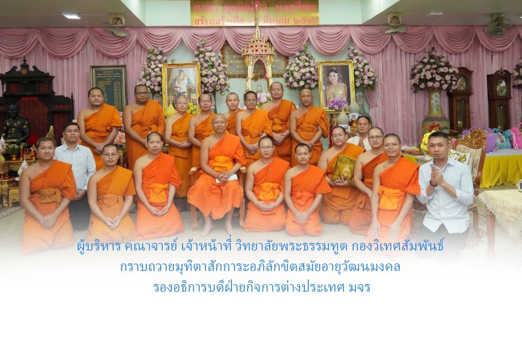 ผู้บริหาร คณาจารย์ เจ้าหน้าที่ วิทยาลัยพระธรรมทูต กองวิเทศสัมพันธ์ กราบถวายมุทิตาสักการะอภิลักขิตสมัยอายุวัฒนมงคล รองอธิการบดีฝ่ายกิจการต่างประเทศ มจร
