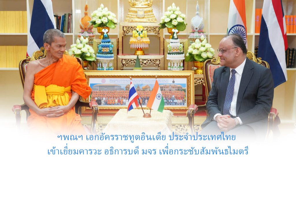 วันจันทร์ที่ ๒๙ กันยายน พ.ศ.๒๕๖๘ เวลา ๐๙.๓๙ น. พระพรหมวัชรธีราจารย์ อธิการบดี พร้อมด้วย พระสิทธิวัชรบัณฑิต รองอธิการบดีฝ่ายกิจการต่างประเทศ รักษาการผู้อำนวยการศูนย์อินเดียศึกษา และคณะผู้บริหาร มจร แสดงธรรมปฏิสันถาร His Excellency Nagesh Singh, Ambassador of India to Bangkok-Thailand พร้อมด้วย Ms. Paulomi Tripathi, Deputy Chief of Mission, Embassy of India Bangkok ณ ห้องรับรองศูนย์อินเดียศึกษา อาคารเรียนรวม มจร พระนครศรีอยุธยา His Excellency Nagesh Singh, Ambassador of India to Bangkok-Thailand พร้อมด้วย Ms. Paulomi Tripathi, …