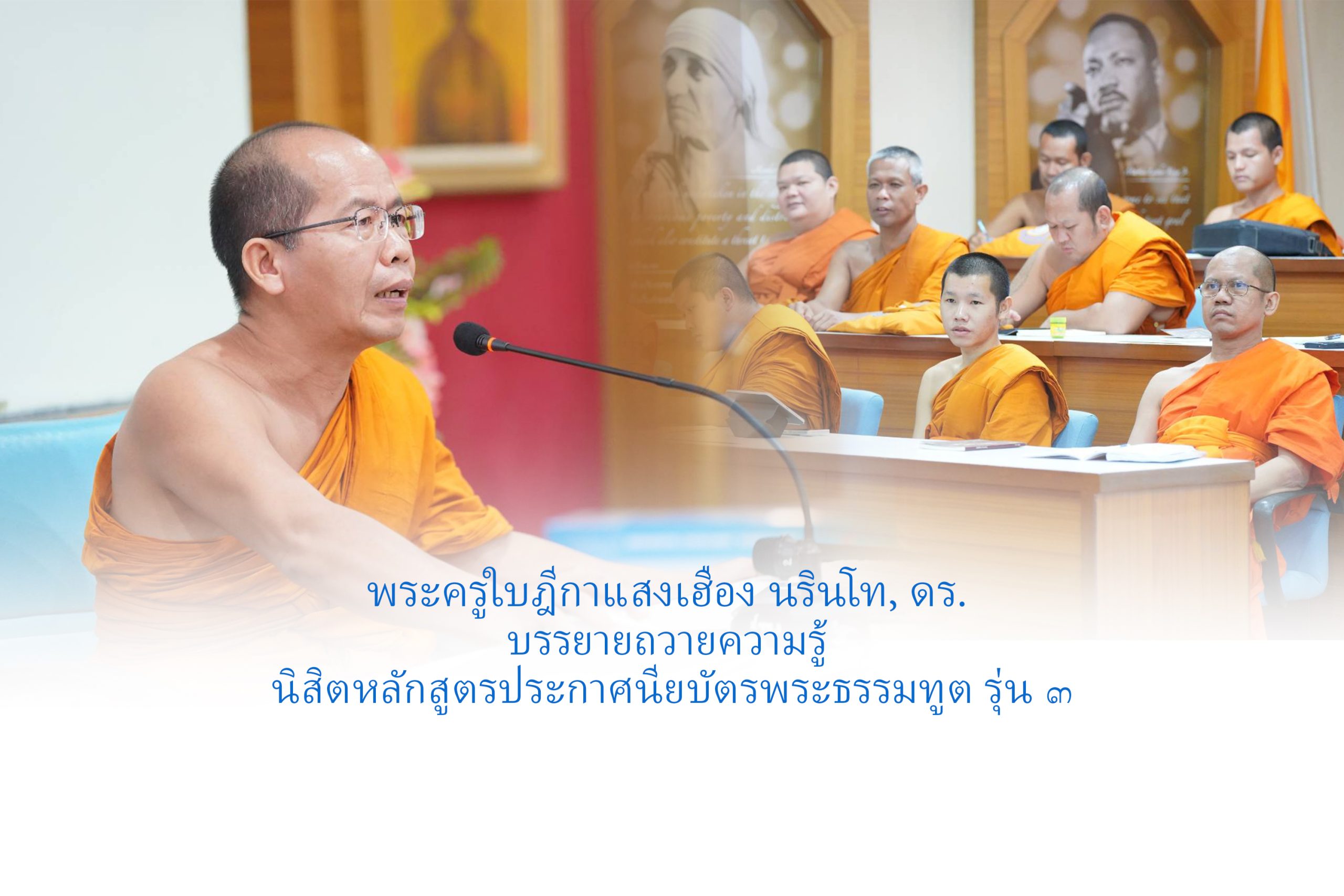 พระครูใบฎีกาแสงเฮือง นรินโท, ดร. บรรยายถวายความรู้ นิสิตหลักสูตรประกาศนียบัตรพระธรรมทูต รุ่น ๓