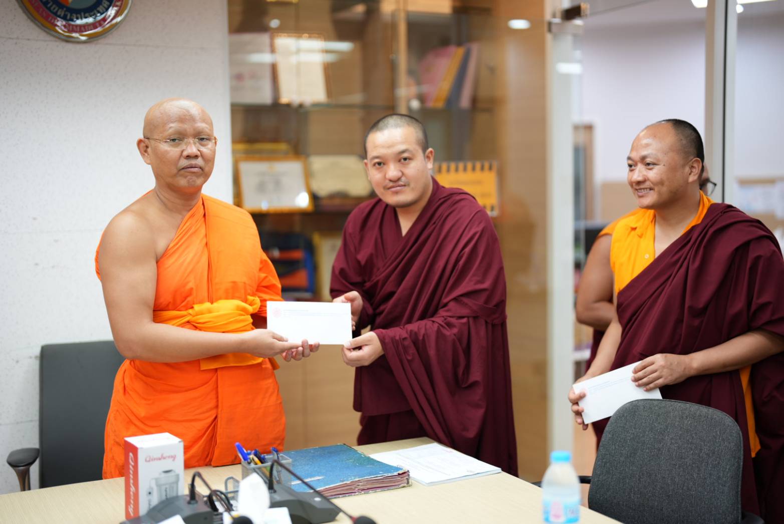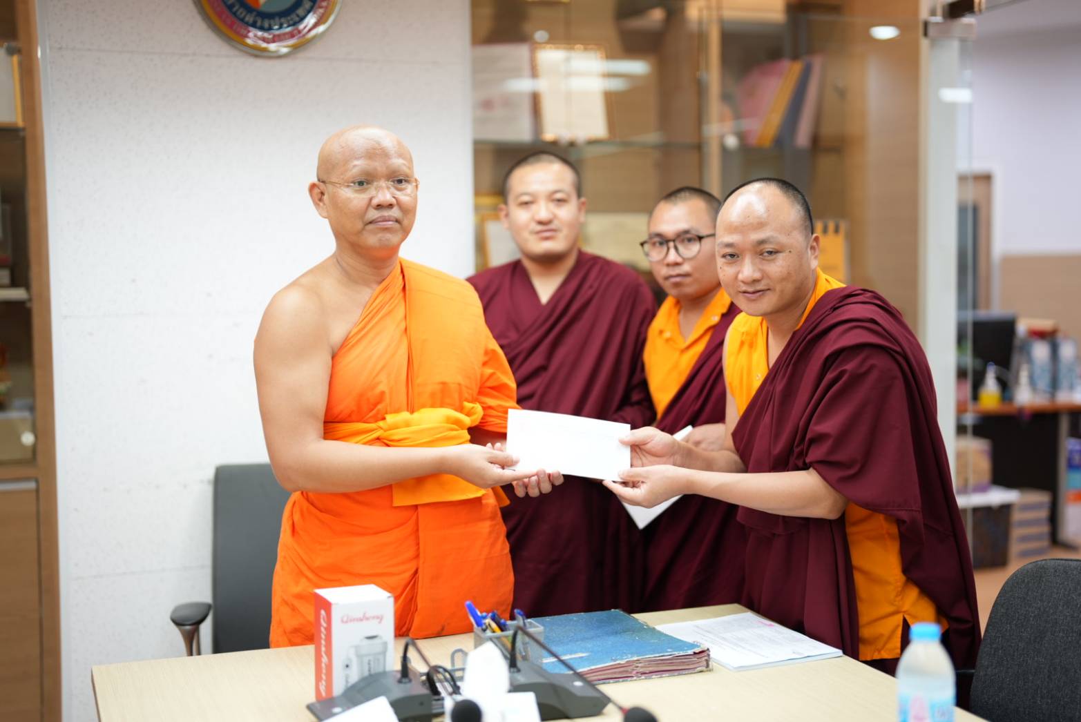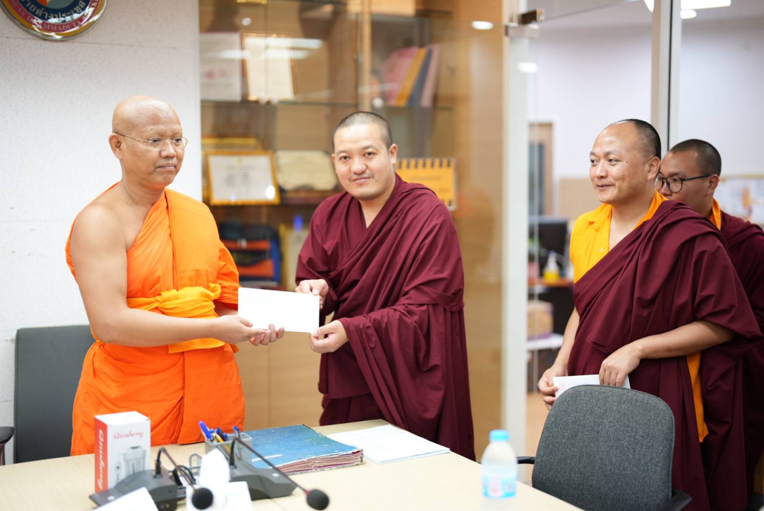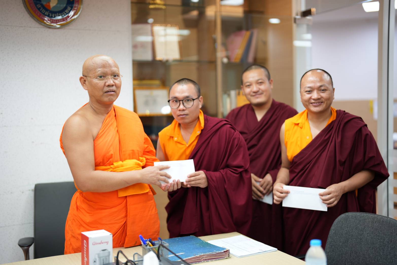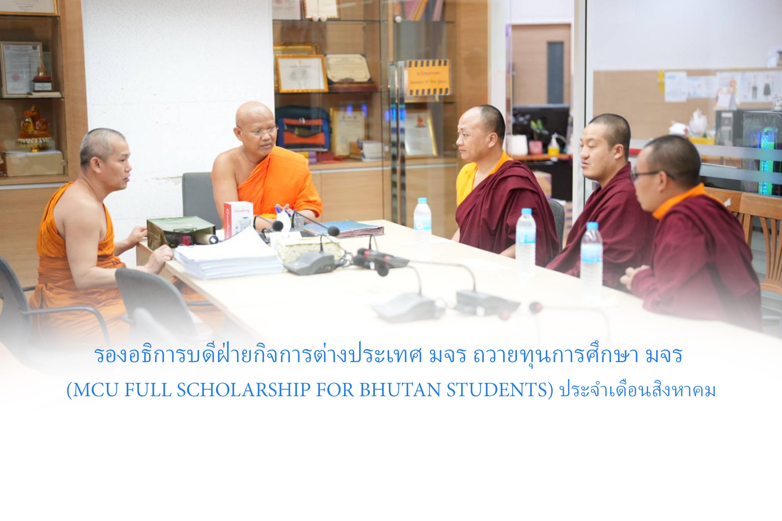 วันอังคารที่ ๒๖ สิงหาคม พ.ศ.๒๕๖๘ เวลา ๑๒.๓๐ น. พระสิทธิวัชรบัณฑิต รองอธิการบดีฝ่ายกิจการต่างประเทศ ประธานคณะกรรมการอุปถัมภ์ทุนการศึกษาแก่นิสิตพระสงฆ์ภูฏาน มจร ๓ รูป ได้ถวายทุนการศึกษาค่าใช้จ่ายประจำเดือน (monthly expenses) แก่นิสิตภูฏาน มจร ๓ รูป ได้แก่ (1) Venerable Thinley Wangdi (Ph.D. scholar) 2) Venerable Pema Thinley(M.A.Student) (3) Venerable Tshering Wangchuk (B.A.Student) พระสงฆ์ภูฏานทั้ง ๓ รูป นี้ ได้รับทุนการศึกษาจาก มจร ตลอดหลักสูตร (MCU Full Scholarship for Bhutan Students) ณ ห้องประชุมวิทยาลัยพระธรรมทูตและกองวิเทศสัมพันธ์ มจร พระนครศรีอยุธยา