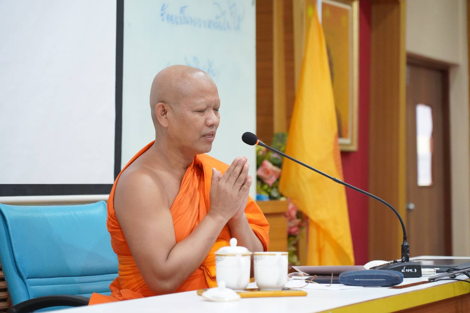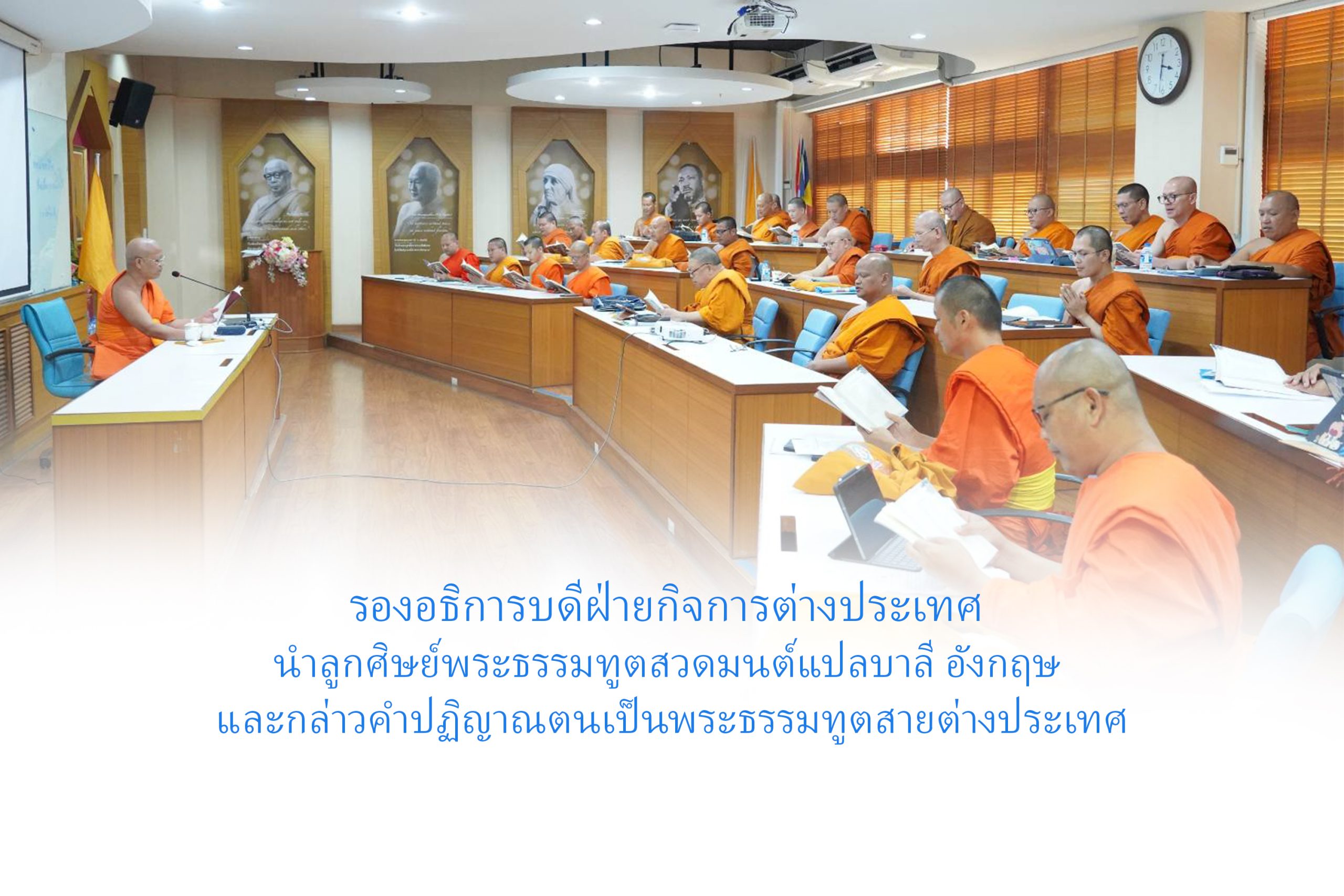 รองอธิการบดีฝ่ายกิจการต่างประเทศ นำลูกศิษย์พระธรรมทูตสวดมนต์แปลบาลี อังกฤษ และกล่าวคำปฏิญาณตนเป็นพระธรรมทูตสายต่างประเทศ