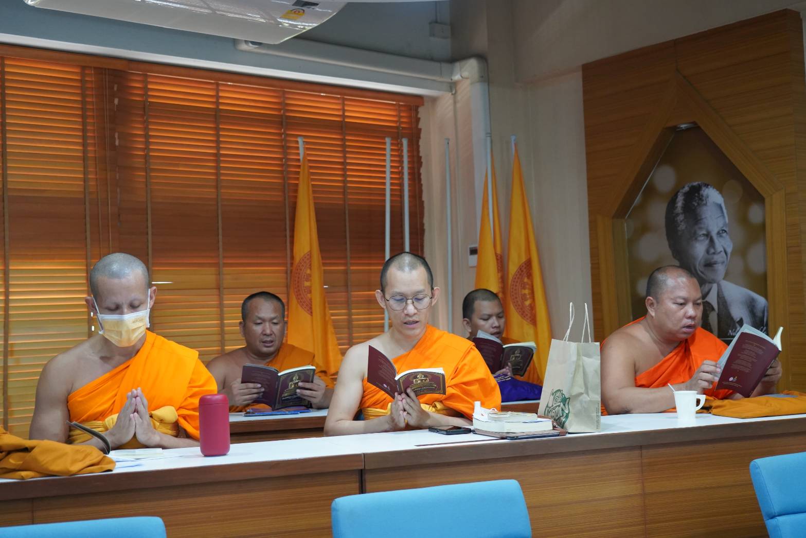 วันอังคารที่ ๒๓ กันยายน พ.ศ. ๒๕๖๘ เวลา ๐๙.๐๐ น. พระสิทธิวัชรบัณฑิต, ผศ.ดร. รองอธิการบดีฝ่ายกิจการต่างประเทศ มอบหมายให้ พระมหาไพฑูรย์ ปนฺตนนฺโท, ดร. รองผู้อำนวยการวิทยาลัยพระธรรมทูต ฝ่ายวิชาการ ผู้อำนวยการหลักสูตรประกาศนียบัตรพระธรรธรรมทูต เป็นประธานนำผู้บริหาร คณาจารย์ เจ้าหน้าที่ และนิสิตวิทยาลัยพระธรรมทูต หลักสูตรประกาศนียบัตรพระธรรมทูต ทำวัตรสวดมนต์แปลบาลี-อังกฤษ ณ ห้องเรียนสันติศึกษา อาคารสมเด็จพระพุฒาจารย์ (เกี่ยว อุปเสโณ) (อาคารเรียนรวม) มจร พระนครศรีอยุธยา