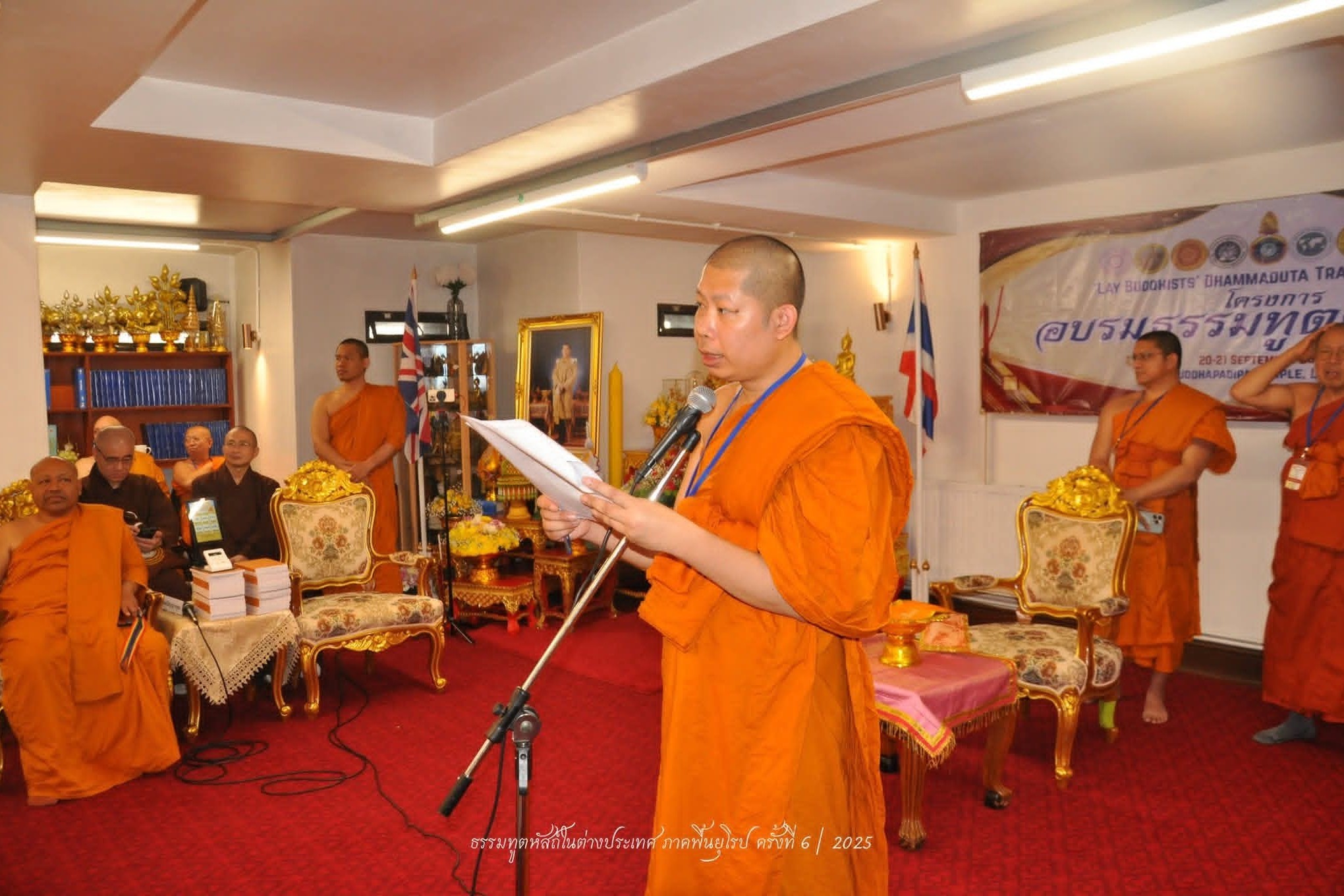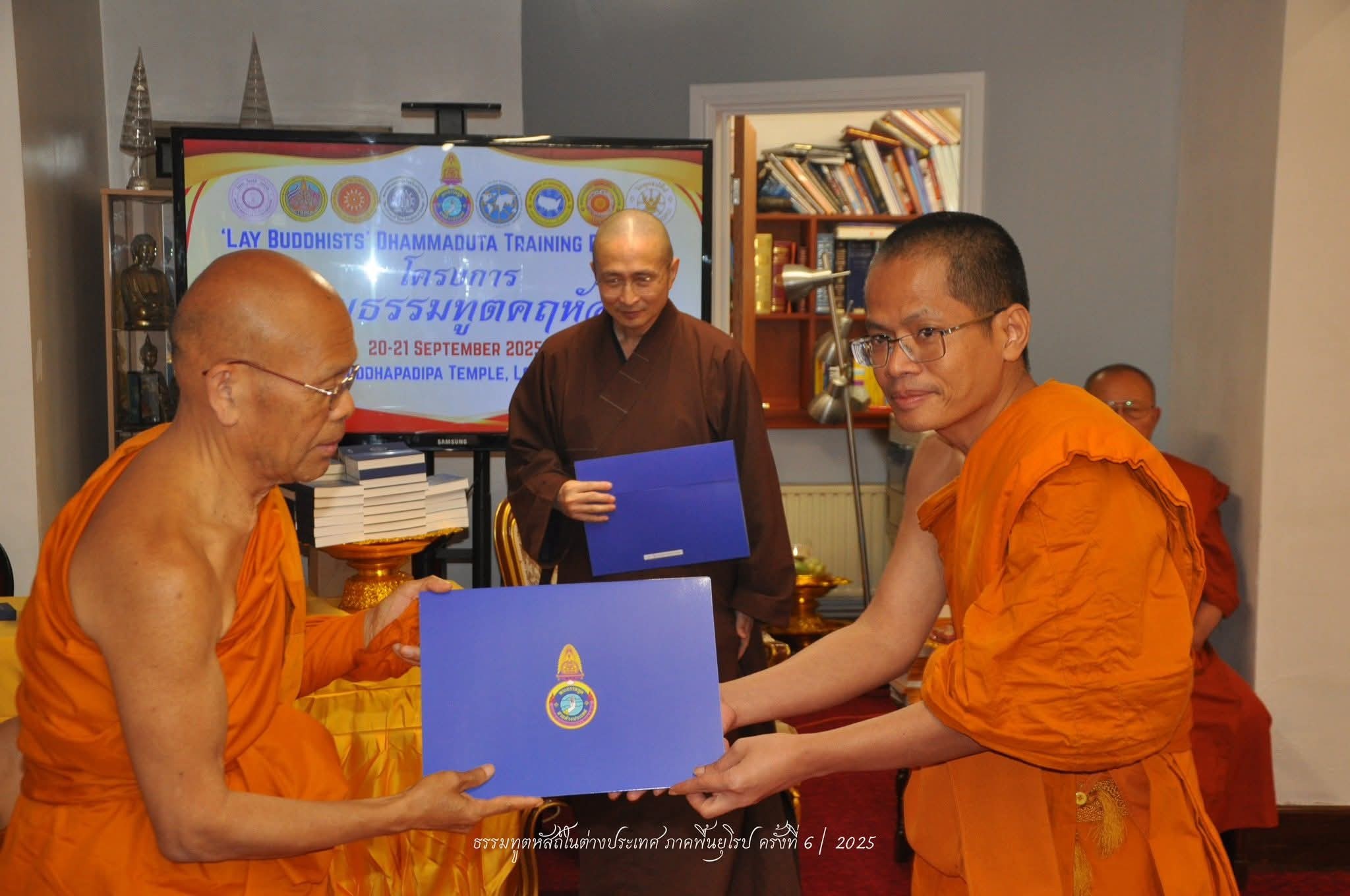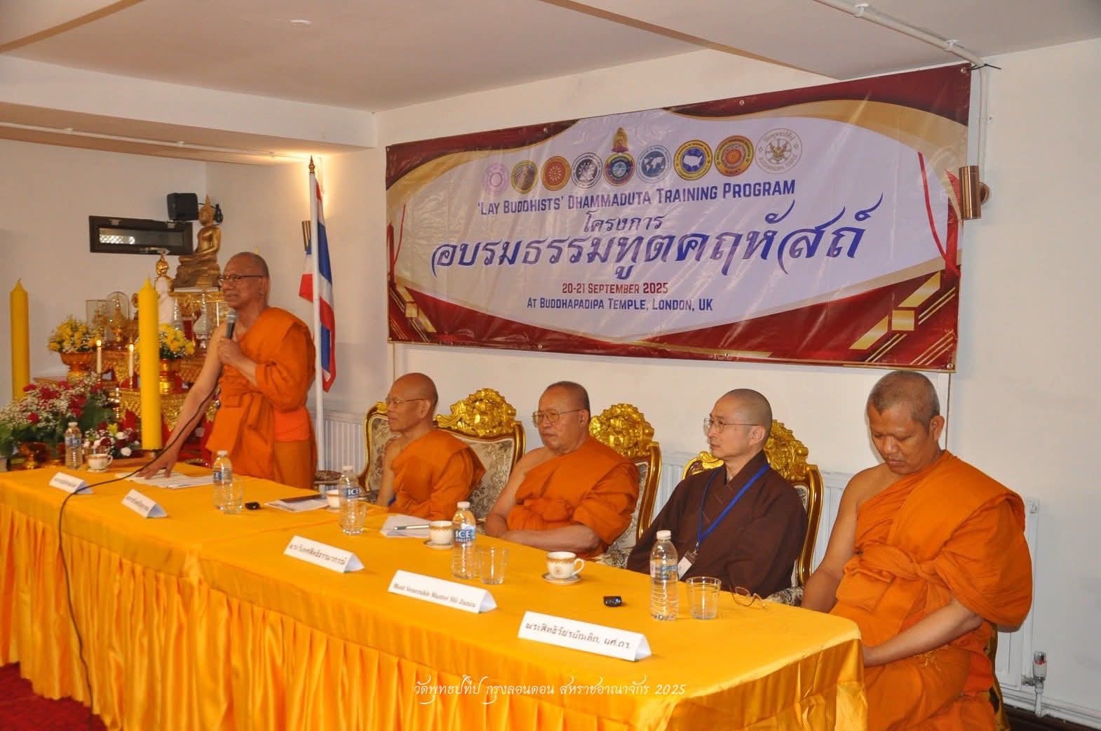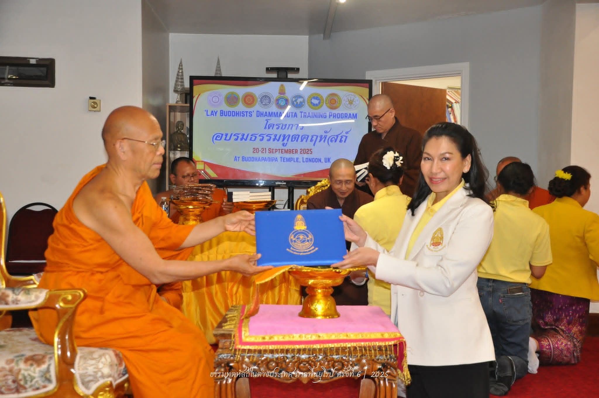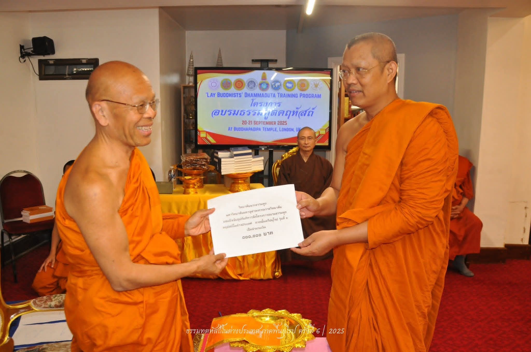 วิทยาลัยพระธรรมทูต มหาวิทยาลัยมหาจุฬาลงกรณราชวิทยาลัย ร่วมกับ องค์กรพระธรรมทูตไทยในสหราชอาณาจักรและไอร์แลนด์ และวัดพุทธปทีป มหานครลอนดอน ดำเนินงานโครงการอบรมธรรมทูตคฤหัสถ์ภาคพื้นยุโรป ครั้งที่ ๖ ภายใต้ความเห็นชอบของมหาเถรสมาคม ณ วัดพุทธปทีป มหานครลอนดอน สหราชอาณาจักร ระหว่างวันที่ ๑๙-๒๑ กันยายน ๒๕๖๘