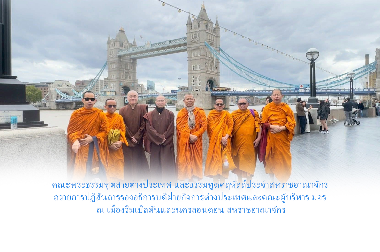 คณะพระธรรมทูตสายต่างประเทศ และธรรมทูตคฤหัสถ์ประจำสหราชอาณาจักร ถวายการปฏิสันถารรองอธิการบดีฝ่ายกิจการต่างประเทศและคณะผู้บริหาร มจร ณ เมืองวิมเบิลดันและนครลอนดอน สหราชอาณาจักร