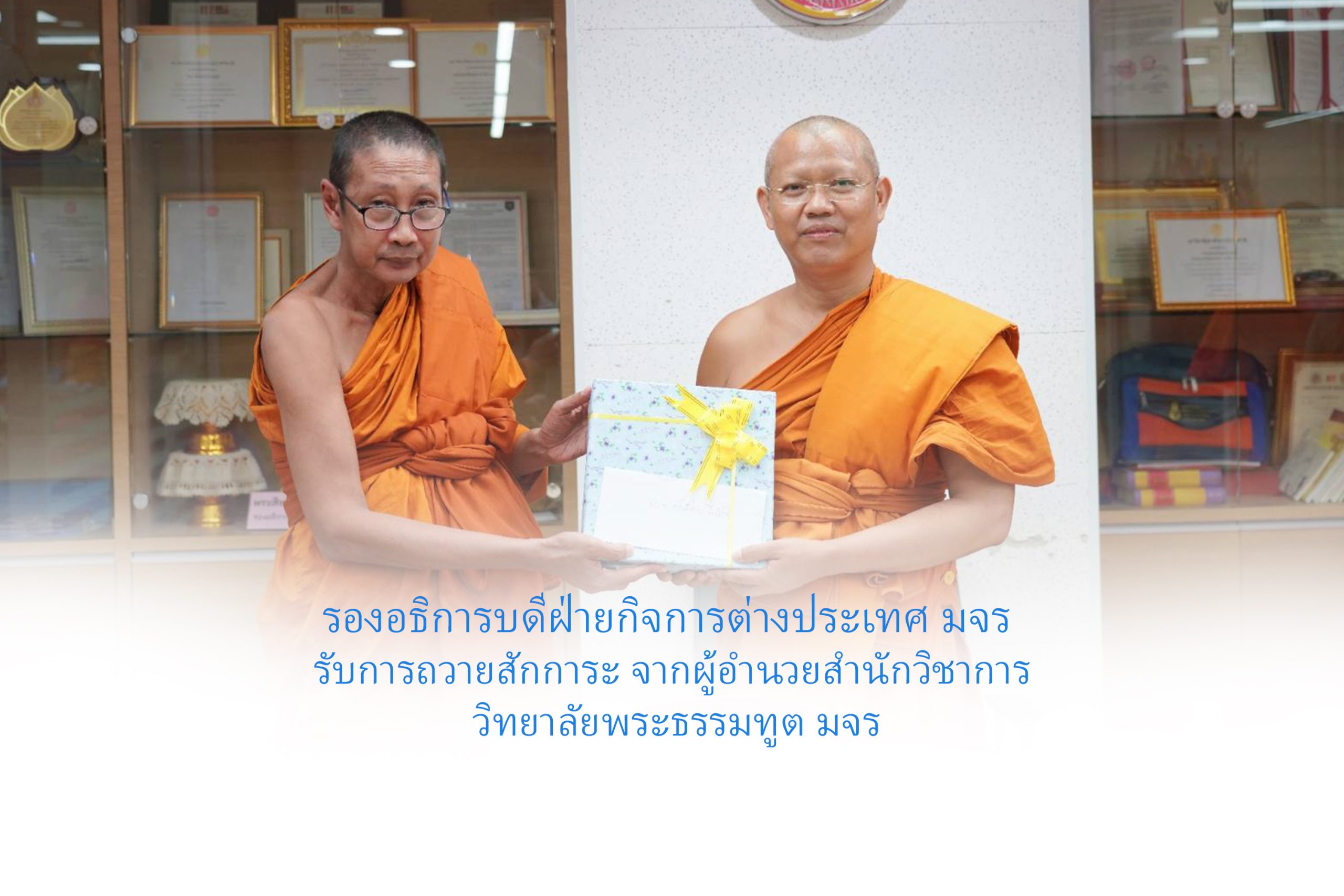 วันพุธที่ ๑ ตุลาคม พ.ศ.๒๕๖๘ เวลา ๑๓.๐๐ น. พระสิทธิวัชรบัณฑิต รองอธิการบดีฝ่ายกิจการต่างประเทศ รับการถวายสักการะจาก พระมหาศักดิ์ชาย โกวิโท ผู้อำนวยการสำนักวิชาการ วิทยาลัยพระธรรมทูต มจร ปรารภมงคลดิถีอภิลักขิตสมัย อายุวัฒนมงคล ๕๓ ปี ๓๓ พรรษา ณ ห้องประชุมวิทยาลัยพระธรรมทูตและกองวิเทศสัมพันธ์ มจร พระนครศรีอยุธยา