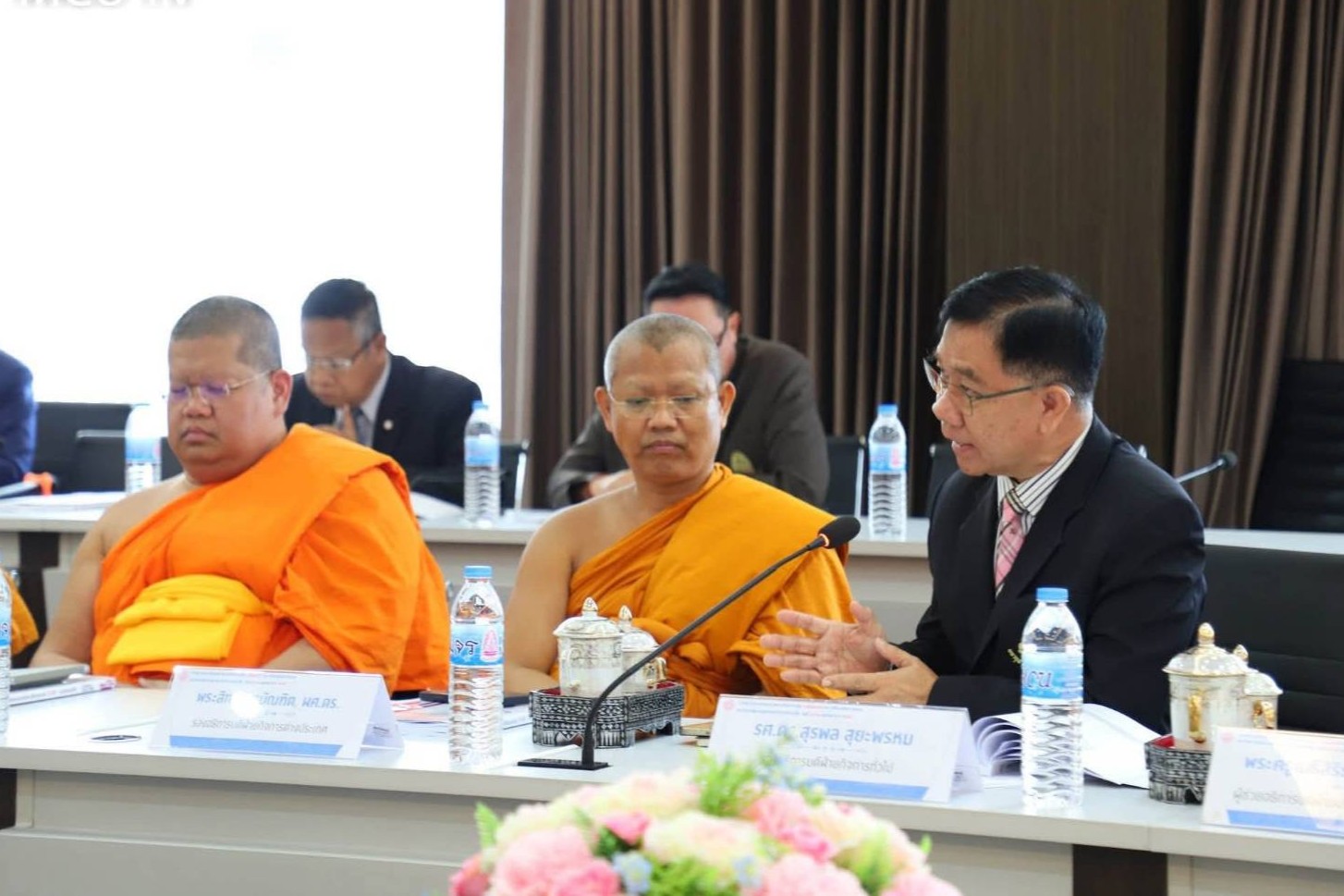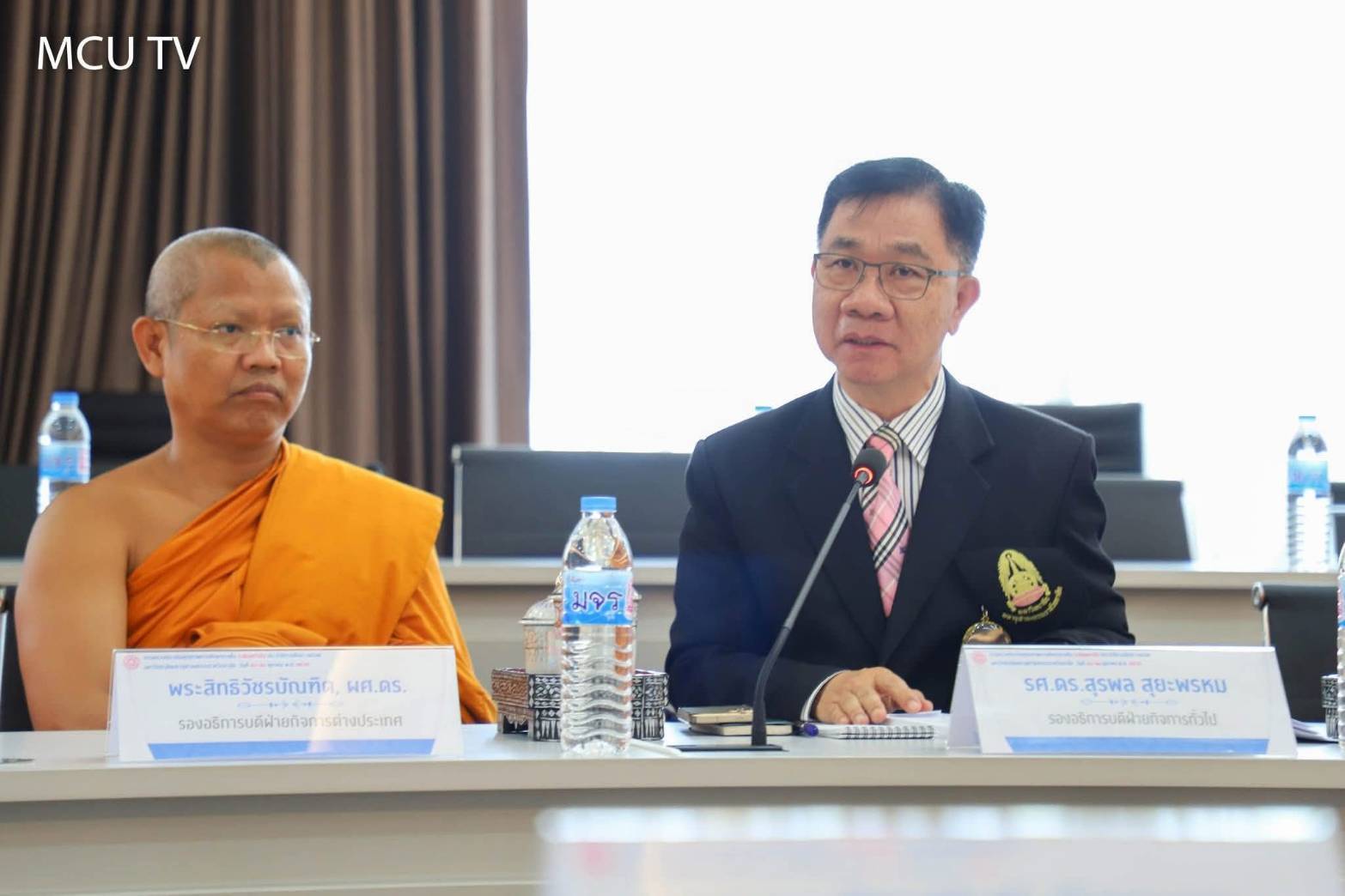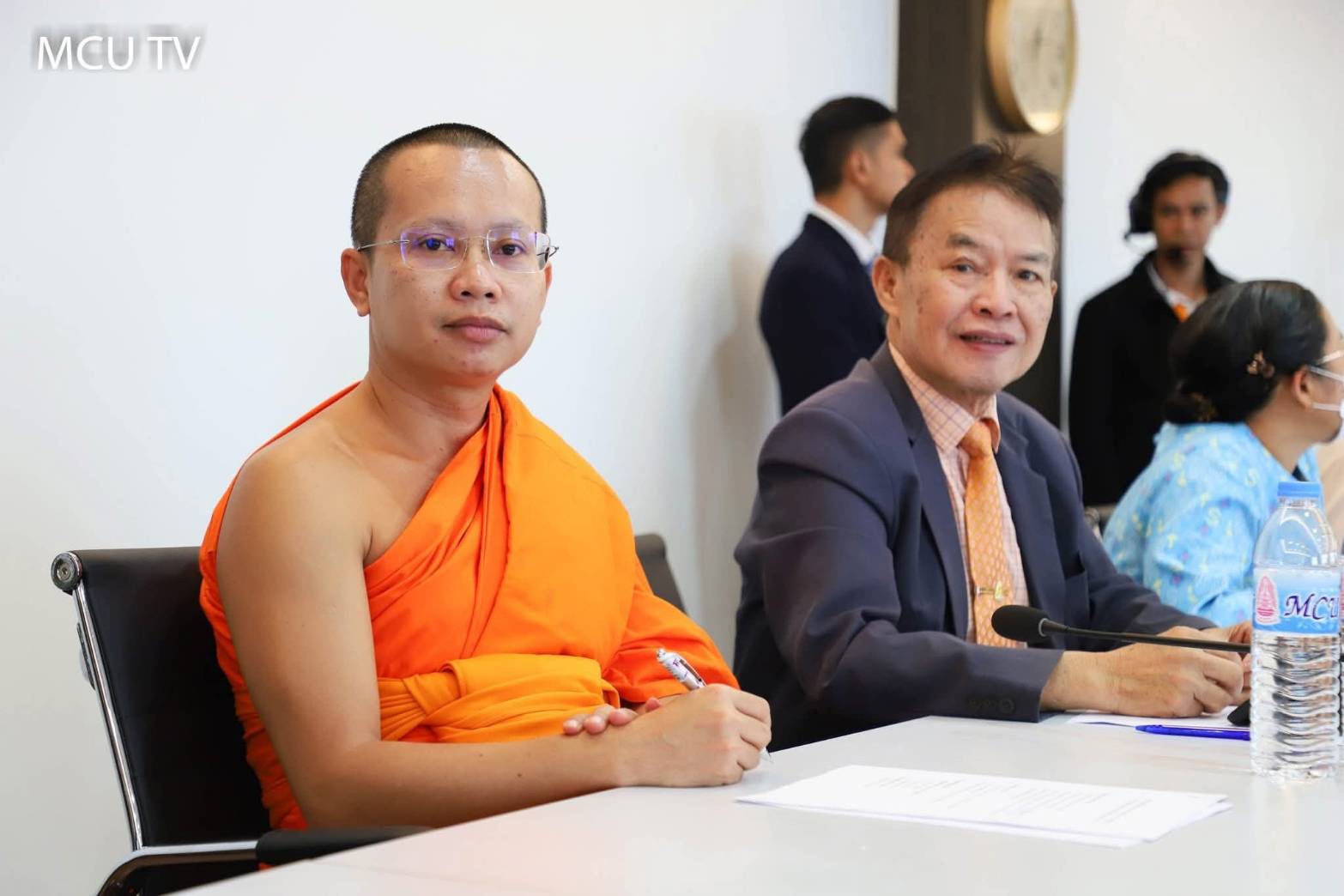 พระสิทธิวัชรบัณฑิต รองอธิการบดีฝ่ายกิจการต่างประเทศ และ พระครูสุตรัตนบัณฑิต ผู้อำนวยการวิทยาลัยพระธรรมทูต ให้สัมภาษณ์ประกอบการพิจารณาการตรวจประเมินคุณภาพการศึกษาภายใน ระดับสถาบัน ฯ