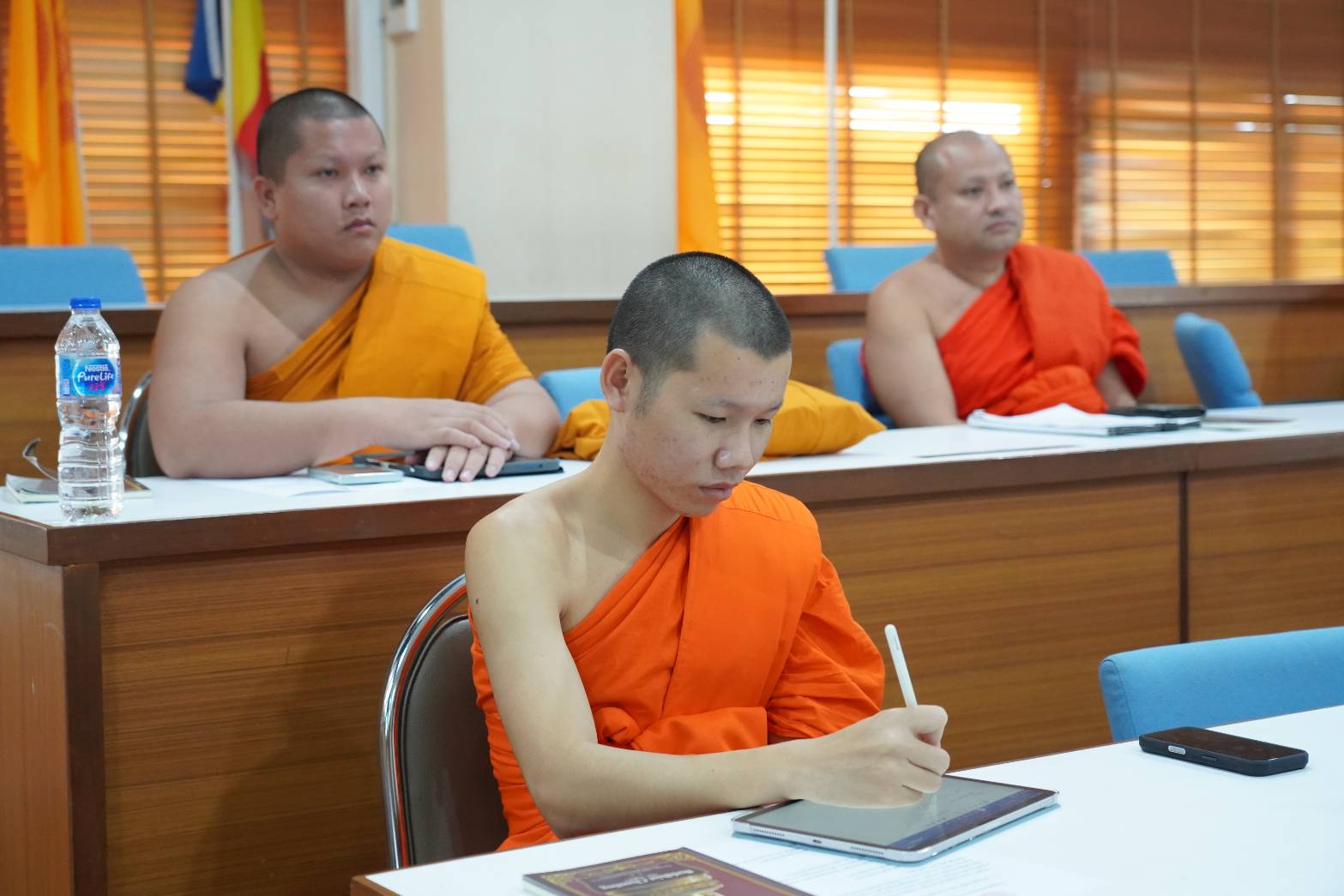 ต่อมา รองอธิการบดีฝ่ายกิจการต่างประเทศ บรรยายเรื่อง “หลักพระธรรมวินัยที่พระธรรมทูตต้องรู้และปฏิบัติให้ถูกต้อง” แก่ลูกศิษย์พระธรรมทูตฯ