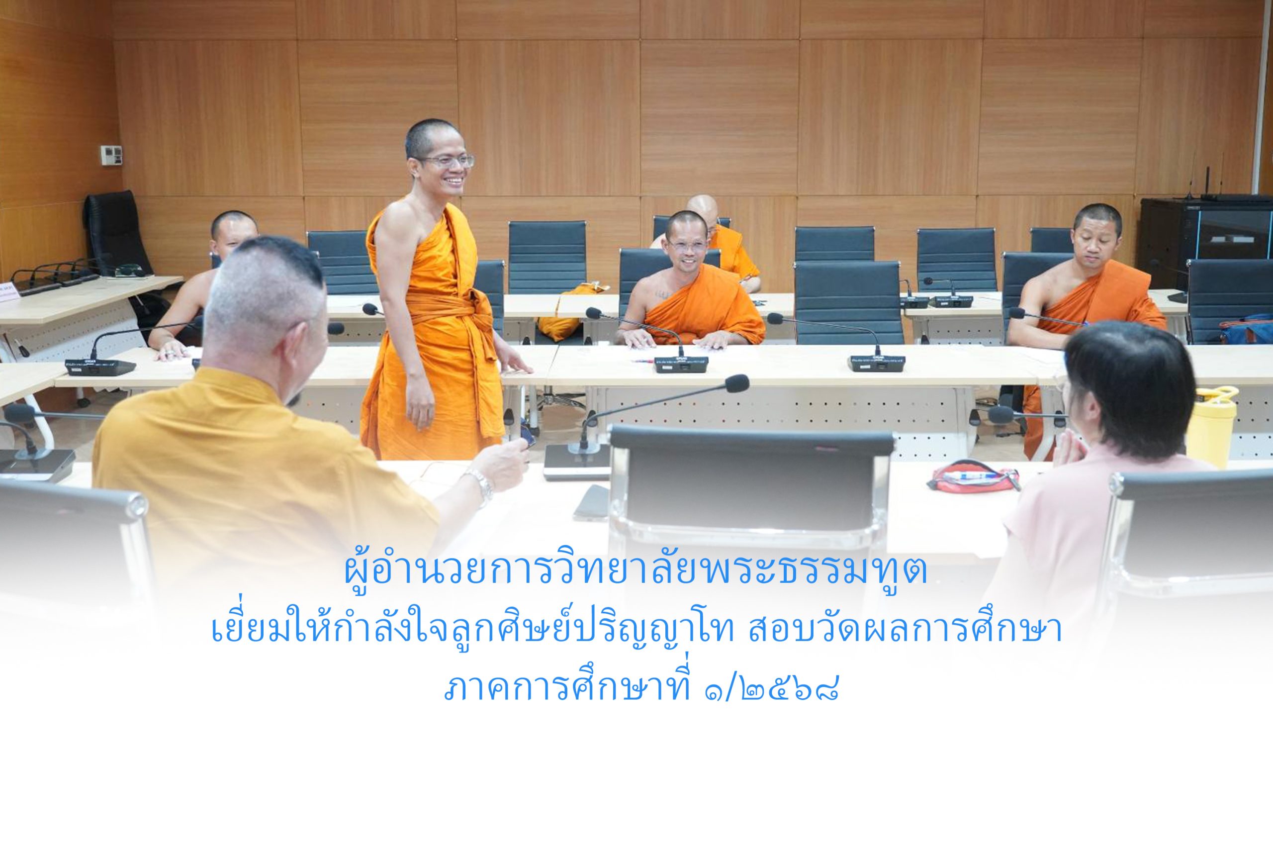 วันพุธที่ ๒๒ ตุลาคม พ.ศ.๒๕๖๘ เวลา ๑๓.๐๐ น. พระครูสุตรัตนบัณฑิต, ดร. ผู้อำนวยการวิทยาลัยพระธรรมทูต ผู้อำนวยการหลักสูตรพุทธศาสตรมหาบัณฑิต สาขาวิชาพระธรรมทูต เยี่ยมให้กำลังใจลูกศิษย์หลักสูตรพุทธศาสตรมหาบัณฑิต สาขาวิชาพระธรรมทูต สอบวัดผลการศึกษา ภาคการศึกษาที่ ๑/๒๕๖๘ ณ ห้องหลักสูตรบัณฑิตศึกษา วิทยาลัยพระธรรมทูต อาคารสมเด็จพระพุฒาจารย์ (เกี่ยว อุปเสณมหาเถร) อาคารเรียนรวม มจร พระนครศรีอยุธยา ฯ