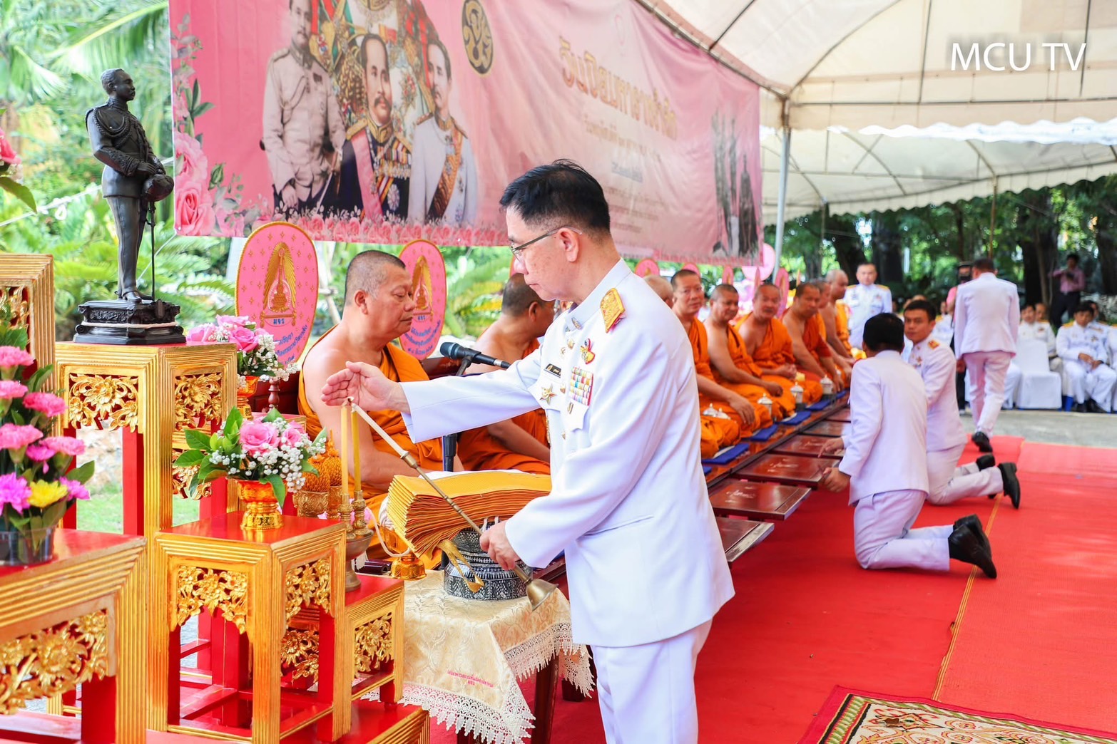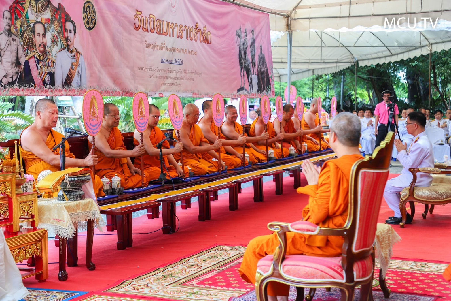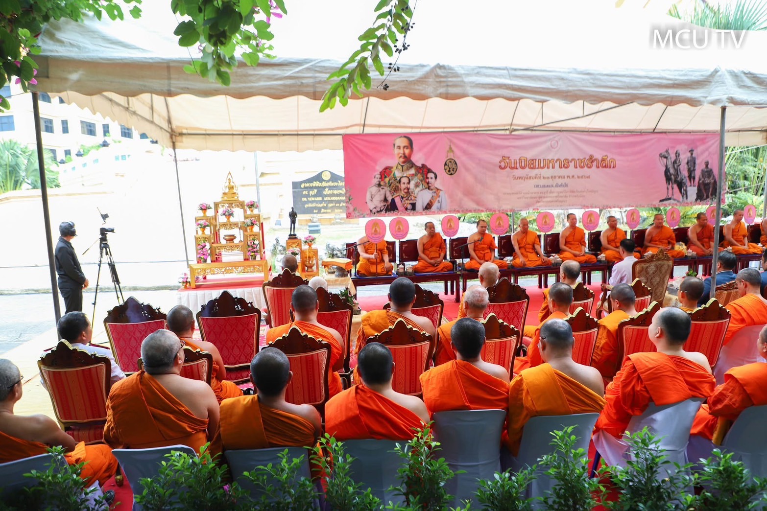 โอกาสนี้ พระสิทธิวัชรบัณฑิต รองอธิการบดีฝ่ายกิจการต่างประเทศ นำคณะผู้บริหาร คณาจารย์ เจ้าหน้าที่ วิทยาลัยพระธรรมทูต ศูนย์อาเซียนศึกษา ศูนย์อินเดียศึกษา และกองวิเทศสัมพันธ์ ซึ่งเป็นหน่วยงานในกำกับ ประกอบพิธีวางพวงมาลา หน้าพระบรมรูปพระบาทสมเด็จพระจุลจอมเกล้าเจ้าอยู่หัว ณ หอพระไตรปิฎก มหาวิทยาลัยมหาจุฬาลงกรณราชวิทยาลัย เพื่อแสดงความจงรักภักดีและน้อมรำลึกถึงพระมหากรุณาธิคุณ และพระราชคุณูปการอันหาที่สุดมิได้ ที่สมเด็จพระปิยมหาราช ทรงมีต่อประเทศชาติ บวรพระพุทธศาสนา คณะสงฆ์ และ มหาวิทยาลัยมหาจุฬาลงกรณราชวิทยาลัย ฯ