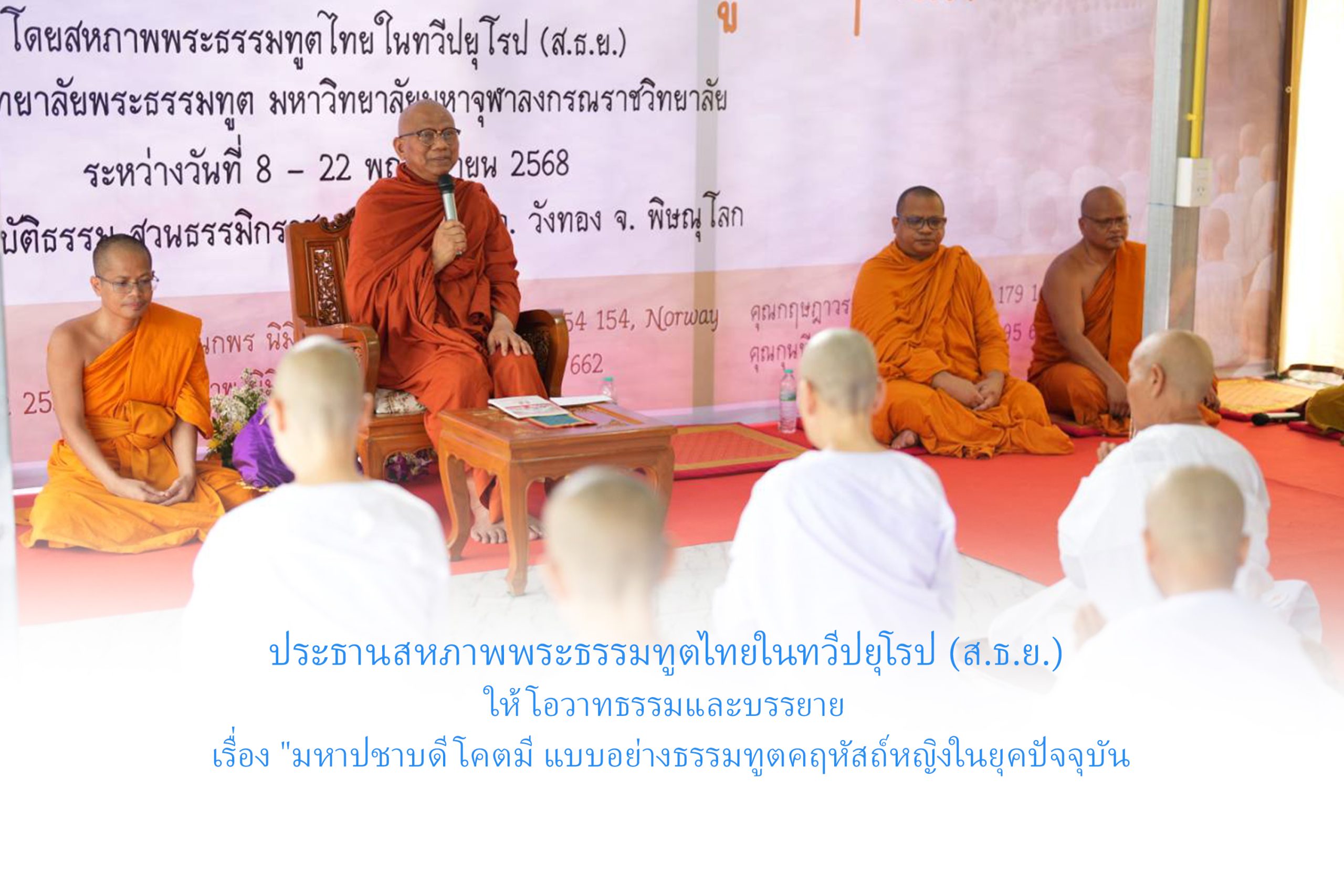 ประธานสหภาพพระธรรมทูตไทยในทวีปยุโรป (ส.ธ.ย.) ให้โอวาทธรรมและบรรยาย เรื่อง “มหาปชาบดีโคตมี แบบอย่างธรรมทูตคฤหัสถ์หญิงในยุคปัจจุบัน