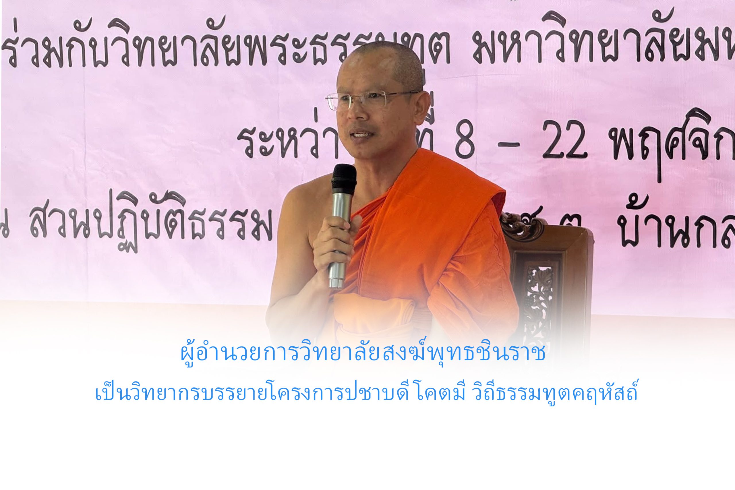 วันอาทิตย์ที่ ๙ พฤศจิกายน พ.ศ. ๒๕๖๘ เวลา ๐๙.๐๐ น. พระครูรัตนสุตาภรณ์ ผู้รักษาการผู้อำนวยการวิทยาลัยสงฆ์พุทธชินราช จังหวัดพิษณุโลก เมตตากล่าวต้อนรับ ร่วมสนับสนุนโครงการ และบรรยายธรรมโครงการ “ปชาบดีโคตมี วิถีธรรมทูตคฤหัสถ์”ซึ่งโครงการดังกล่าว จัดขึ้นระหว่างวันที่ ๘ – ๒๒ พฤศจิกายน ๒๕๖๘ ณ สวนปฏิบัติธรรม สวนธรรมิกราช ตำบลบ้านกลาง อำเภอวังทอง จังหวัดพิษณุโลก ดำเนินการโดยวิทยาลัยพระธรรมทูต มหาวิทยาลัยมหาจุฬาลงกรณราชวิทยาลัย ร่วมกับสหภาพพระธรรมทูตไทยในทวีปยุโรป