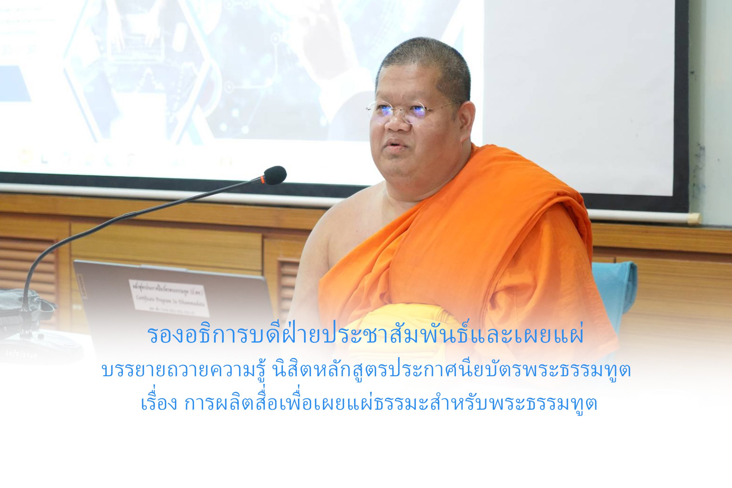 รองอธิการบดีฝ่ายประชาสัมพันธ์และเผยแผ่ บรรยายพิเศษถวายความรู้ นิสิตหลักสูตรประกาศนียบัตรพระธรรมทูต เรื่อง การผลิตสื่อเพื่อเผยแผ่ธรรมะสำหรับพระธรรมทูต