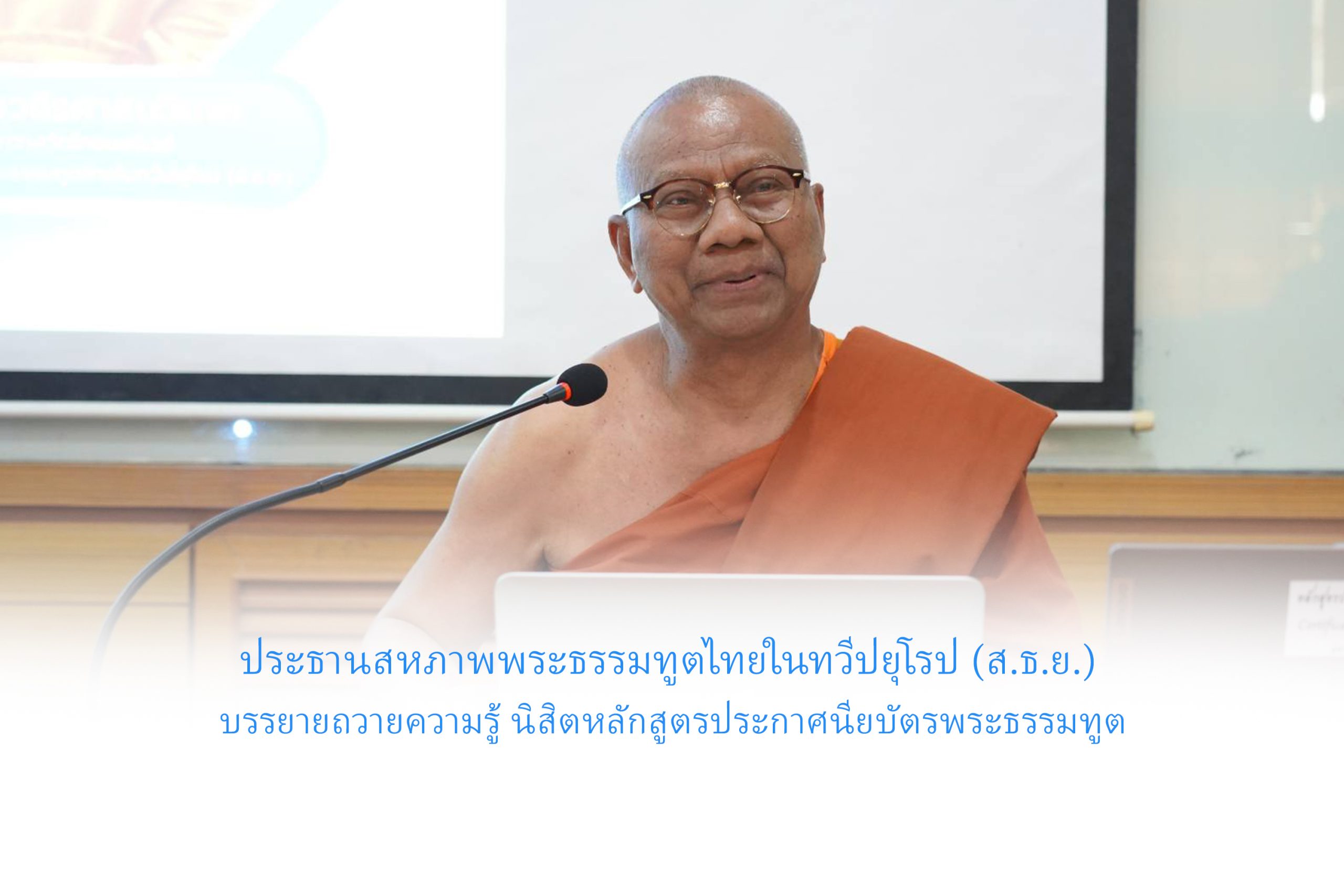 วันอังคารที่ ๒๕ พฤศจิกายน พ.ศ.๒๕๖๘ เวลา ๑๓.๐๐ น. พระราชวชิรศาสนวิเทศ เจ้าอาวาสวัดไทยนอร์เวย์ ประธานสหภาพพระธรรมทุตไทยในทวีปยุโรป (ส.ธ.ย.) เมตตาให้เกียรติวิทยาลัยพระธรรมทูต รับอาราธนาบรรยายพิเศษ เรื่อง “แนวทางการเผยแผ่พระพุทธศาสนาในสังคมพหุวัฒนธรรม” แก่นิสิตหลักสูตรประกาศนียบัตรพระธรรมทูต รุ่นที่ ๓ ณ ห้องสันติศึกษา อาคารสมเด็จพระพุฒาจารย์ (เกี่ยว อุปเสณมหาเถร) มหาวิทยาลัยมหาจุฬาลงกรณราชวิทยาลัย ตำบลลำไทร อำเภอวังน้อย จังหวัดพระนครศรีอยุธยา