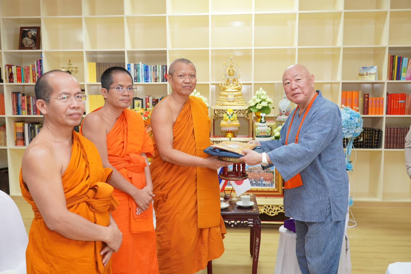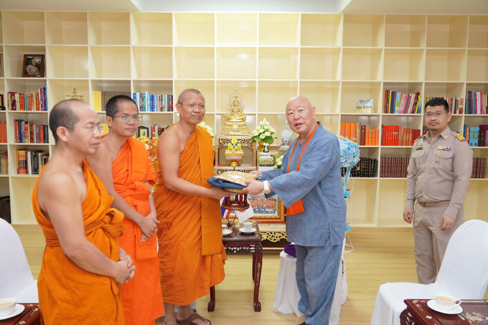 พระครูสุตรัตนบัณฑิต ผู้อำนวยการวิทยาลัยพระธรรมทูต พระมหาจีรวัฒน์ กนฺตวณฺโณ ป.ธ.๙ ผู้อำนวยการศูนย์อาเซียนศึกษา พระครูใบฎีกาแสงเฮือง นรินฺโท รองผู้อำนวยการวิทยาลัยพระธรรมทูต และนายศิโรดม วชิรวราภรณ์ รองผู้อำนวยการกองวิเทศสัมพันธ์ ให้เกียรติร่วมถวายการปฏิสันถารในการนี้ ฯ