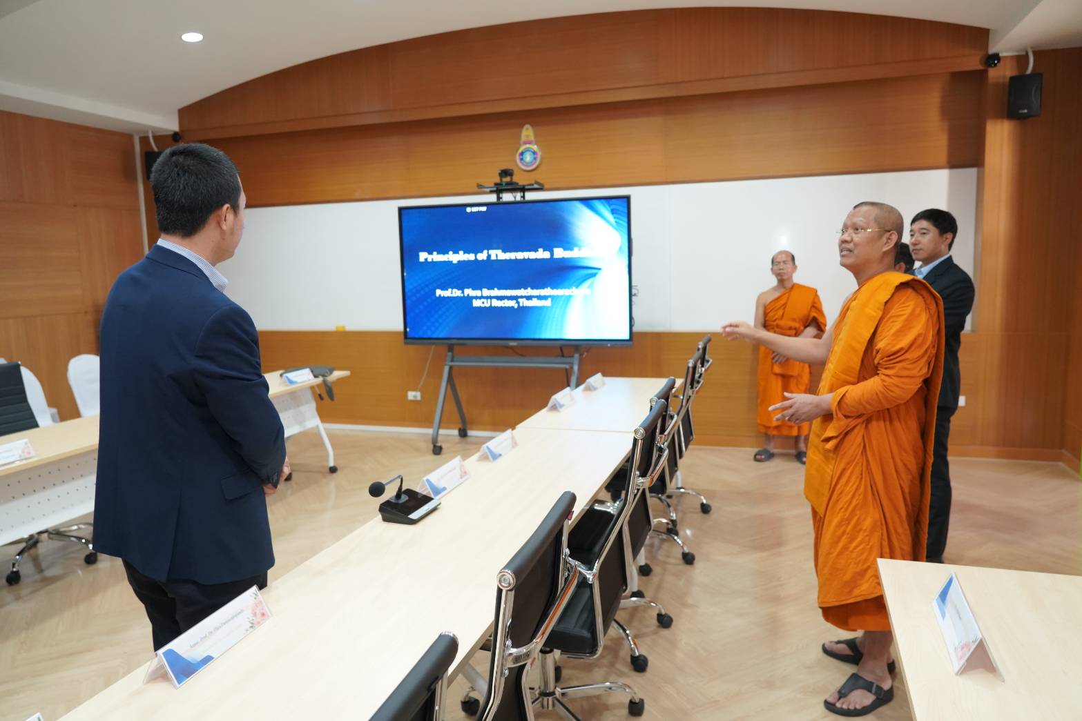 ผู้ช่วยศาสตราจารย์ ดร.บุญมี พรรษา ผู้ช่วยอธิการบดีฝ่ายกิจการต่างประเทศ พระครูสุตรัตนบัณฑิต ผู้อำนวยการวิทยาลัยพระธรรมทูต พระครูใบฎีกาแสงเฮือง นรินฺโท รองผู้อำนวยการวิทยาลัยพระธรรมทูต พร้อมด้วย คณะผู้บริหารและเจ้าหน้าที่ วิทยาลัยพระธรรมทูตและกองวิเทศสัมพันธ์ กองอาคารสถานที่และยานพาหนะ ให้เกียรติเข้าประชุมในการนี้ฯ