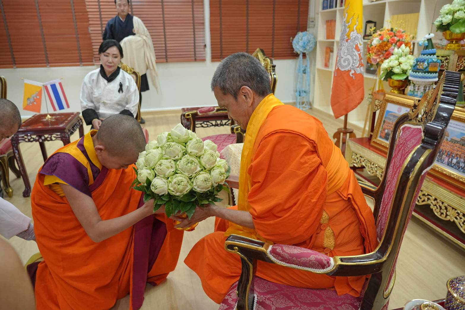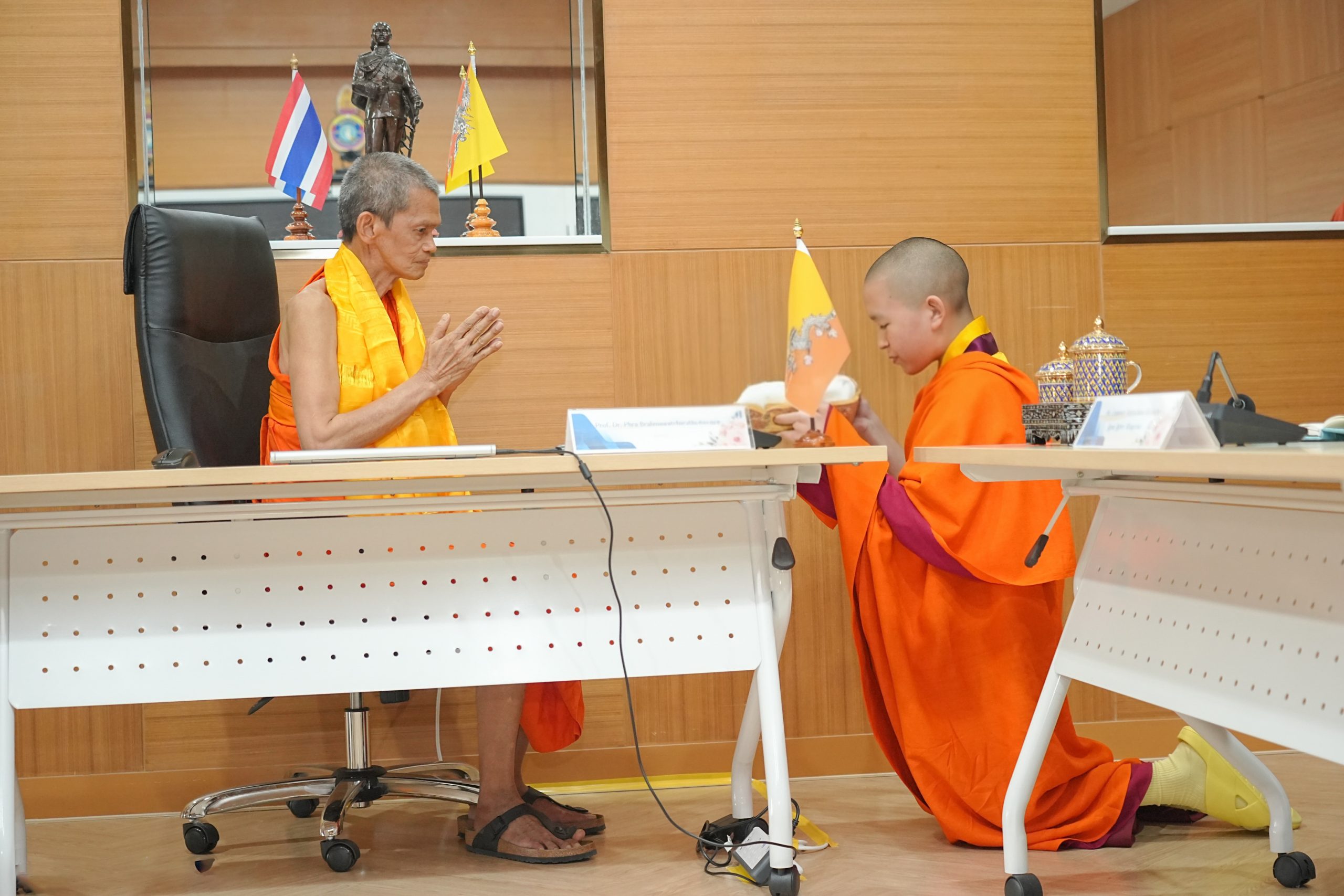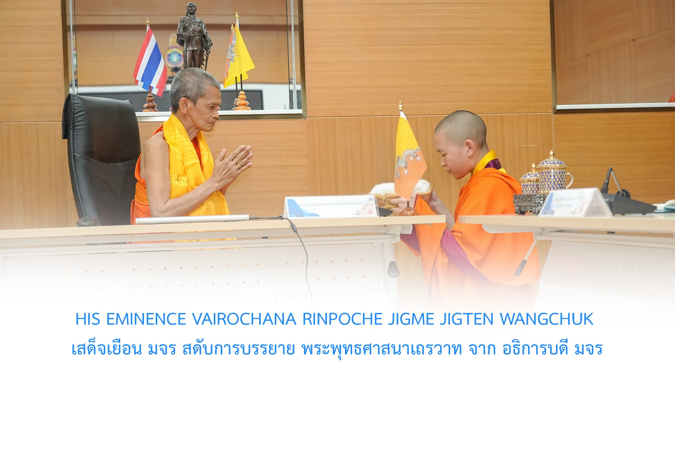 โอกาสนี้ His Eminence Vairochana Rinpoche Jigme Jigten Wangchuk ได้ถวายสักการะ และ ถวายองค์เป็นศิษย์ พระพรหมวัชรธีราจารย์ พร้อมกับตรัสขอบคุณ อธิการบดี และ คณะผู้บริหาร มจร ที่ถวายการปฏิสันถารอย่างสมพระเกียรติ