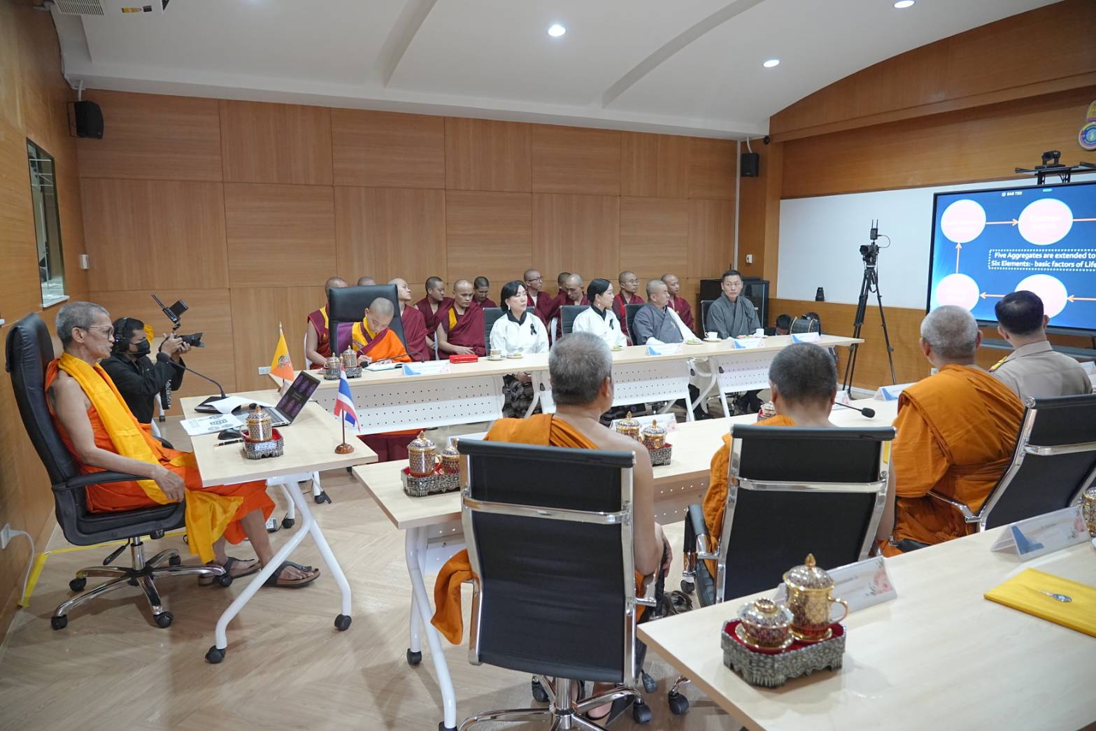 His Eminence Vairochana Rinpoche Jigme Jigten Wangchuk เสด็จเยือน มจร เพื่อทรงศึกษาวิชาการด้านพระพุทธศาสนาเถรวาท โดยมี พระพรหมวัชรธีราจารย์ อธิการบดี เป็นองค์บรรยายถวายความรู้ ณ ห้องเรียนบัณฑิตศึกษา วิทยาลัยพระธรรมทูต อาคารเรียนรวม มจร พระนครศรีอยุธยา
