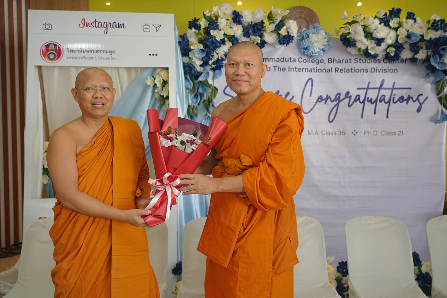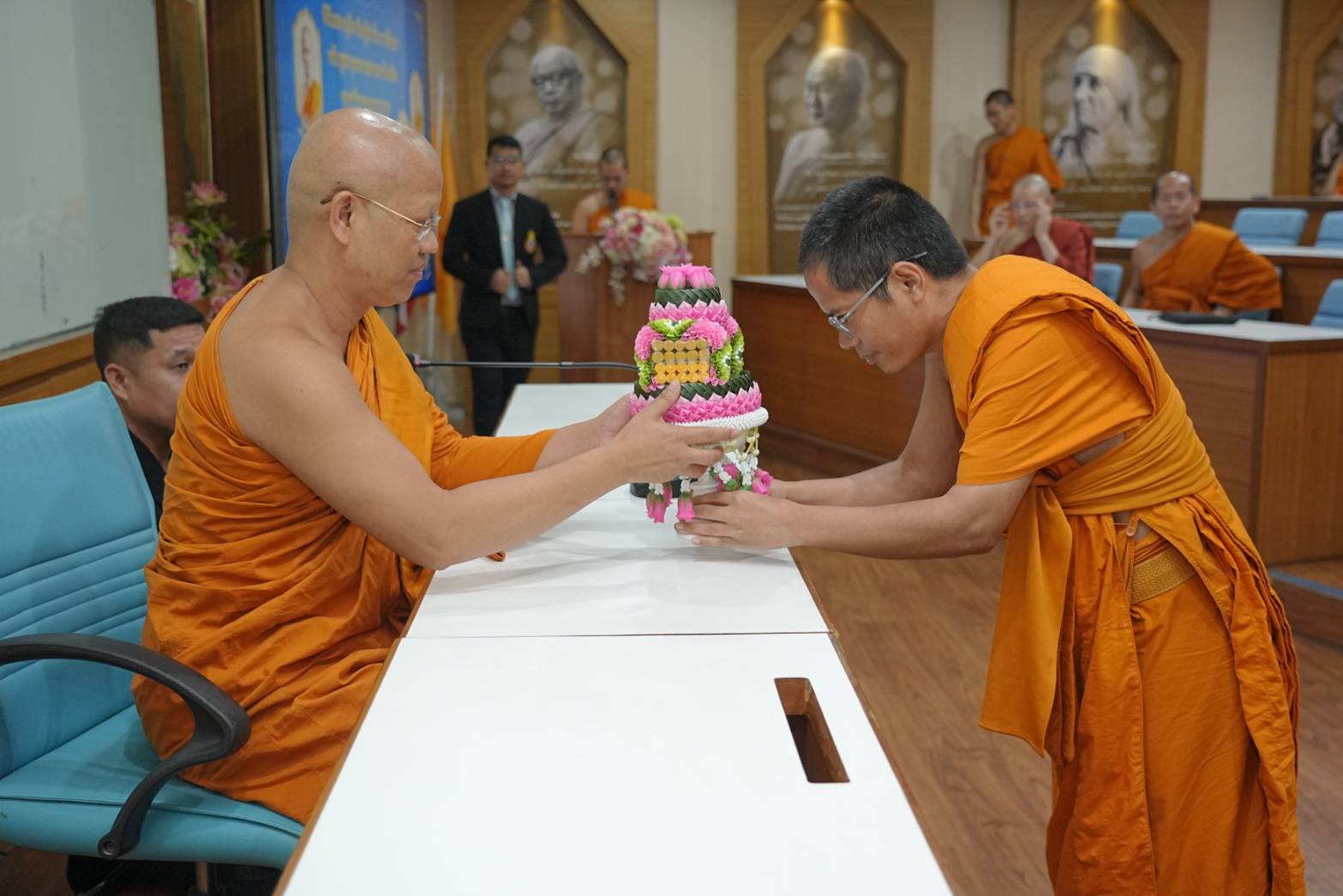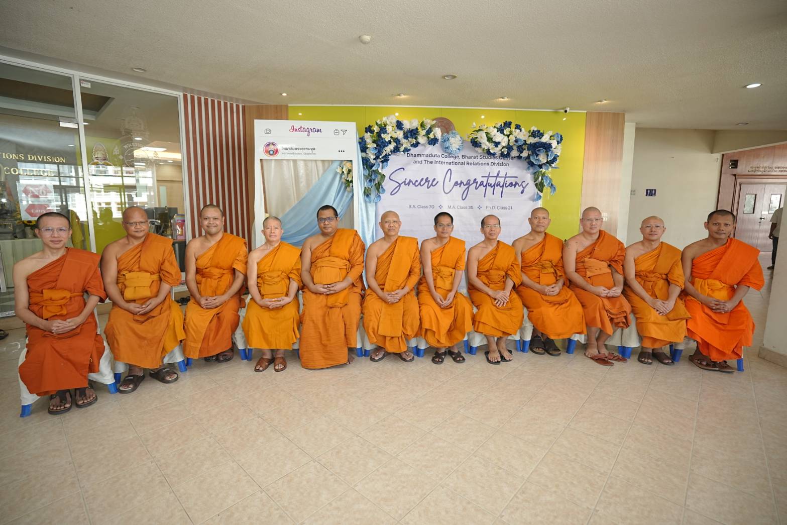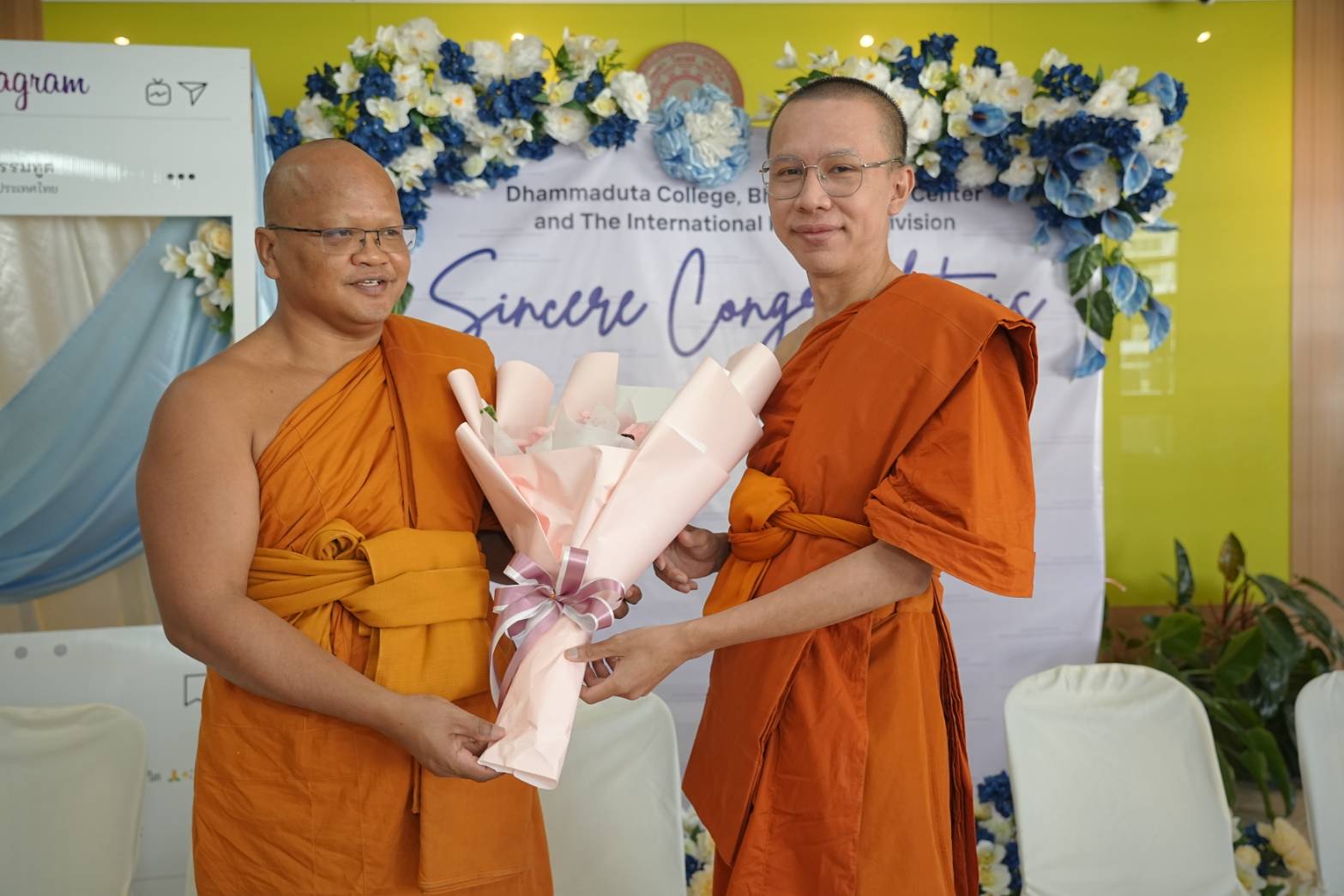 รองอธิการบดีฝ่ายกิจการต่างประเทศ เป็นประธานพิธีแสดงมุทิตาจิตต่อ มหาบัณฑิตผู้สำเร็จการศึกษาปริญญาโท พุทธศาสตรมหาบัณฑิต สาขาวิชาพระธรรมทูต รุ่นที่ ๑