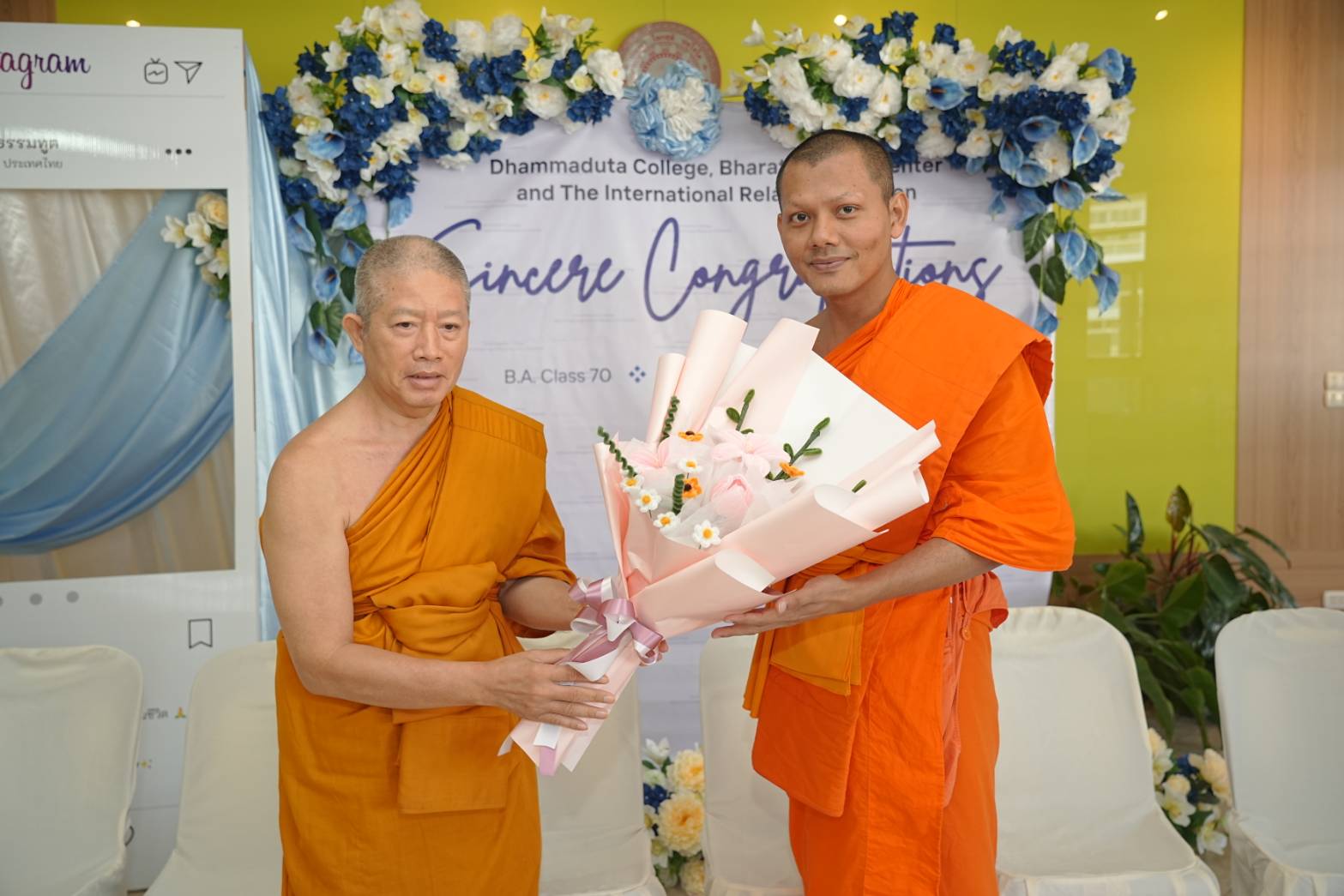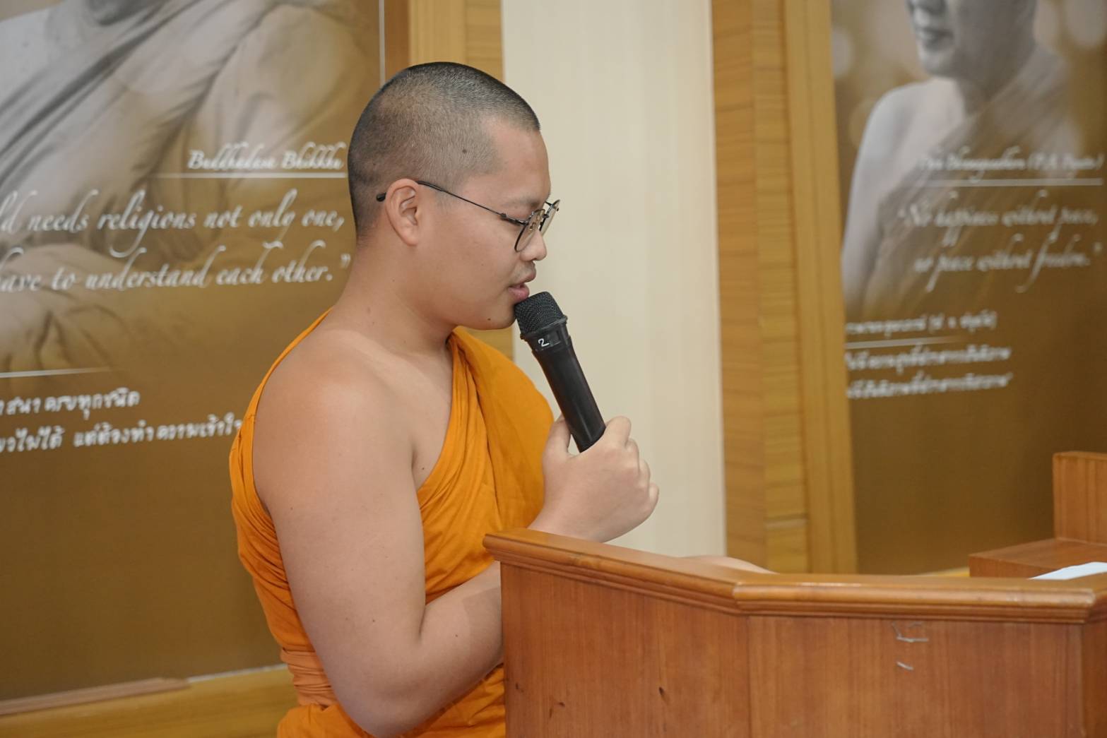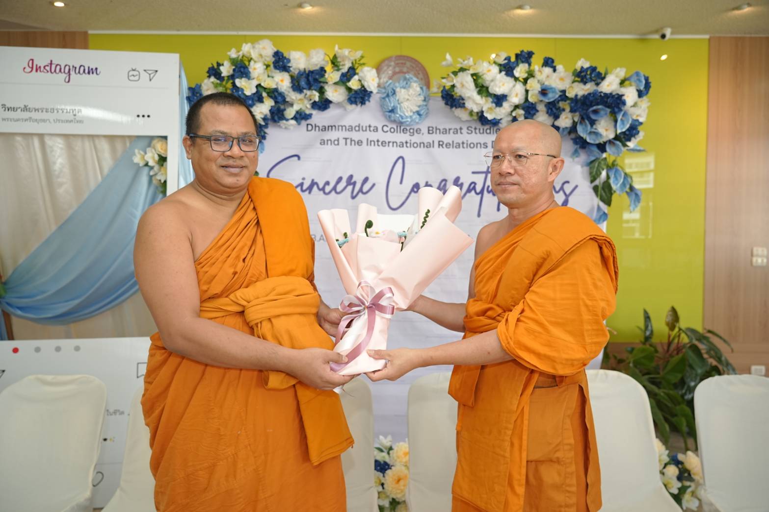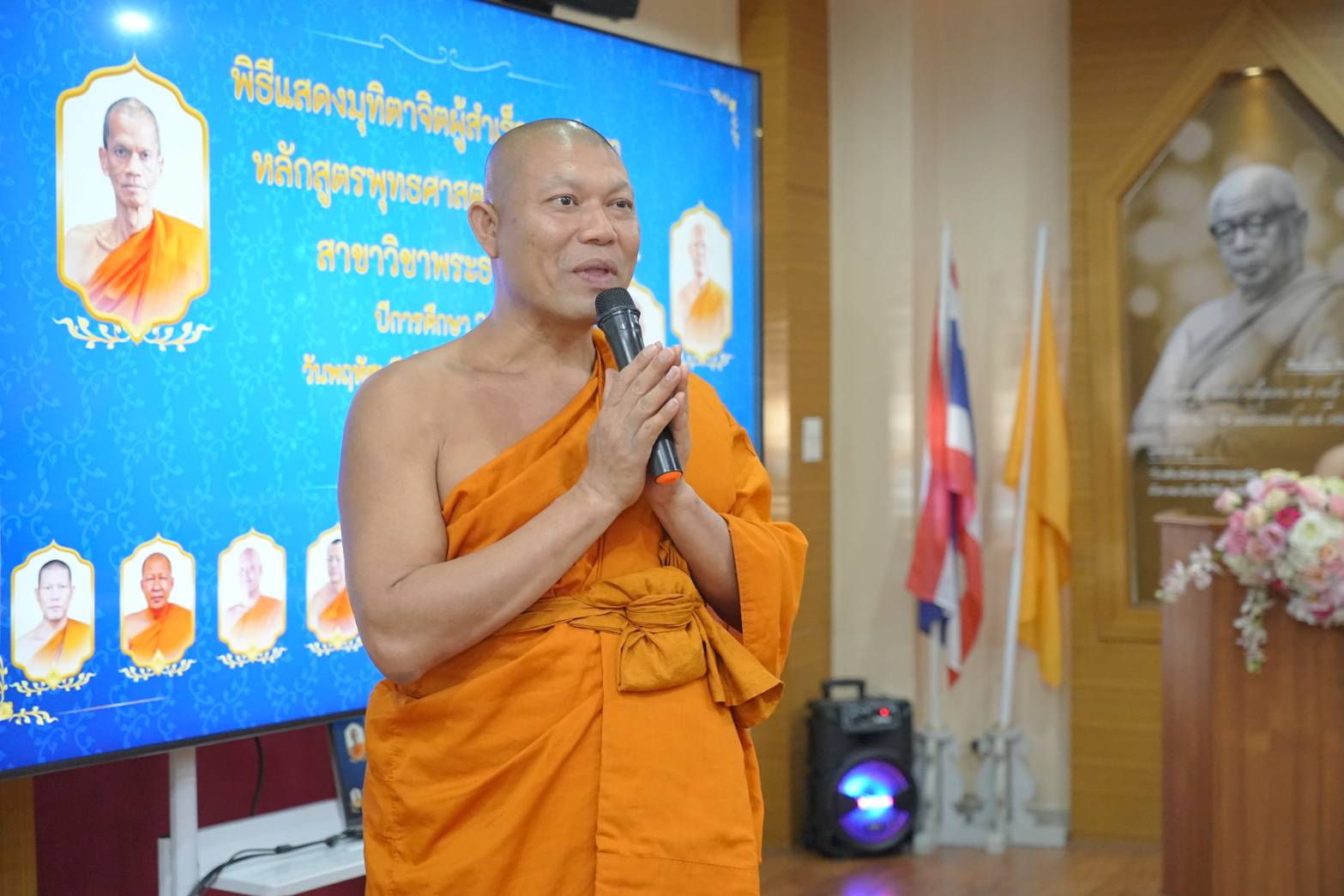 รองอธิการบดีฝ่ายกิจการต่างประเทศ เป็นประธานพิธีแสดงมุทิตาจิตต่อ มหาบัณฑิตผู้สำเร็จการศึกษาปริญญาโท พุทธศาสตรมหาบัณฑิต สาขาวิชาพระธรรมทูต รุ่นที่ ๑