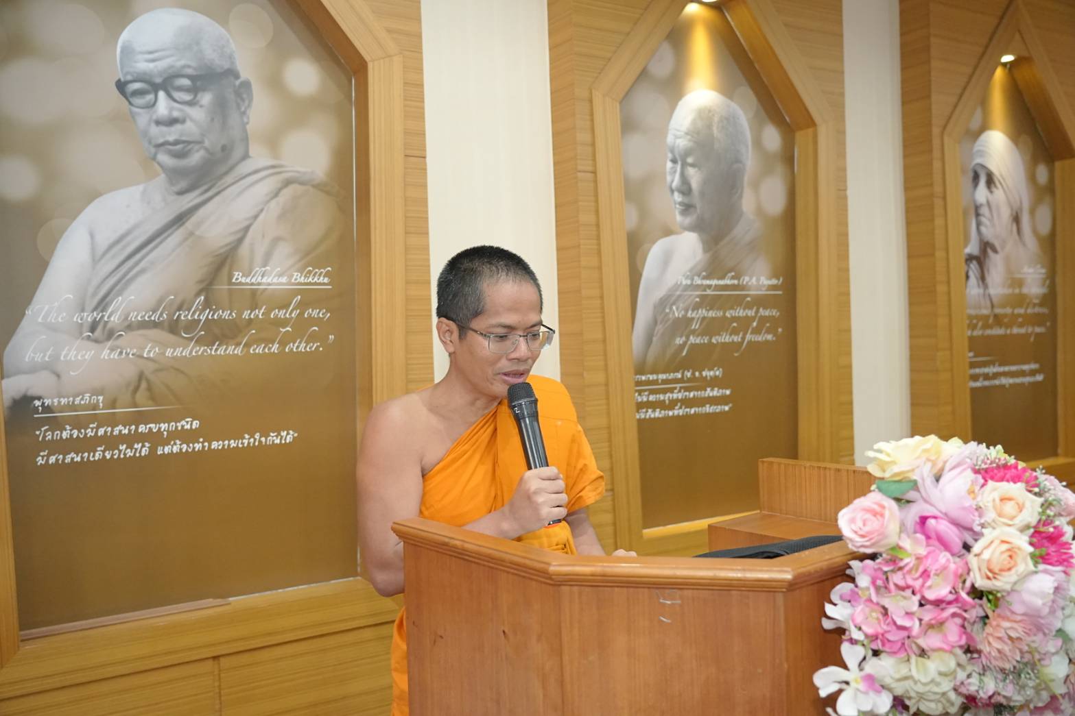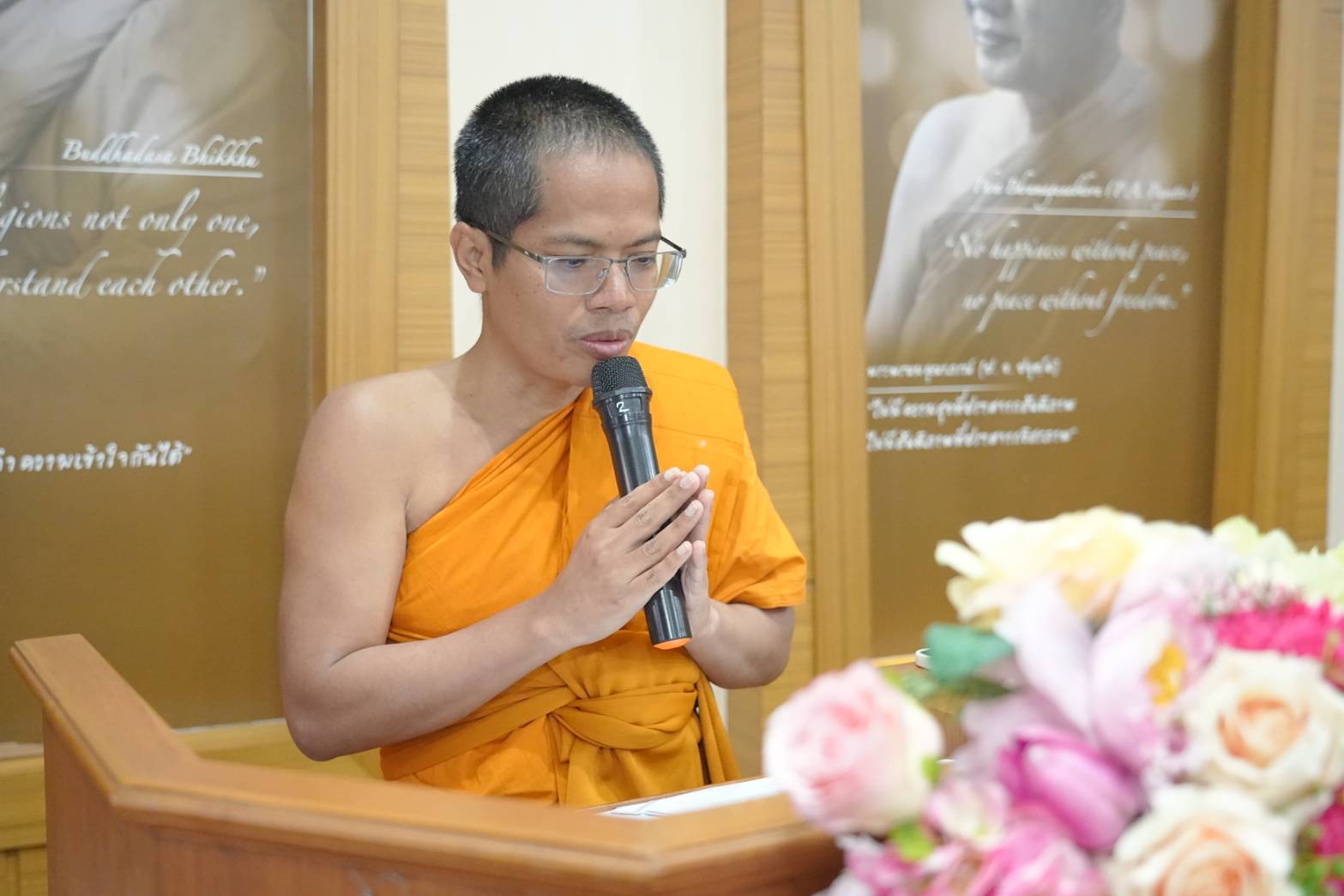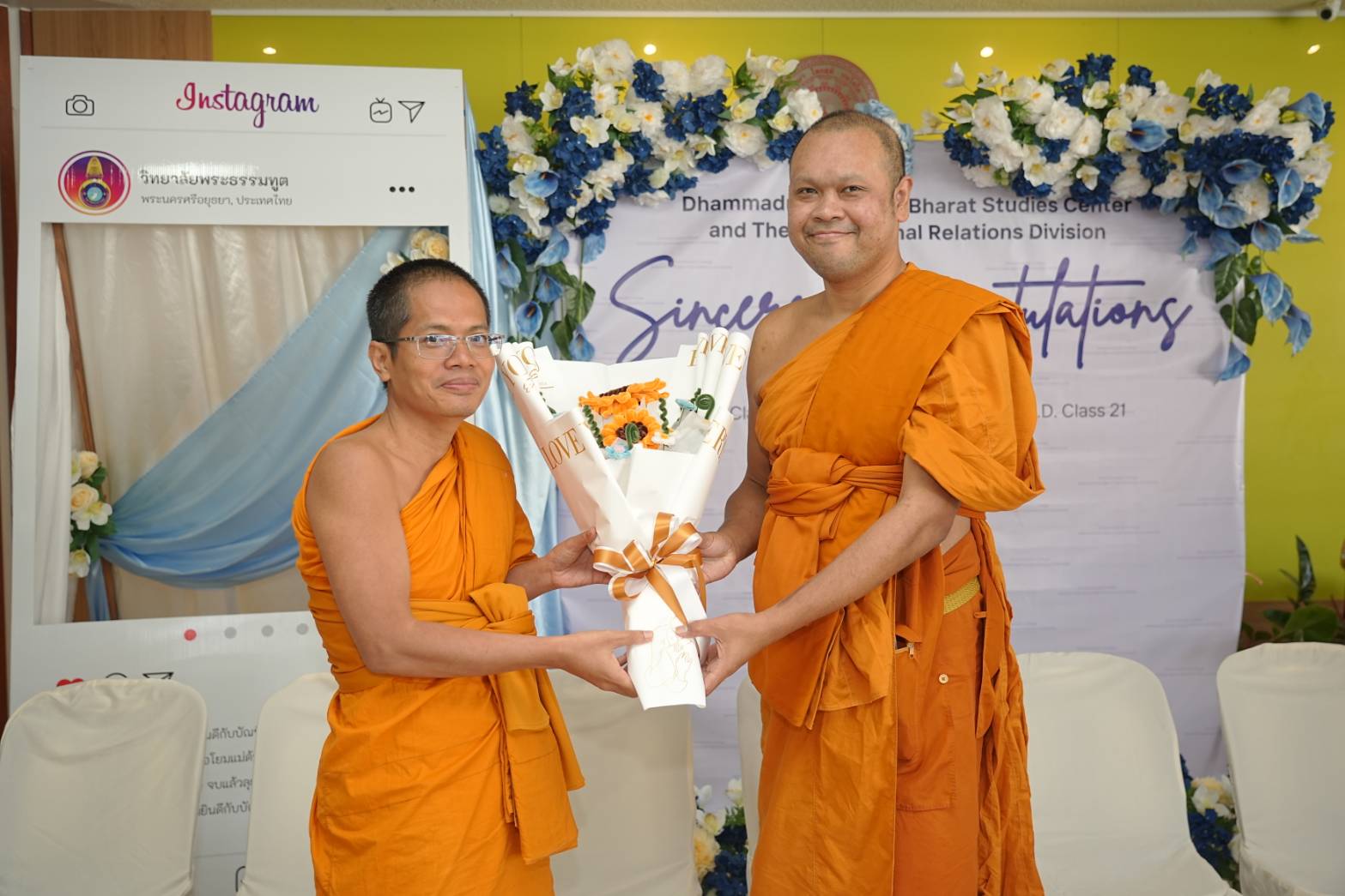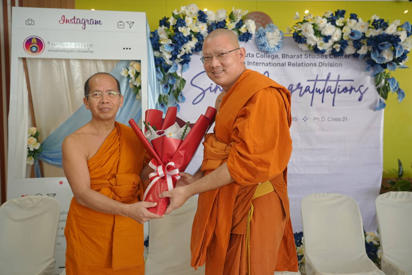 รองอธิการบดีฝ่ายกิจการต่างประเทศ เป็นประธานพิธีแสดงมุทิตาจิตต่อ มหาบัณฑิตผู้สำเร็จการศึกษาปริญญาโท พุทธศาสตรมหาบัณฑิต สาขาวิชาพระธรรมทูต รุ่นที่ ๑