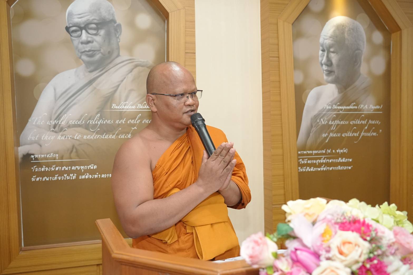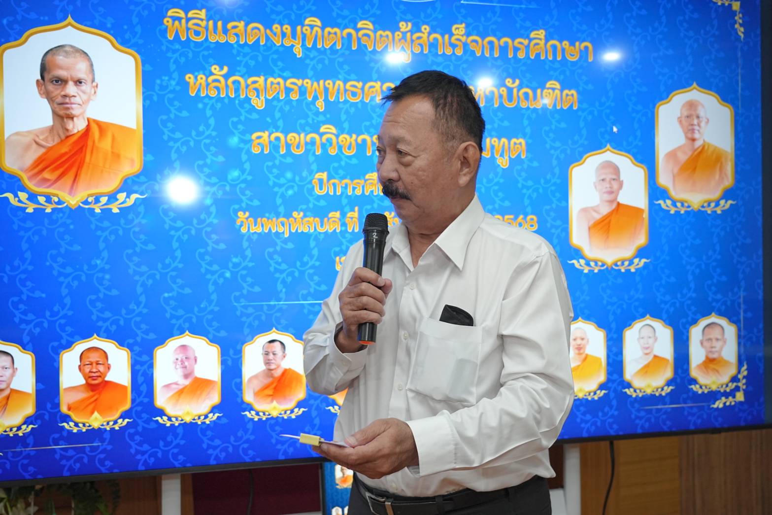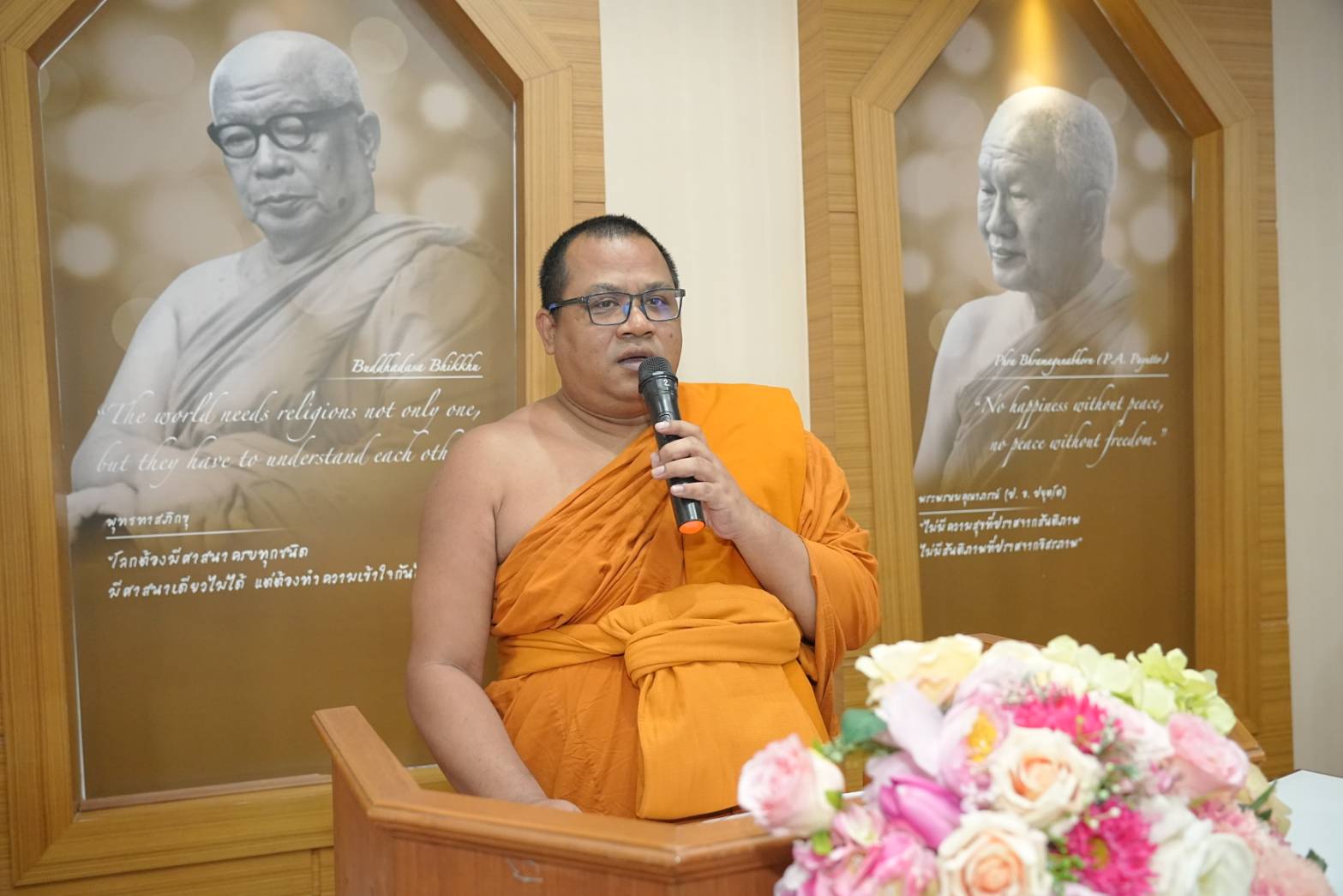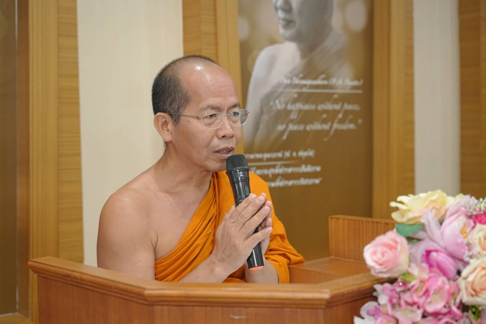 รองอธิการบดีฝ่ายกิจการต่างประเทศ เป็นประธานพิธีแสดงมุทิตาจิตต่อ มหาบัณฑิตผู้สำเร็จการศึกษาปริญญาโท พุทธศาสตรมหาบัณฑิต สาขาวิชาพระธรรมทูต รุ่นที่ ๑
