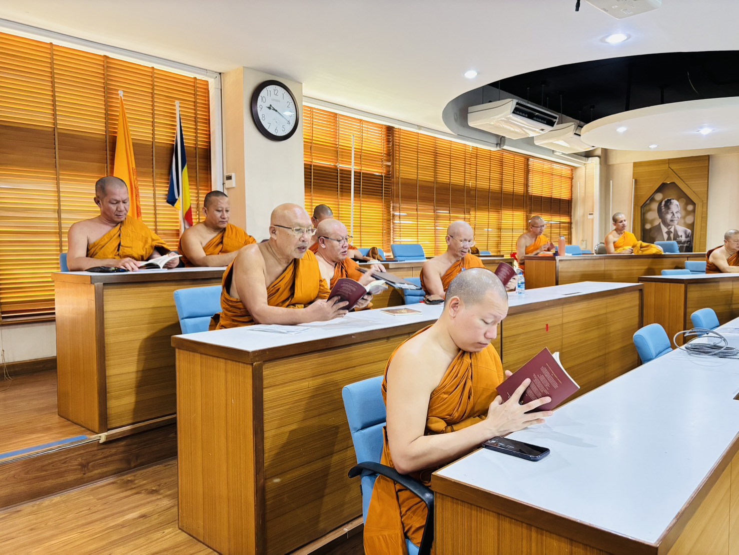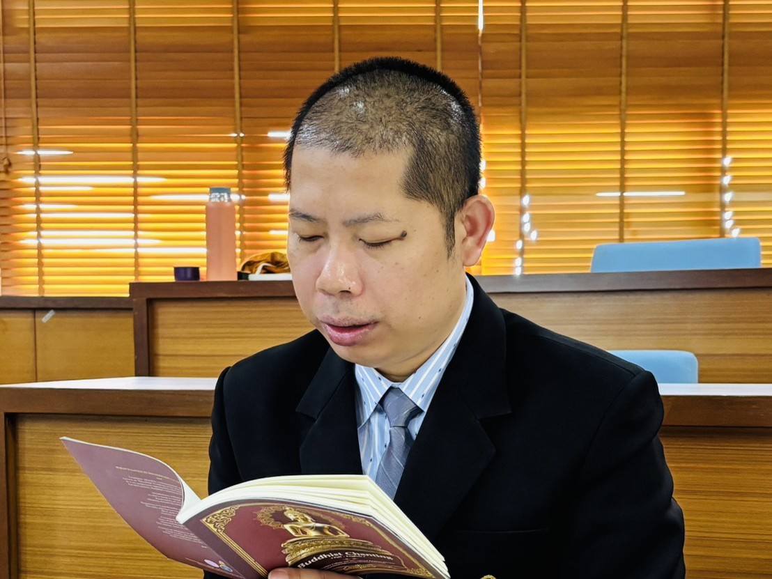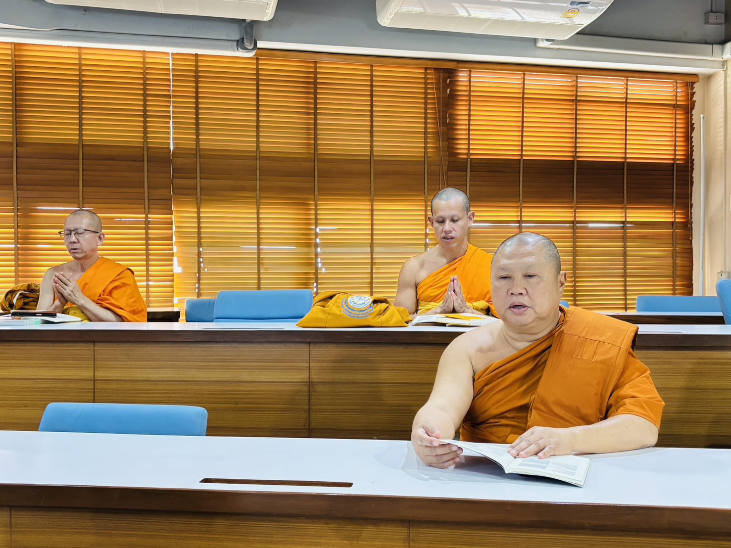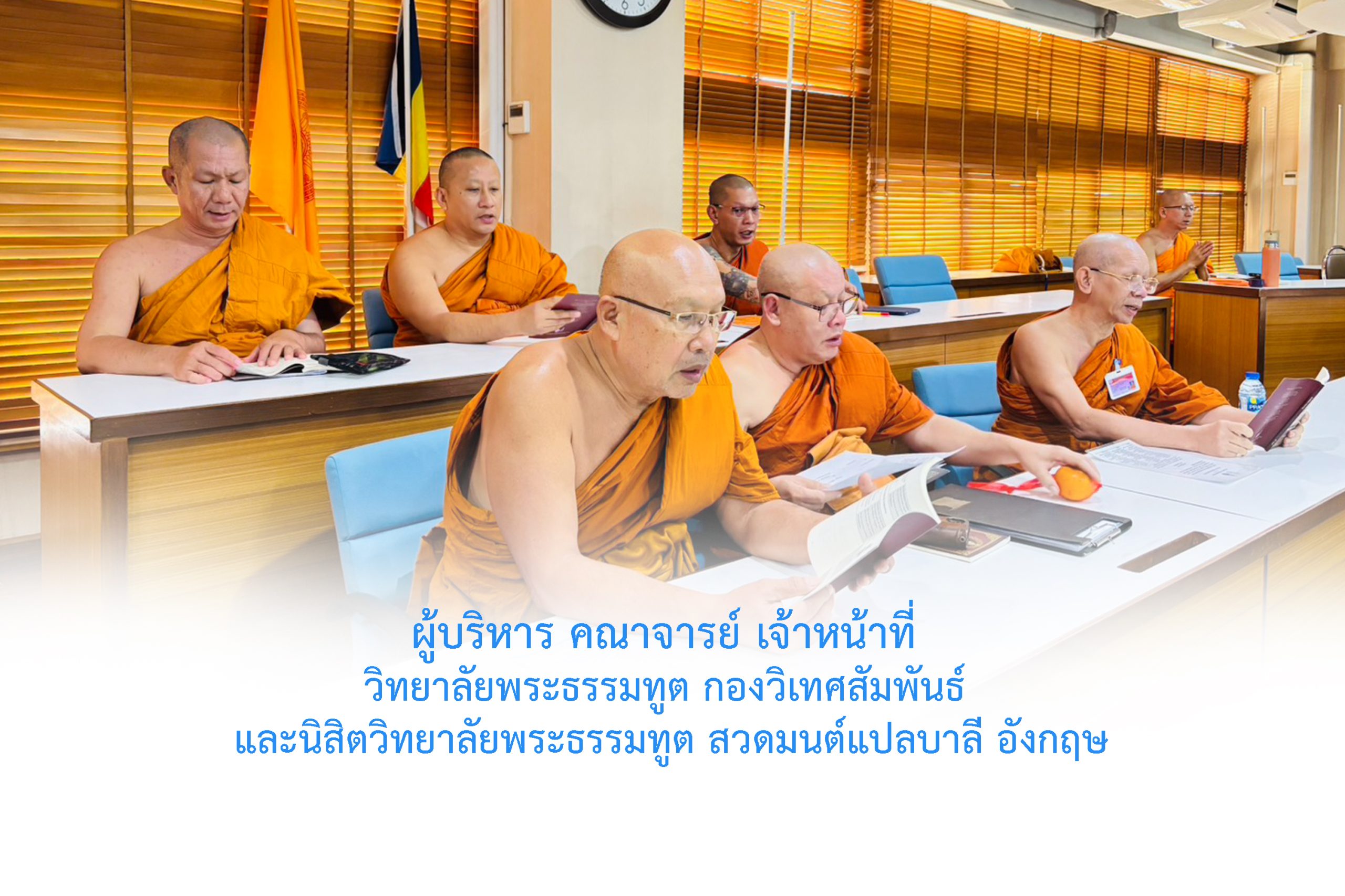 วันอังคารที่ ๙ ธันวาคม พ.ศ. ๒๕๖๘ เวลา ๐๙.๐๐ น. พระสิทธิวัชรบัณฑิต, ผศ.ดร. รองอธิการบดีฝ่ายกิจการต่างประเทศ มอบหมายให้พระครูสังฆกิจวิริยะ, ดร. อาจารย์ประจำวิทยาลัยพระธรรมทูต เลขานุการหลักสูตรพุทธศาสตรมหาบัณฑิต สาขาวิชาพระธรรมทูต ผู้บริหาร คณาจารย์ เจ้าหน้าที่ วิทยาลัยพระธรรมทูต กองวิเทศสัมพันธ์ นำลูกศิษย์หลักสูตรประกาศนียบัตรพระธรรมทูต สวดมนต์แปลบาลี อังกฤษ ณ ห้องเรียนสันติศึกษา อาคารสมเด็จพระพุฒาจารย์ (เกี่ยว อุปเสณมหาเถร) อาคารเรียนรวม มจร จังหวัดพระนครศรีอยุธยา ฯ