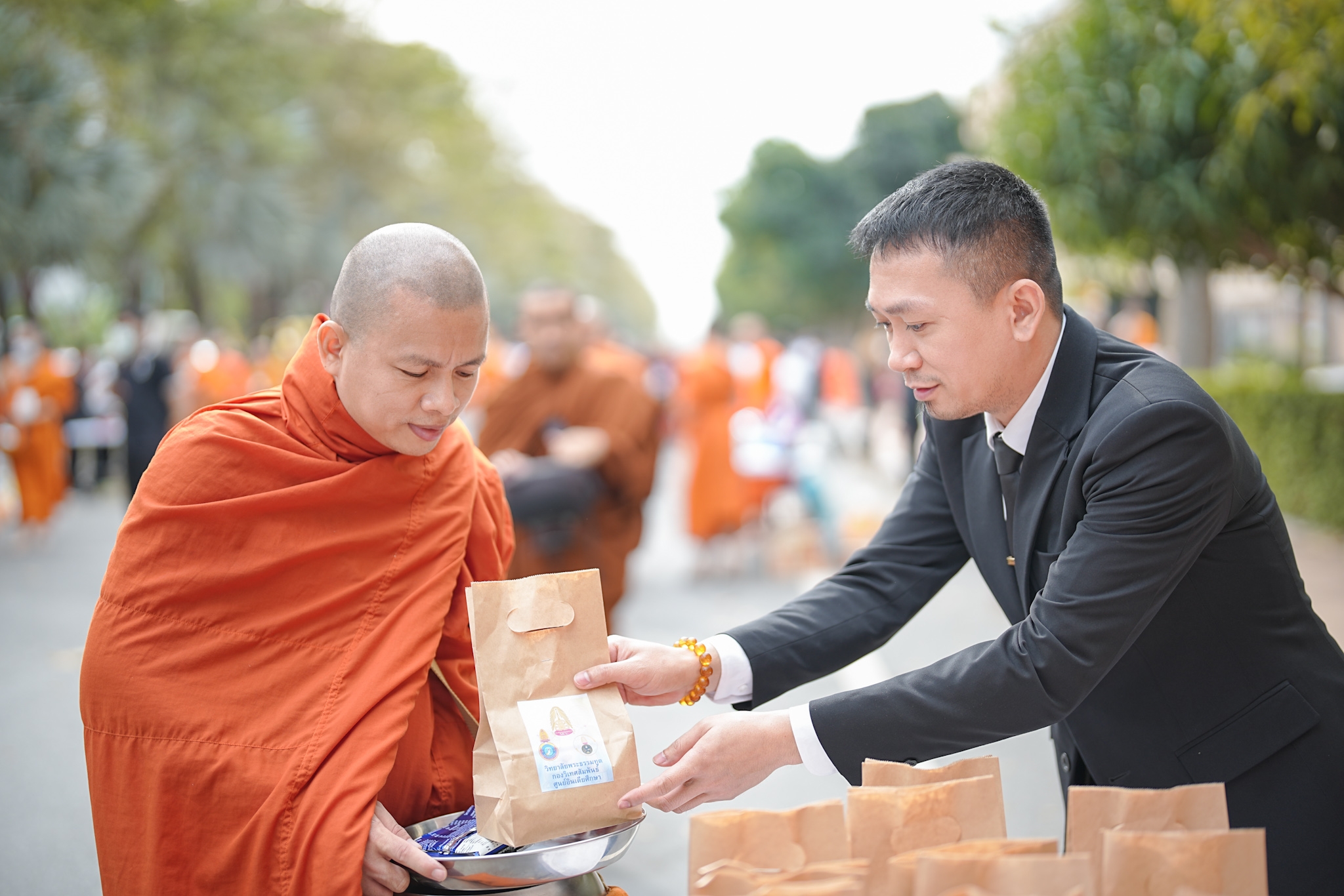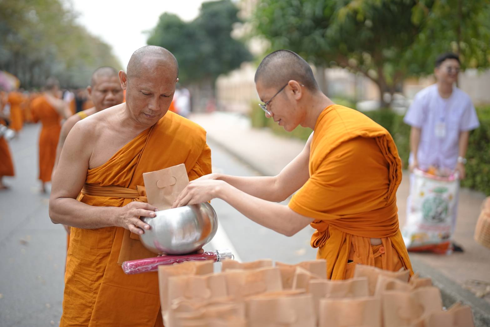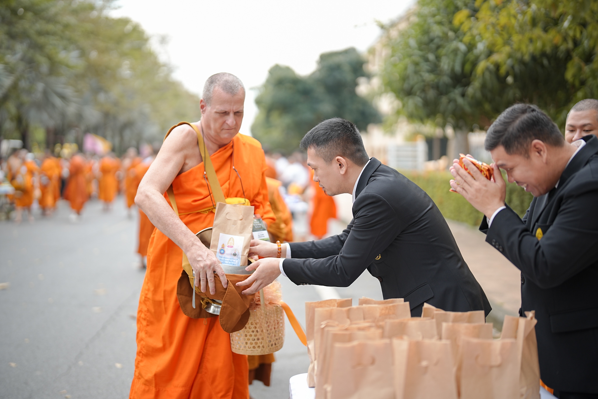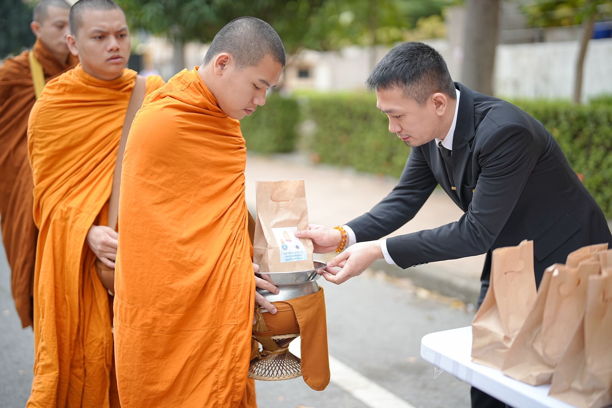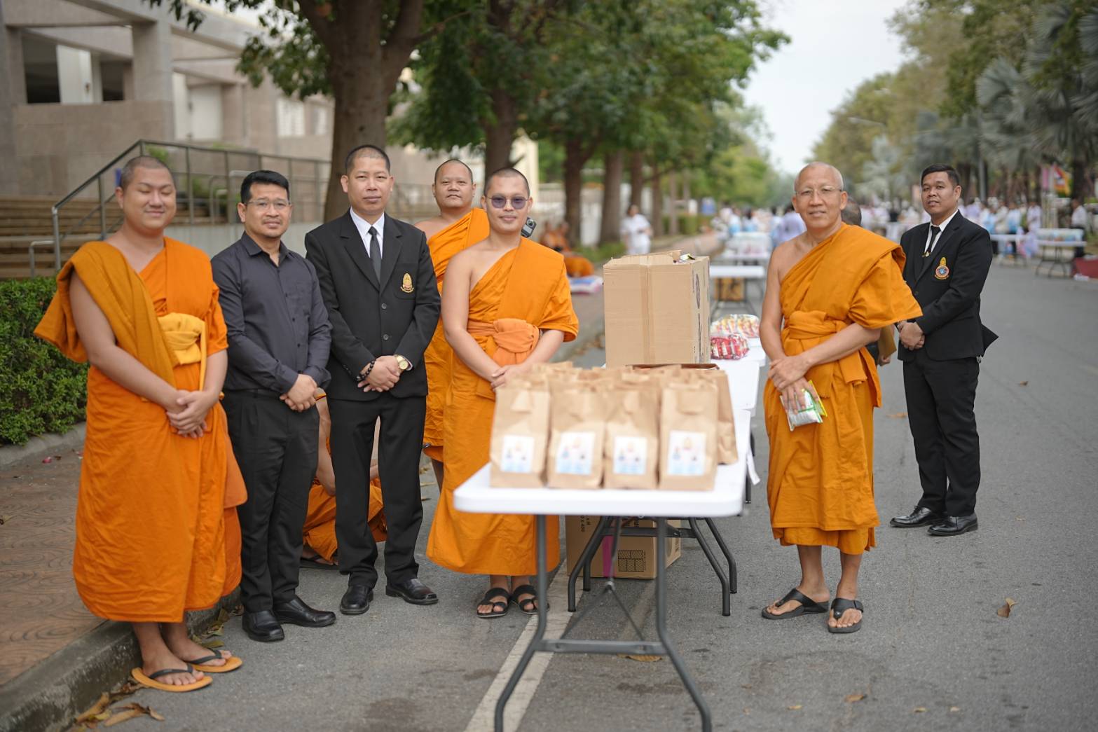 วันศุกร์ที่ ๑๒ ธันวาคม พ.ศ. ๒๕๖๘ เวลา ๐๘.๓๐ น. พระสิทธิวัชบัณฑิต, ผศ.ดร. รองอธิการบดีฝ่ายกิจการต่างประเทศ มอบหมายให้ ผู้ช่วยศาสตราจารย์ ดร.บุญมี พรรษา ผู้ช่วยอธิการบดีฝ่ายกิจการต่างประเทศ ผู้บริหาร คณาจารย์ เจ้าหน้าที่ วิทยาลัยพระธรรมทูต กองวิเทศสัมพันธ์ ศูนย์อินเดียศึกษา และศูนย์อาเซียนศึกษา ร่วมพิธีบำเพ็ญกุศลทำบุญตักบาตรข้าวสารอาหารแห้ง แด่ พระนิสิตปฏิบัติวิปัสสนากรรมฐาน จำนวน ๑,๔๐๐ รูป ถวายพระราชกุศล แด่ สมเด็จพระนางเจ้าสิริกิติ์ พระบรมราชินีนาถ พระบรมราชชนนีพันปีหลวง ณ มหาวิทยาลัยมหาจุฬาลงกรณราชวิทยาลัย อำเภอวังน้อย จังหวัดพระนครศรีอยุธยา
