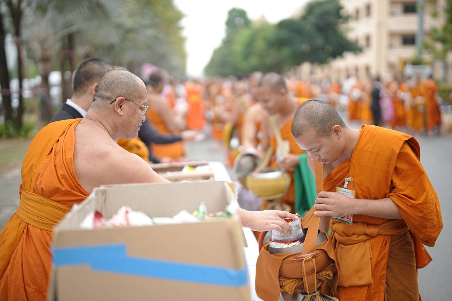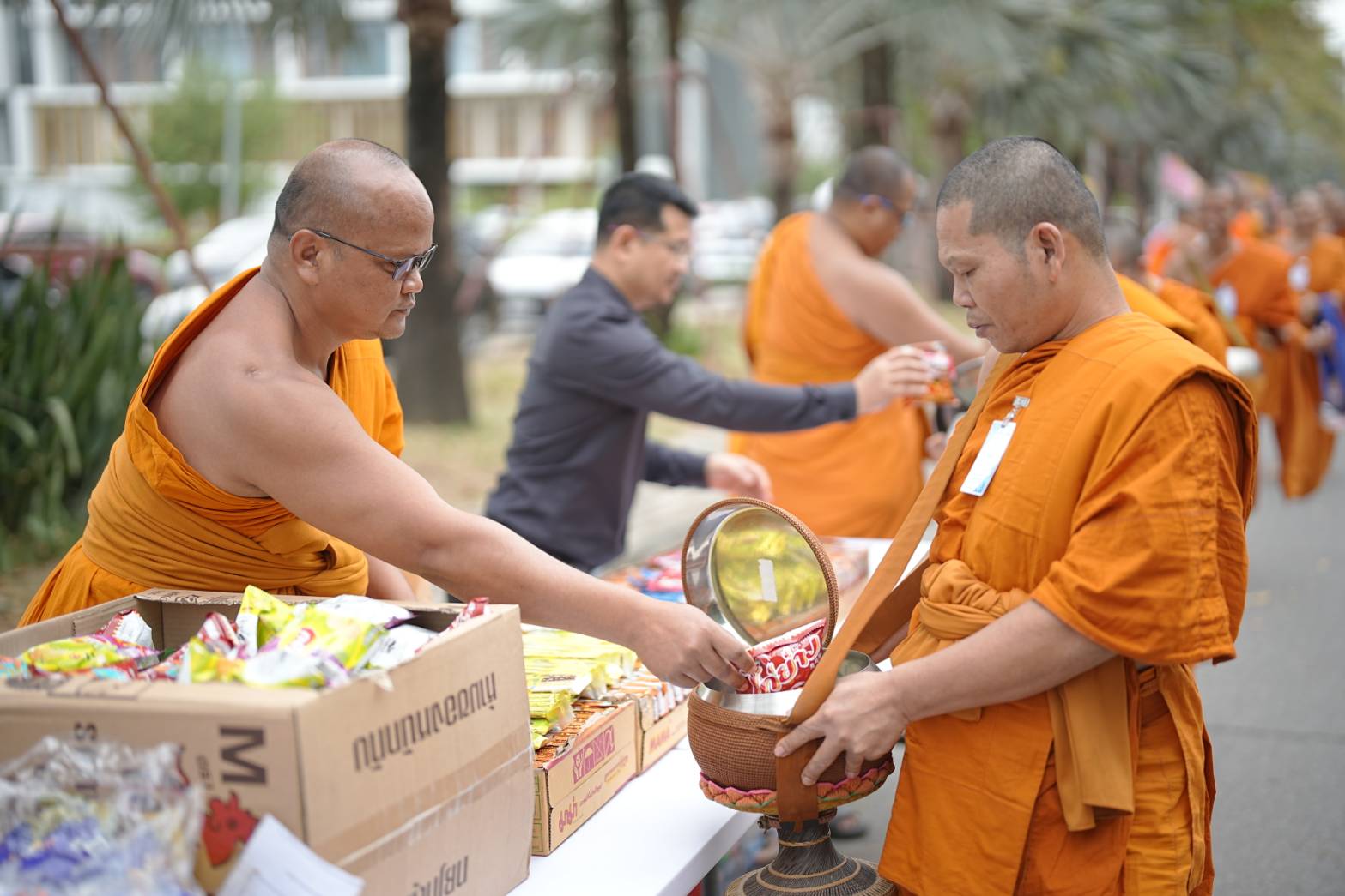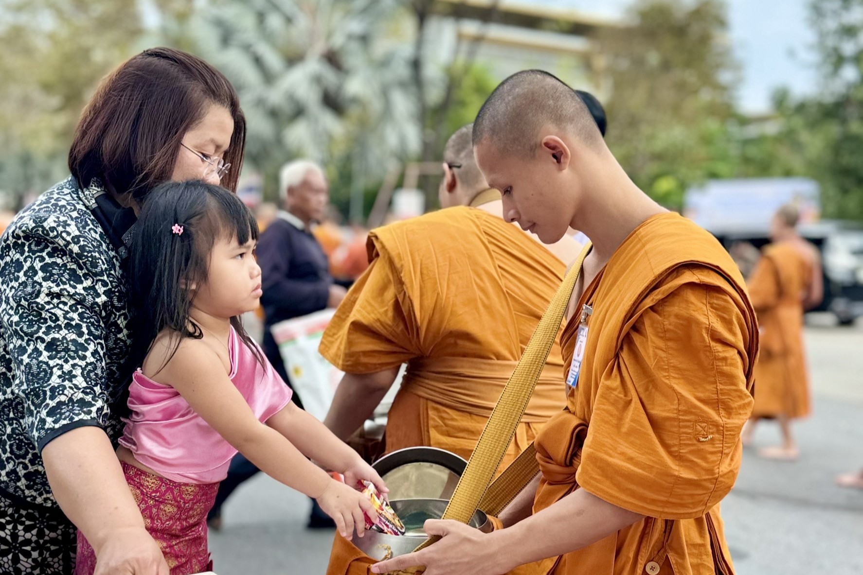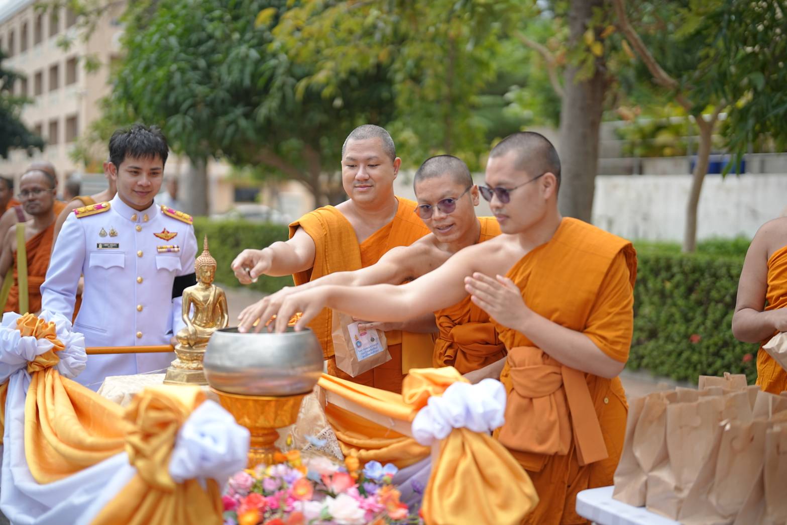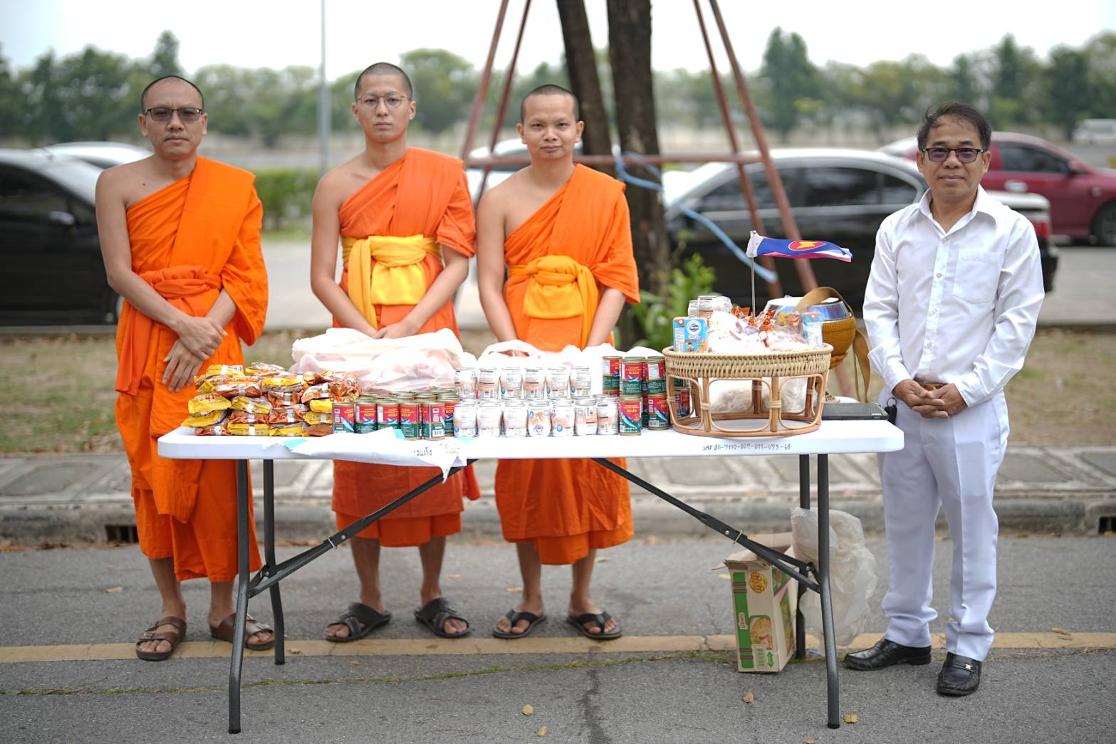 วันศุกร์ที่ ๑๒ ธันวาคม พ.ศ. ๒๕๖๘ เวลา ๐๘.๓๐ น. พระสิทธิวัชบัณฑิต, ผศ.ดร. รองอธิการบดีฝ่ายกิจการต่างประเทศ มอบหมายให้ ผู้ช่วยศาสตราจารย์ ดร.บุญมี พรรษา ผู้ช่วยอธิการบดีฝ่ายกิจการต่างประเทศ ผู้บริหาร คณาจารย์ เจ้าหน้าที่ วิทยาลัยพระธรรมทูต กองวิเทศสัมพันธ์ ศูนย์อินเดียศึกษา และศูนย์อาเซียนศึกษา ร่วมพิธีบำเพ็ญกุศลทำบุญตักบาตรข้าวสารอาหารแห้ง แด่ พระนิสิตปฏิบัติวิปัสสนากรรมฐาน จำนวน ๑,๔๐๐ รูป ถวายพระราชกุศล แด่ สมเด็จพระนางเจ้าสิริกิติ์ พระบรมราชินีนาถ พระบรมราชชนนีพันปีหลวง ณ มหาวิทยาลัยมหาจุฬาลงกรณราชวิทยาลัย อำเภอวังน้อย จังหวัดพระนครศรีอยุธยา
