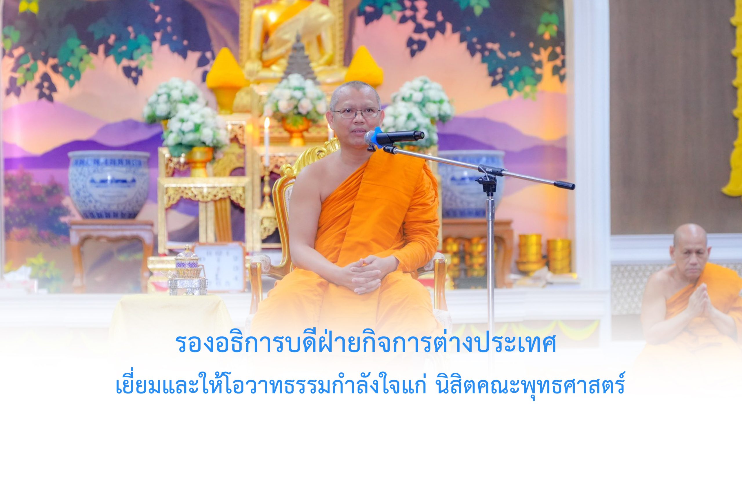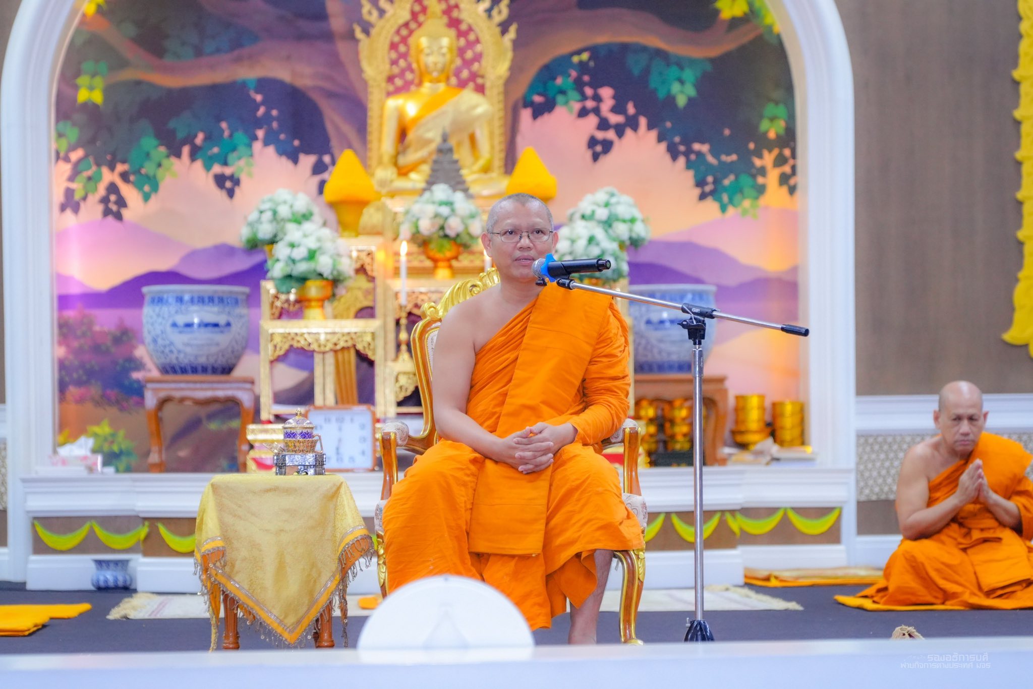 จากนั้น รองอธิการบดีฝ่ายกิจการต่างประเทศ ได้แสดงธรรมกถาภาคภาษาไทยและภาษาอังกฤษ เรื่อง “กับดักของการปฏิบัติธรรม” แก่นิสิตที่ปฏิบัติวิปัสสนากรรมฐาน โดยสรุปความว่า “พึงสังวรเรื่องความสะดวกสบาย เรียกว่า “สัปปายะ” แม้ว่า ความสะดวกสบาย เป็นสิ่งสำคัญที่เกื้อกูลต่อการปฏิบัติธรรม แต่ในทางตรงกันข้ามอาจจะเป็นกับดักให้เกิดความประมาท ขาดความกระตือรือร้นและนำไปสู่ความเกียจคร้าน “โกสัชชะ” ในที่สุด เช่นอาหารอุดมสมบูรณ์ อยู่ในห้องปรับอากาศ การสัญจรไปมาสะดวกสบาย ก่อให้เกิดความประมาท เป็นเหตุให้เกิดประมาทวิหารี ดำเนินชีวิตหรืออยู่ด้วยความประมาท ไม่กระตือรือร้นในการพฤติปฏิบัติธรรม ไม่ขวนขวายที่จะบำเพ็ญบารมีธรรมให้เจริญยิ่งขึ้น เพราะฉะนั้นจึงพึงสังวรเรื่องกับดักความประมาท พึงเจริญสติ ตระหนักรู้ในเรื่องไม่ประมาท ป้องกันเหตุปัจจัยแห่งความเสื่อม และสร้างเหตุปัจจัยแห่งความเจริญรุ่งเรือง ด้วยการดำเนินชีวิตด้วยความไม่ประมาท”