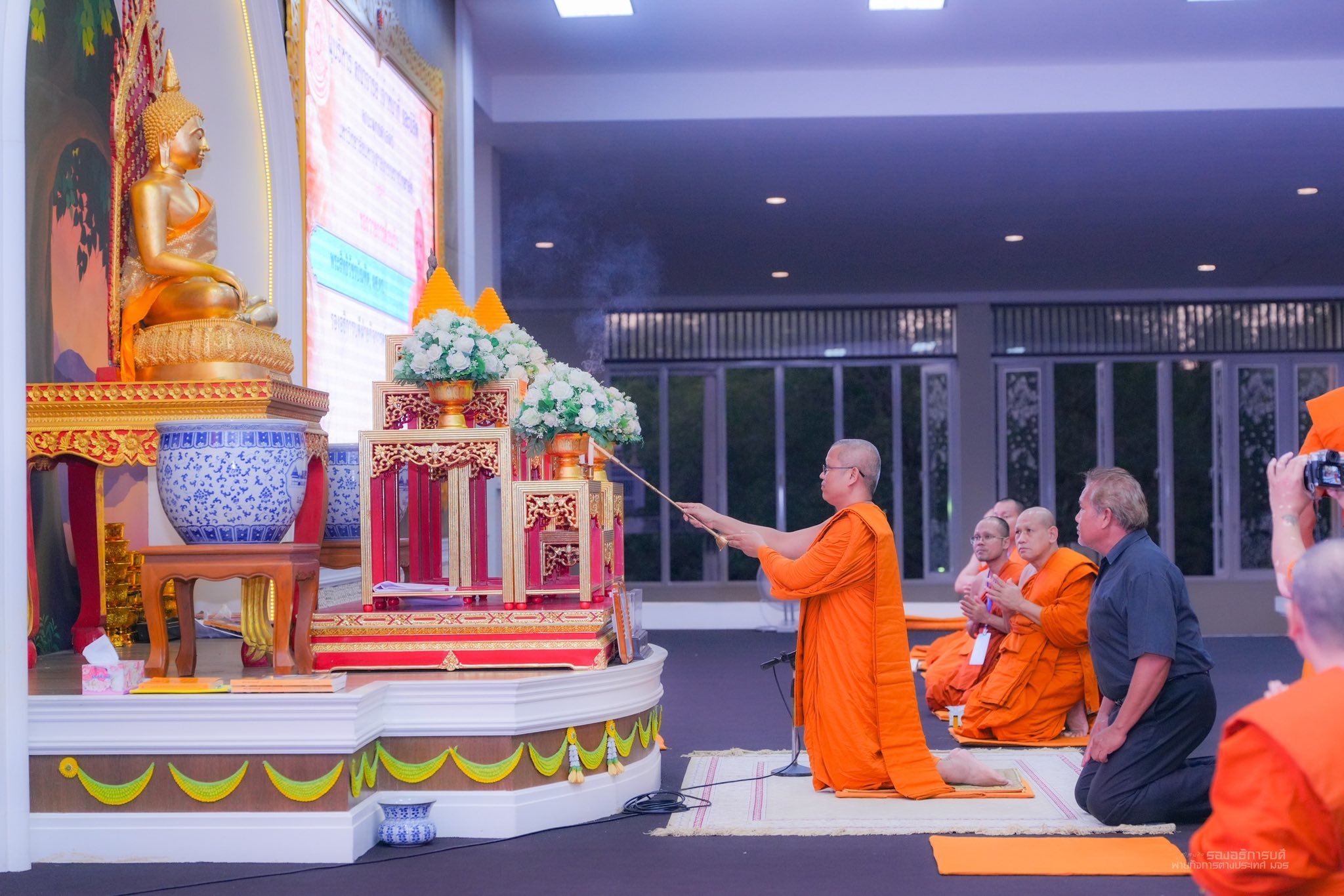 โอกาสนี้ รองอธิการบดีฝ่ายกิจการต่างประเทศ ได้บริจาคปัจจัยร่วมเป็นเจ้าภาพถวายภัตตาหาร น้อมถวายพระราชกุศล สมเด็จพระนางเจ้าสิริกิติ์ พระบรมราชินีนาถ พระบรมราชชนนีพันปีหลวง ฯ