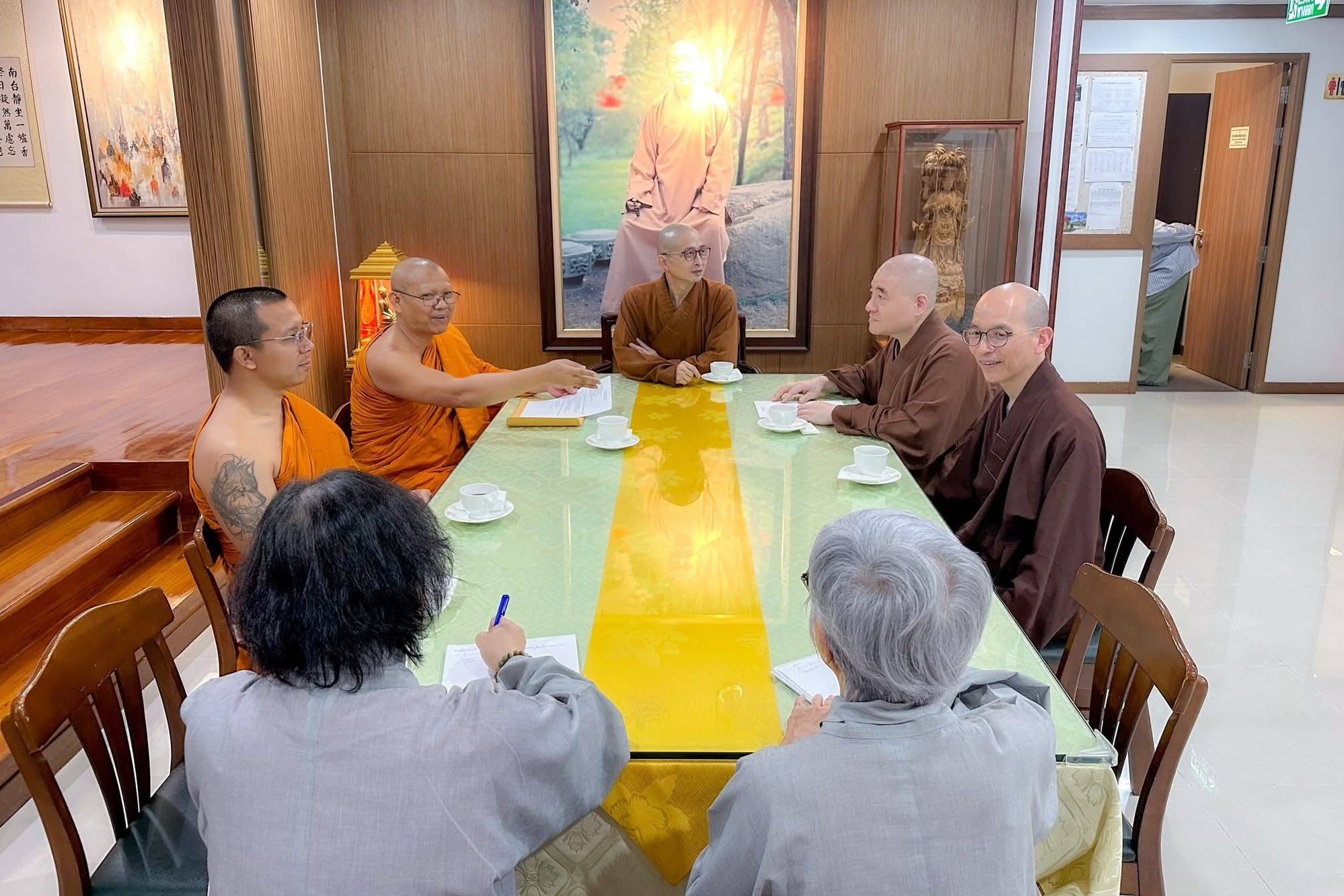 โอกาสนี้ รองอธิการบดีฝ่ายกิจการต่างประเทศ ได้ประชุมกับคณะสงฆ์วัดจงไถซานเรื่อง (๑) อธิการบดีและรองอธิการบดี มจร เดินทางไปเยือนวัดจงไถซาน นครไทจง สาธารณรัฐจีน อย่างเป็นทางการ ระหว่างวันที่ ๗-๑๐ เมษายน ๒๕๖๙ ตามคำอาราธนาของ พระธรรมาจารย์เจี้ยนอิ่ง เจ้าอาวาสวัดจงไถซาน (๒) การส่งบุคลากร มจร ไปศึกษาพัฒนาภาษาจีน ณ มหาวิทยาลัยแห่งชาติไต้หวัน เป็นเวลา ๔ เดือน โดยวัดจงไถซาน ถวายการอุปถัมภ์ทุนการศึกษา ระหว่างเดือนสิงหาคม -พฤศจิกายน ๒๕๖๙ (๓) การเดินทางไปเจริญสัมพันธไมตรีกับคณะสงฆ์ศรีลังกา นิกายสยามวงศ์ อย่างเป็นทางการ ของรองอธิการบดีฝ่ายกิจการต่างประเทศ มจร และ คณะสงฆ์วัดจงไถซาน ระหว่างวันที่ ๒-๔ กุมภาพันธ์ ๒๕๖๙ (๔) การเข้าเยี่ยมคารวะ มหาสังฆนายกะของนิกายสยามวงศ์ ฝ่ายมัลวัตตะ และ ฝ่ายอัสคิริ เพื่อเจริญสัมพันธไมตรี และ (๕) การเข้าเยี่ยมคารวะ อดีตนายกรัฐมนตรีศรีลังกา ของรองอธิการบดีฝ่ายกิจการต่างประเทศ มจร ณ นครโคลัมโบ