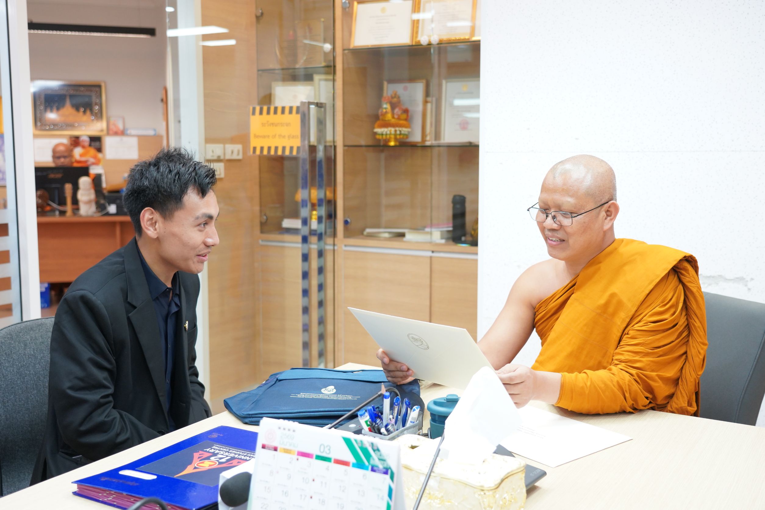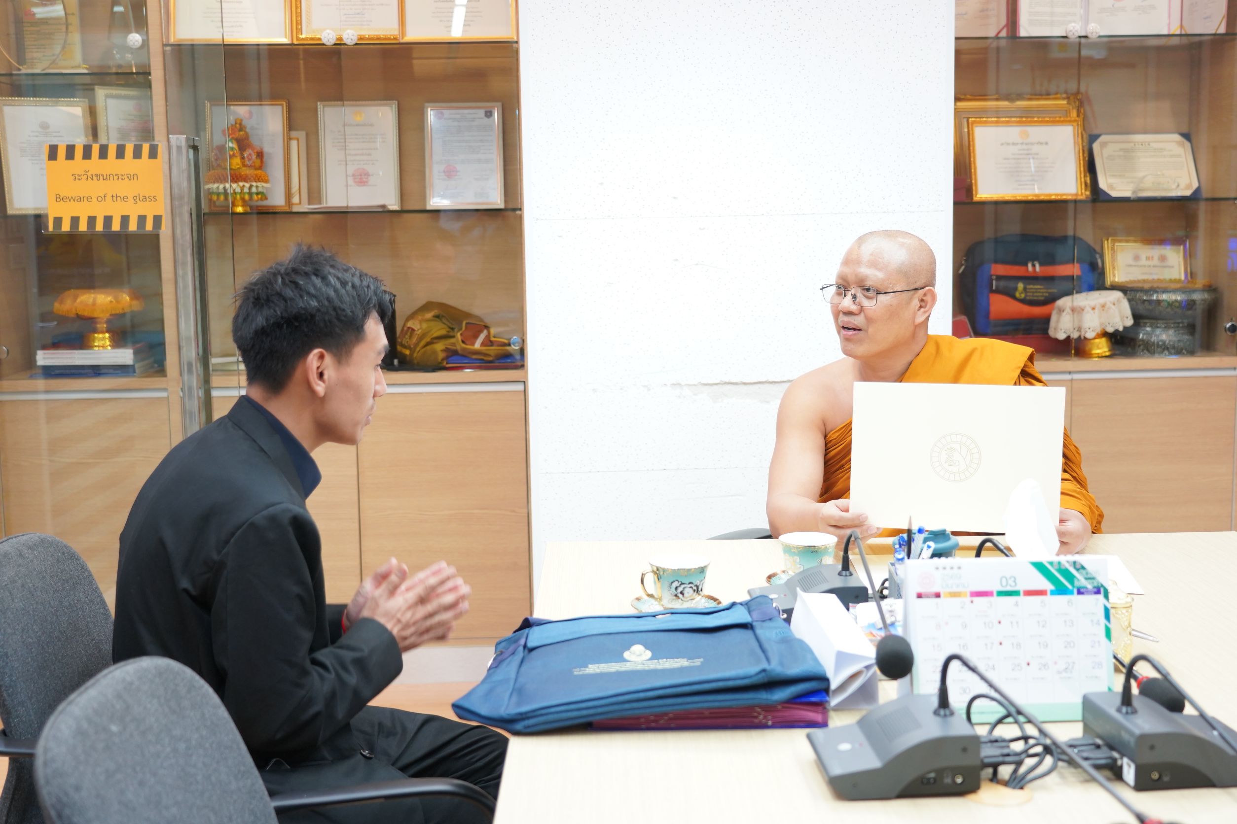 วันอังคารที่ ๑๗ กุมภาพันธ์ พ.ศ.๒๕๖๙ เวลา ๑๕.๓๐ น. พระสิทธิวัชรบัณฑิต ผู้ช่วยเจ้าอาวาสวัดราชสิทธารามราชวรวิหาร รองอธิการบดีฝ่ายกิจการต่างประเทศ มจร รับการถวายสักการะจาก Mr. Kinley Wangyel เลขานุการเอกอัครทูตราชภูฏาน ประจำประเทศไทย ณ ห้องรับรองวิทยาลัยพระธรรมทูตและกองวิเทศสัมพันธ์ มจร พระนครศรีอยุธยา