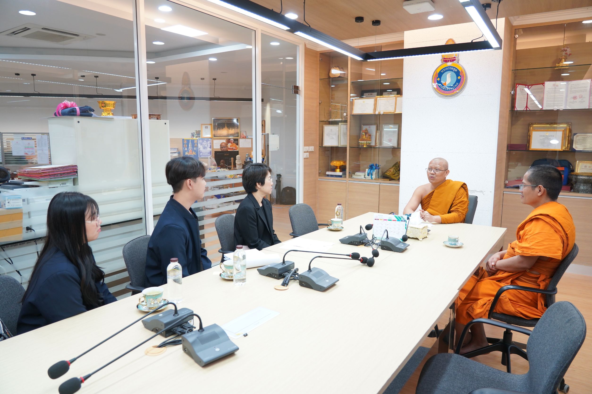 วันพุธที่ ๑๘ กุมภาพันธ์ พ.ศ.๒๕๖๙ เวลา ๑๐.๓๐ น. พระสิทธิวัชรบัณฑิต รองอธิการบดีฝ่ายกิจการต่างประเทศ และ พระครูสุตรัตนบัณฑิต ผู้อำนวยการวิทยาลัยพระธรรมทูต มจร ปฏิสันถารต้อนรับ นางสาวพิรุณพร จงไพศาล นักพัฒนาสังคมชำนาญการ หัวหน้าศูนย์ส่งเสริมและประสานการพัฒนาสังคมไทยในต่างประเทศ กองมาตรฐานการ พัฒนาสังคมและความมั่นคงของมนุษย์ กระทรวงการพัฒนาสังคมและความมั่นคงของมนุษย์ (Ministry of Social Development and Human Security – MSDHS) และข้าราชการกระทรวง พม. ณ ห้องประชุมวิทยาลัยพระธรรมทูตและกองวิเทศสัมพันธ์ มจร พระนครศรีอยุธยา