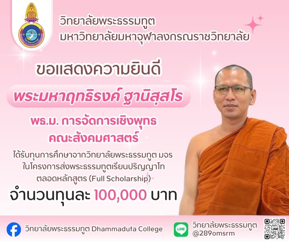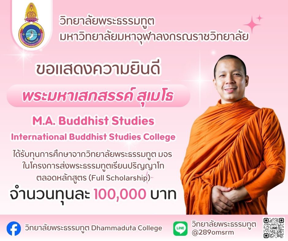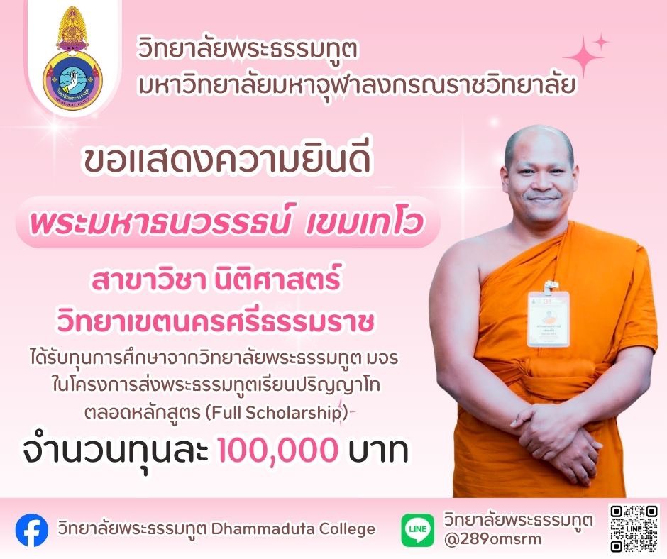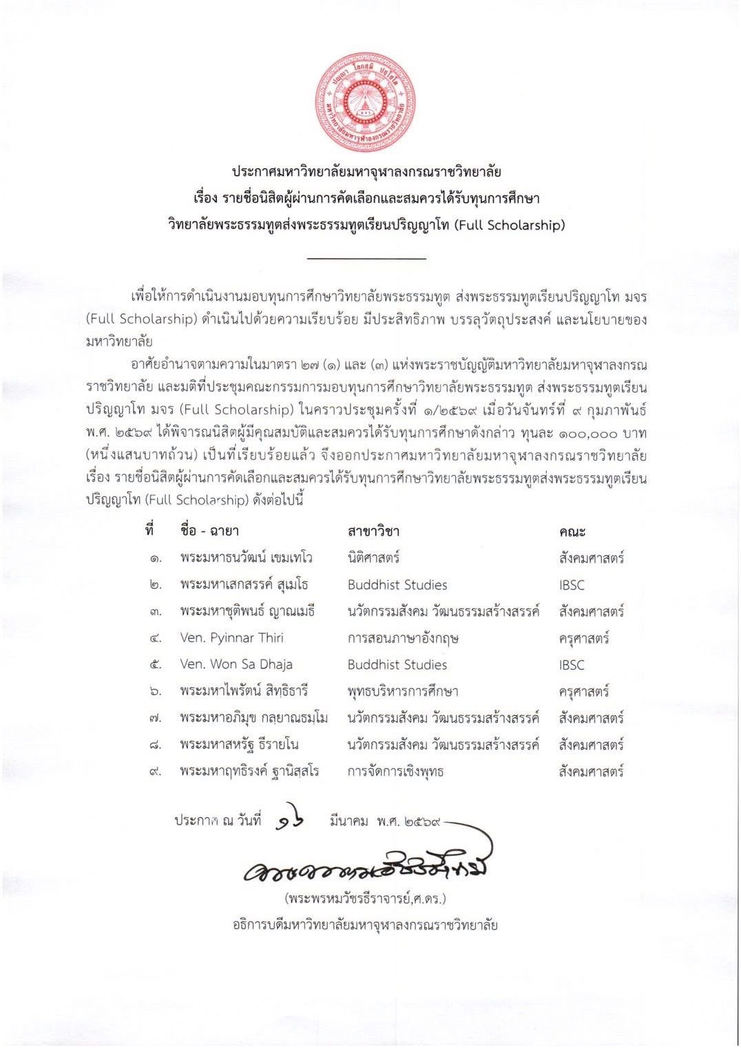 รายนามพระนิสิตปริญญาโท มจร ที่สามารถสอบชิงทุนวิทยาลัยพระธรรมทูตได้