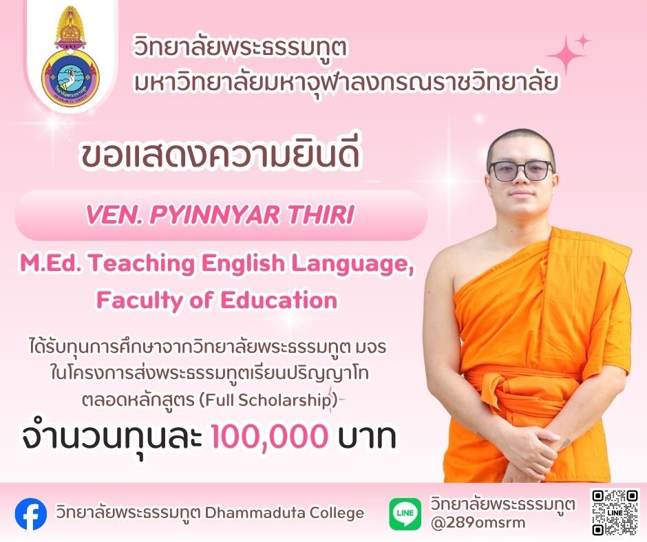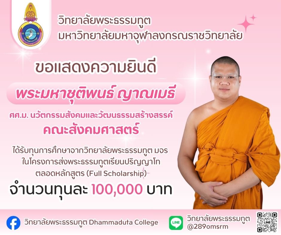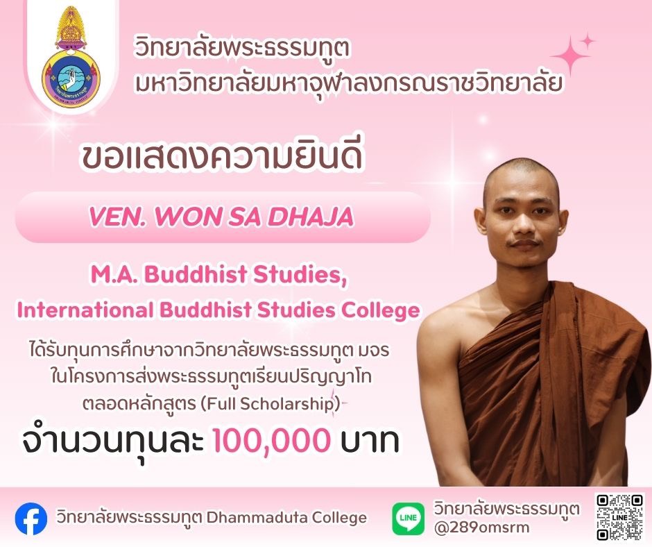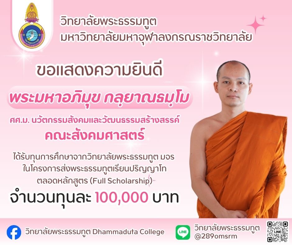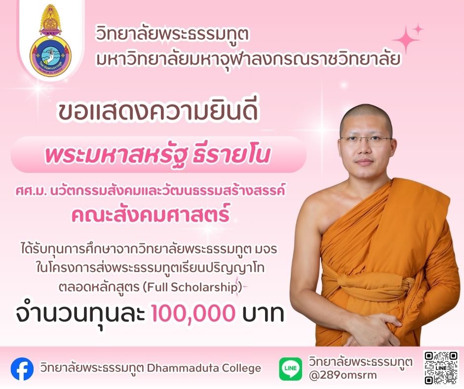 รายนามพระนิสิตปริญญาโท มจร ที่สามารถสอบชิงทุนวิทยาลัยพระธรรมทูตได้