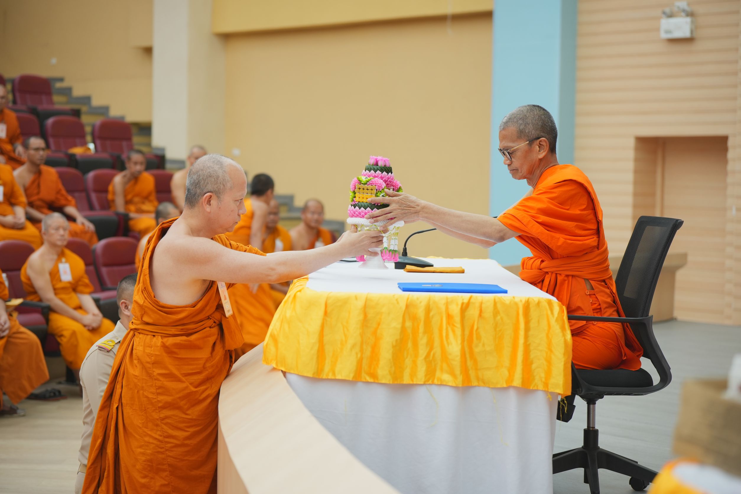 ในนามคณะผู้บริหาร คณาจารย์ เจ้าหน้าที่ วิทยาลัยพระธรรมทูต กองวิเทศสัมพันธ์ และศูนย์อินเดียศึกษา พร้อมด้วยพระสงฆ์ผู้เข้ารับการอบรมพระธรรมทูตสายต่างประเทศ รุ่นที่ ๓๒ ขอกราบขอบพระคุณ พระเดชพระคุณองค์อธิการบดี ที่เมตตา ด้วยความเคารพ มา ณ โอกาสนี้ ฯ