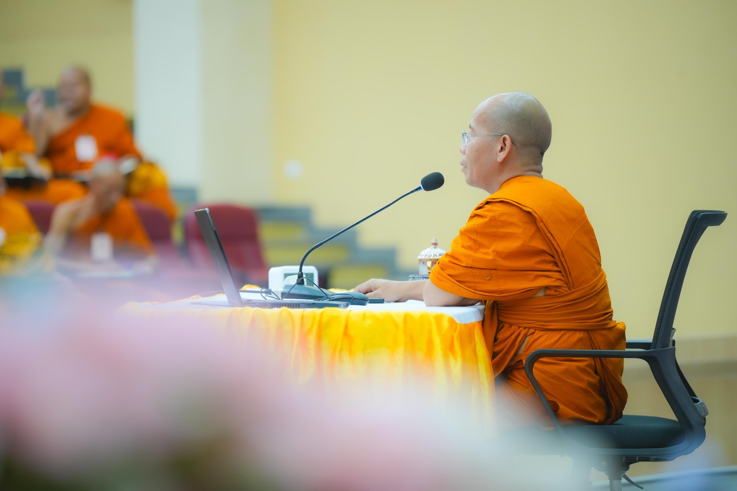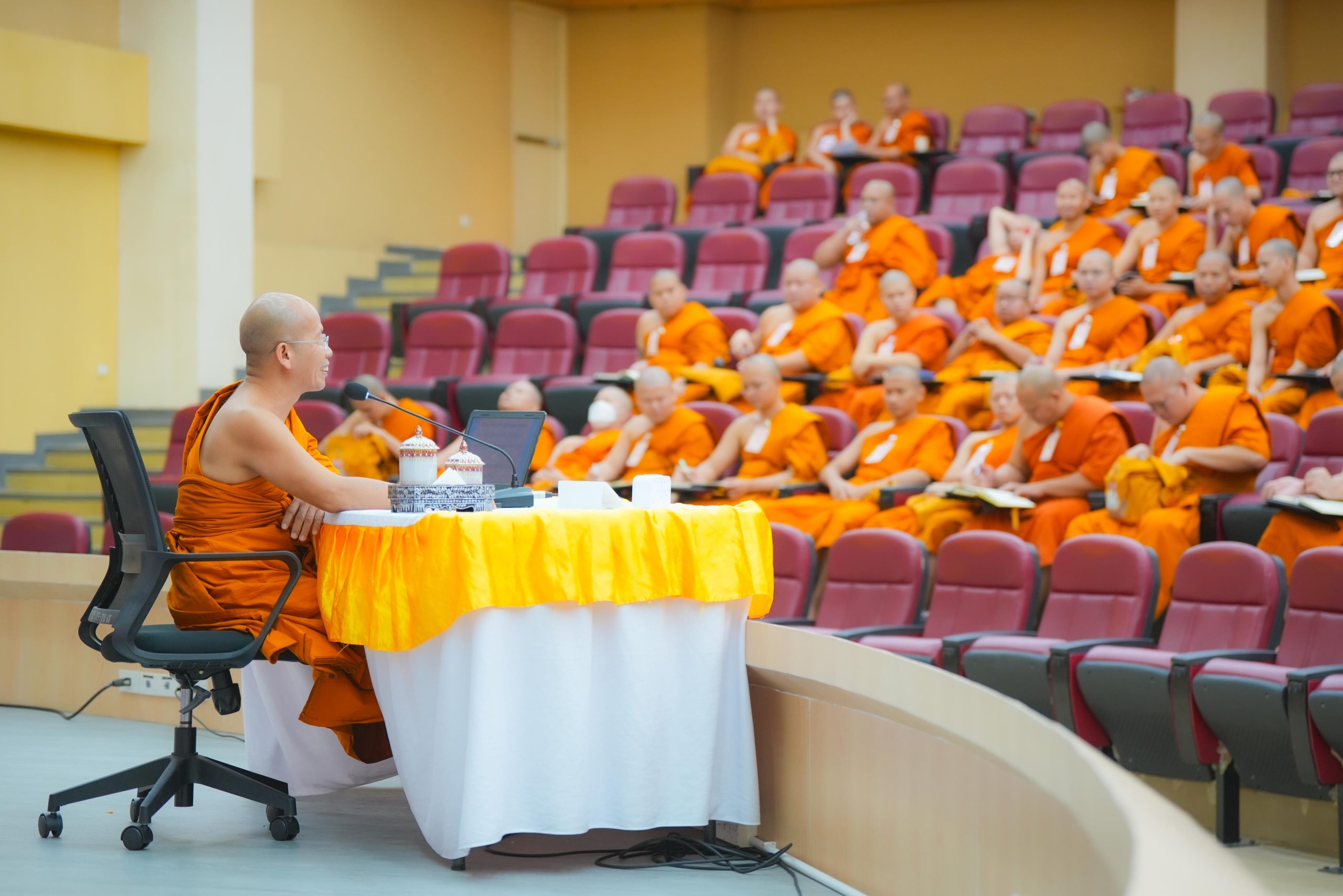 วันศุกร์ที่ ๒๐ มีนาคม พ.ศ. ๒๕๖๙ เวลา ๑๘.๓๐ น. พระครูใบฎีกาแสงเฮือง นรินฺโท, ดร. รองผู้อำนวยการวิทยาลัยพระธรรมทูต ฝ่ายบริหาร บรรยายถวายความรู้แก่พระสงฆ์ผู้เข้ารับการอบรมโครงการอบรมพระธรรมทูตสายต่างประเทศ รุ่นที่ ๓๒ ในหัวข้อ “บทบาทของพระสงฆ์เมียนมากับการเผยแผ่พระพุทธศาสนาในต่างประเทศ” ณ ห้องประชุมเธียเตอร์ โซนบี อาคารสมเด็จพระพุฒาจารย์ (เกี่ยว อุปเสณมหาเถร) มหาวิทยาลัยมหาจุฬาลงกรณราชวิทยาลัย จ.พระนครศรีอยุธยา